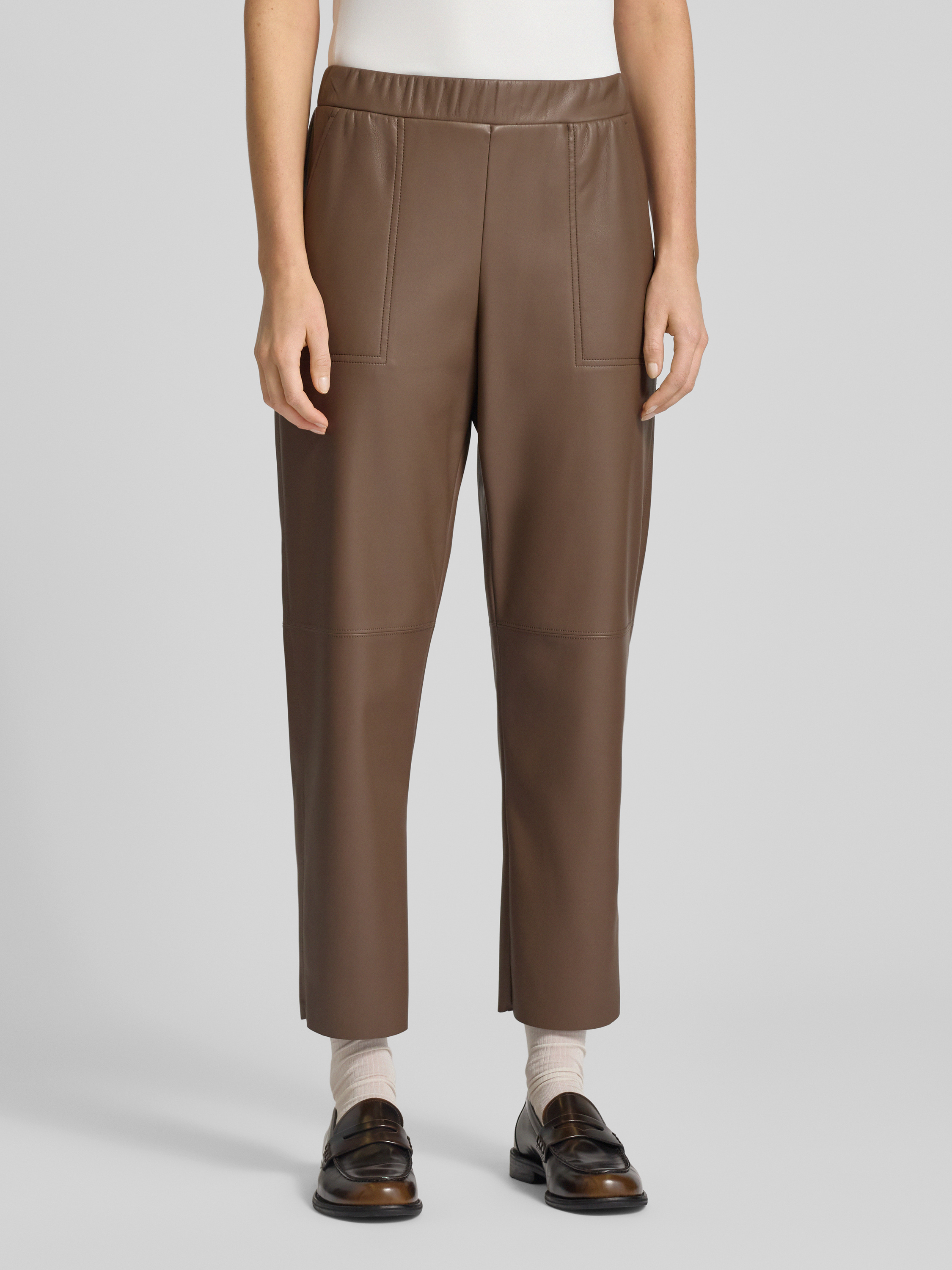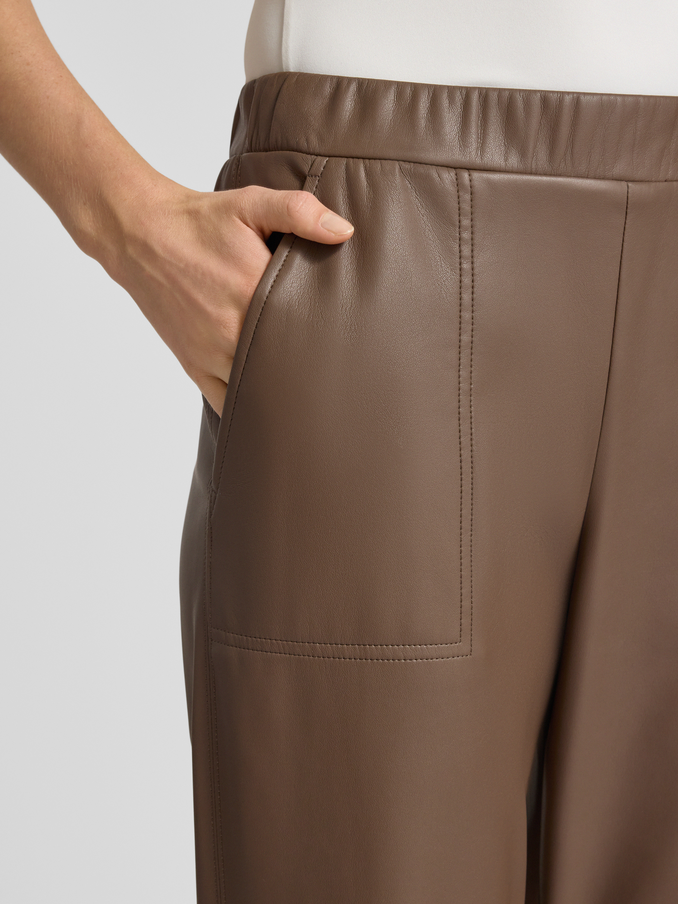 MAX&Co.Regular fit broek in leerlook met steekzakken opzij, model 'CREATIVO' in hazelnoot