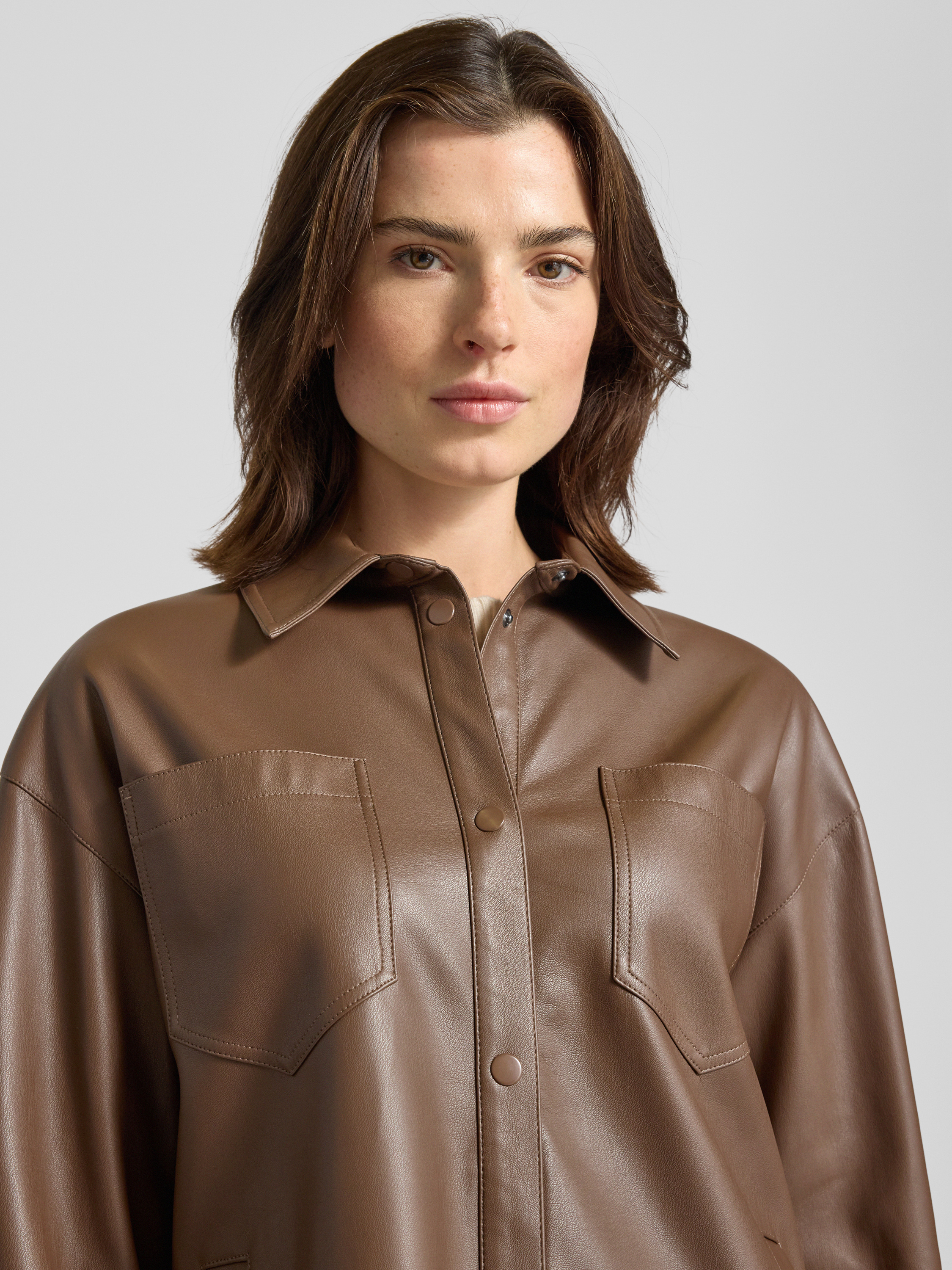 MAX&Co.Regular fit jack in leerlook met borstzakken, model 'FURIO' in hazelnoot