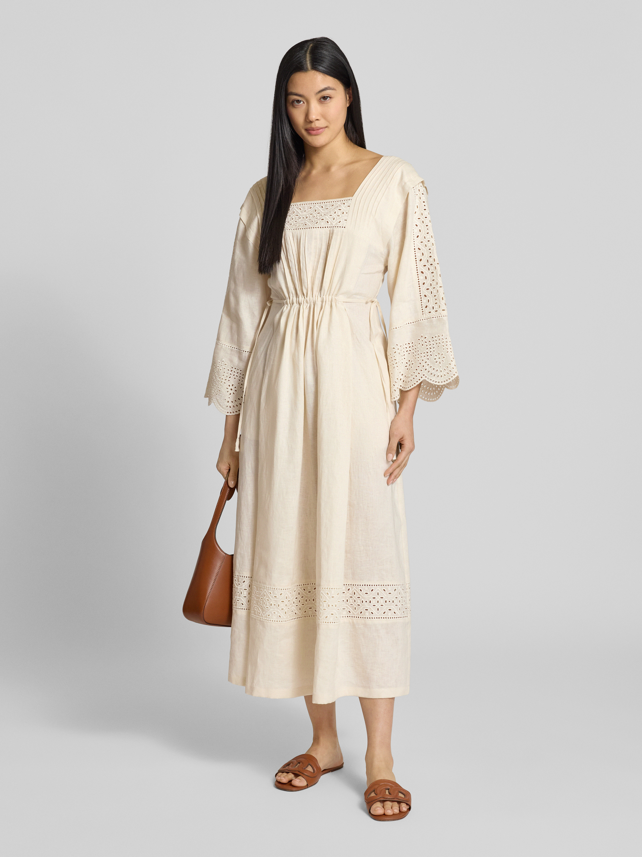 Weekend Max MaraLinnen jurk met broderie anglaise, model 'LUGLIO' in offwhite