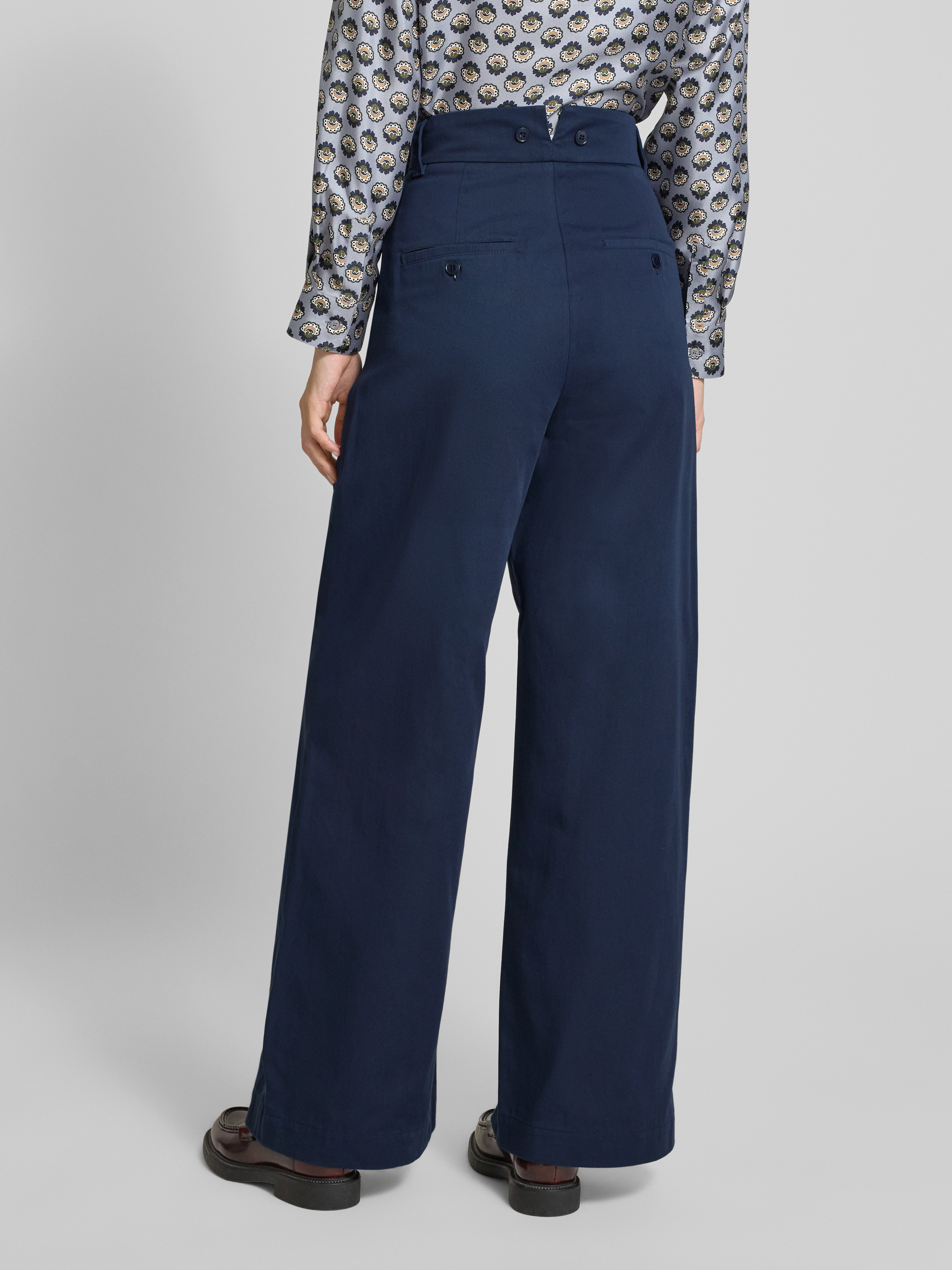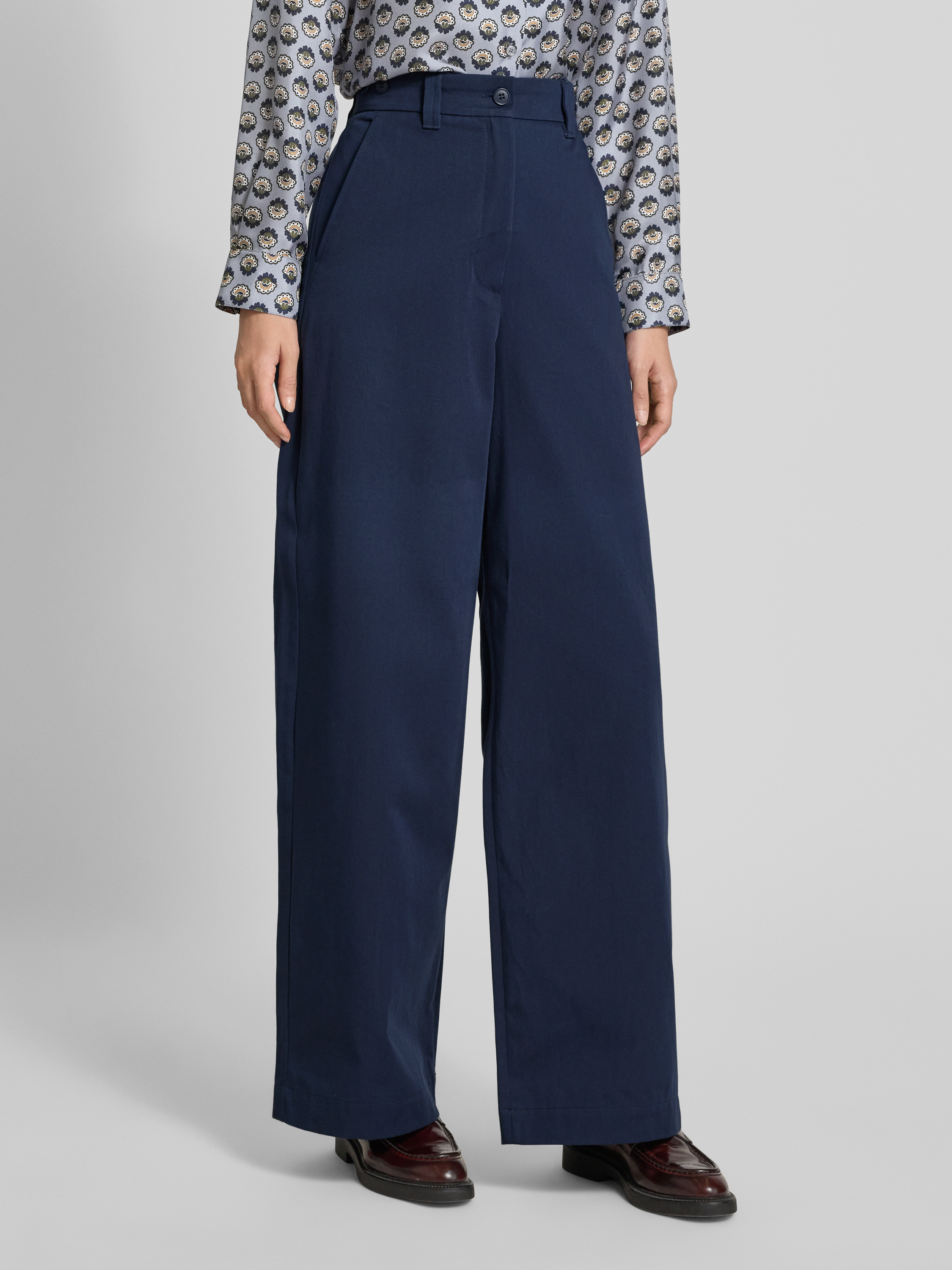 Weekend Max MaraRelaxed fit wijde broek van puur katoen, model 'ALFEO' in marineblauw