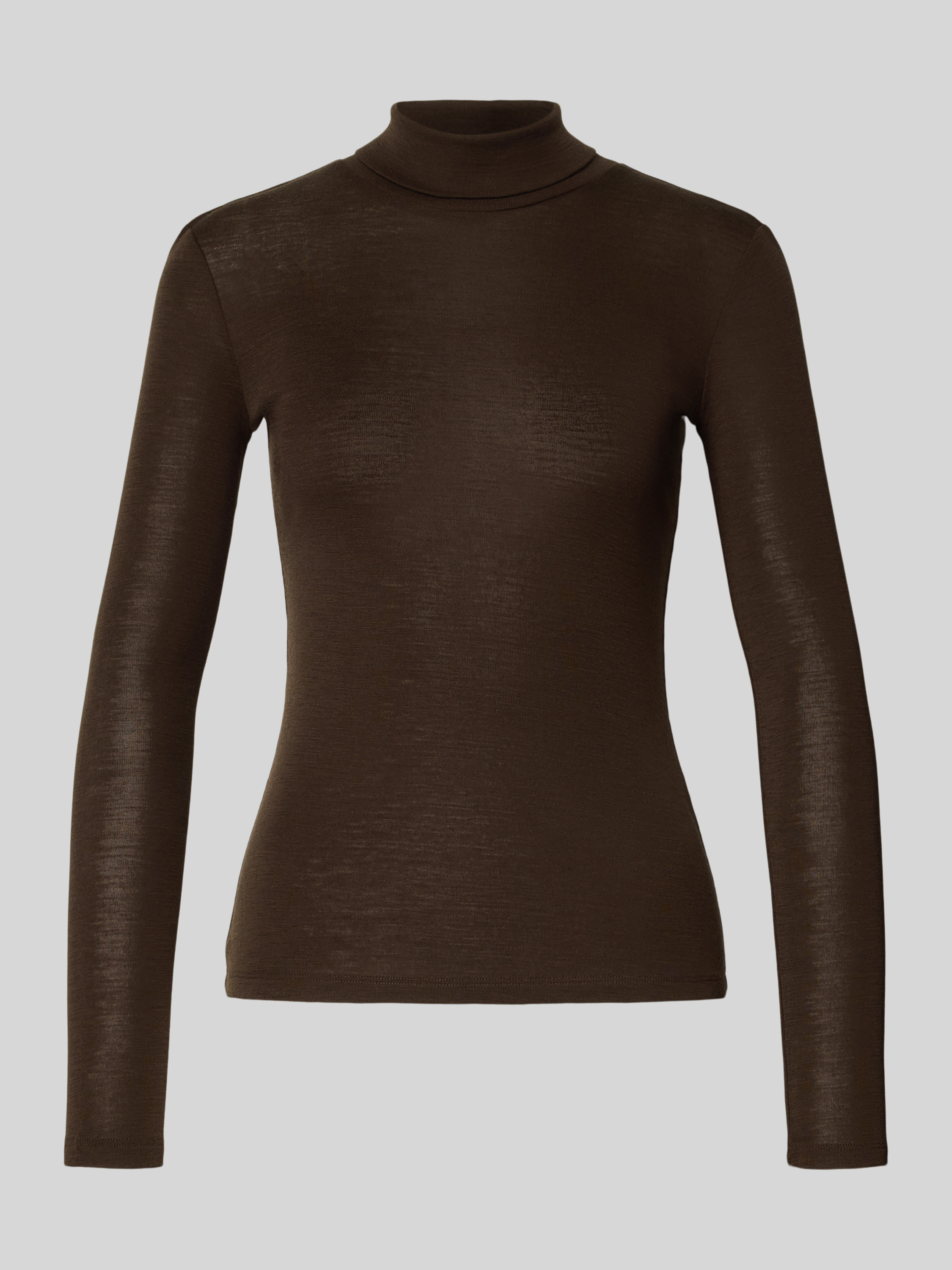 Weekend Max MaraSlim fit shirt met lange mouwen van een mix van wol en zijde, model 'TESEO' in donkerbruin
