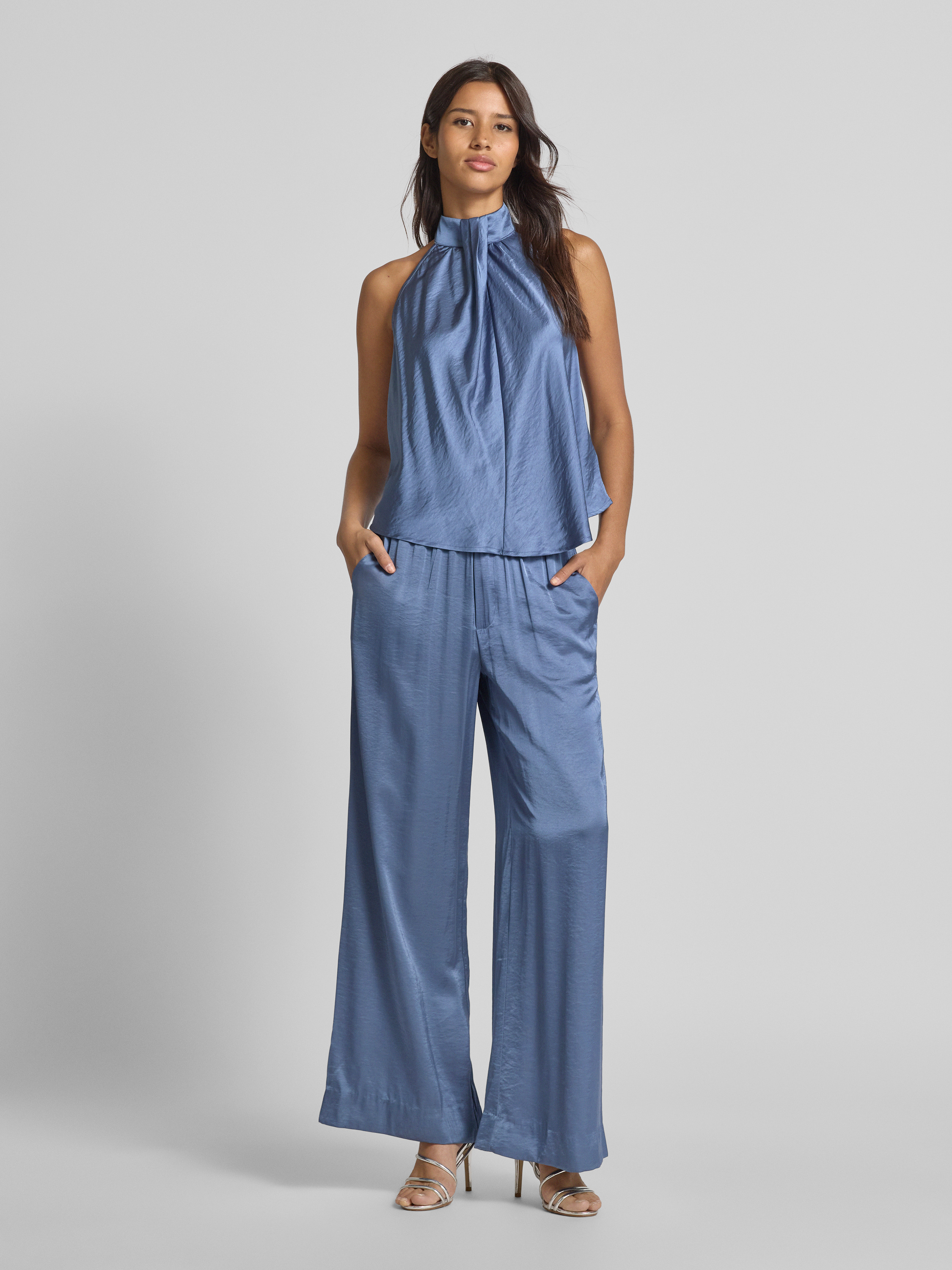 Blousetop met halter, model 'Zuzela' in rookblauw