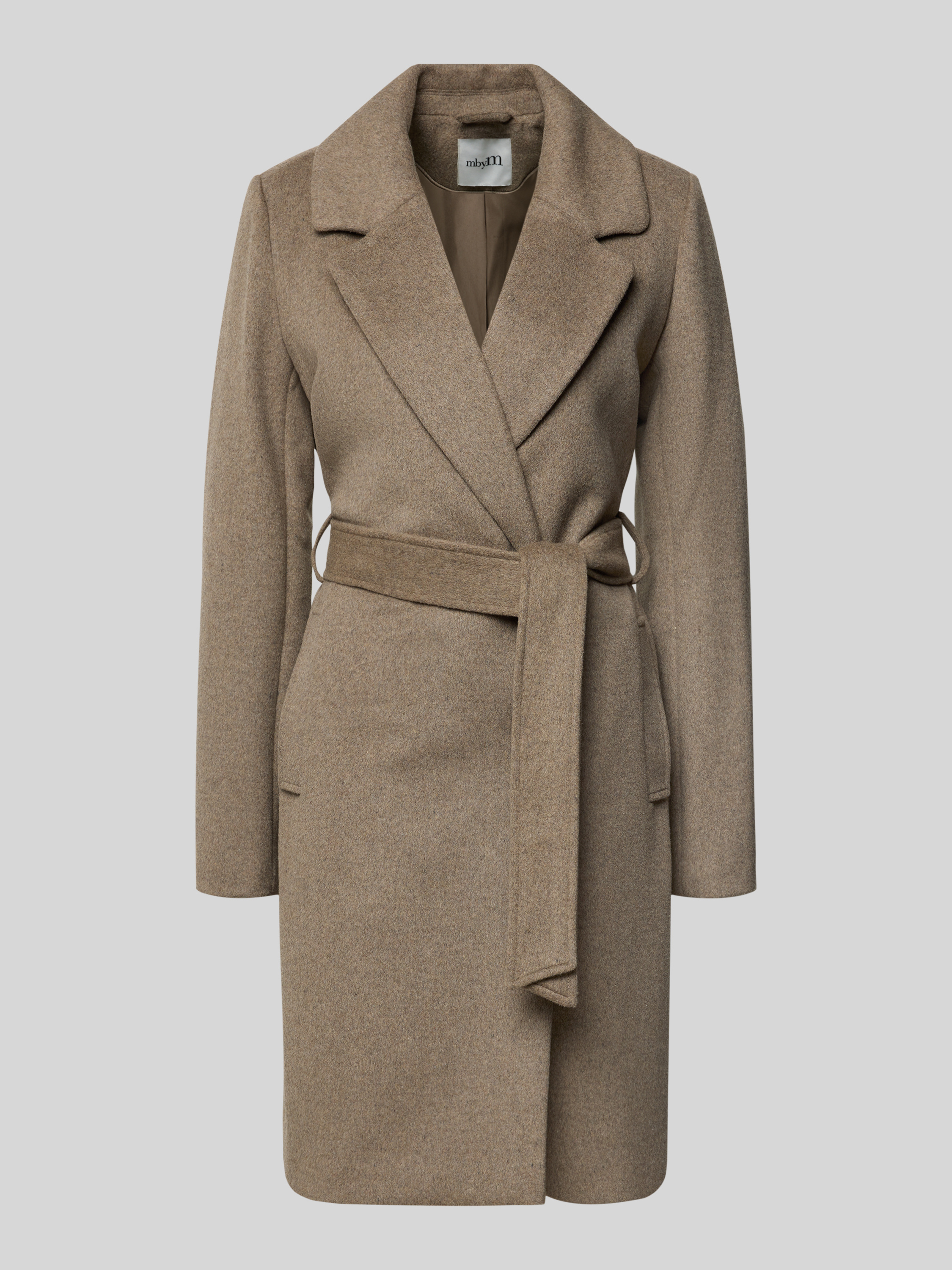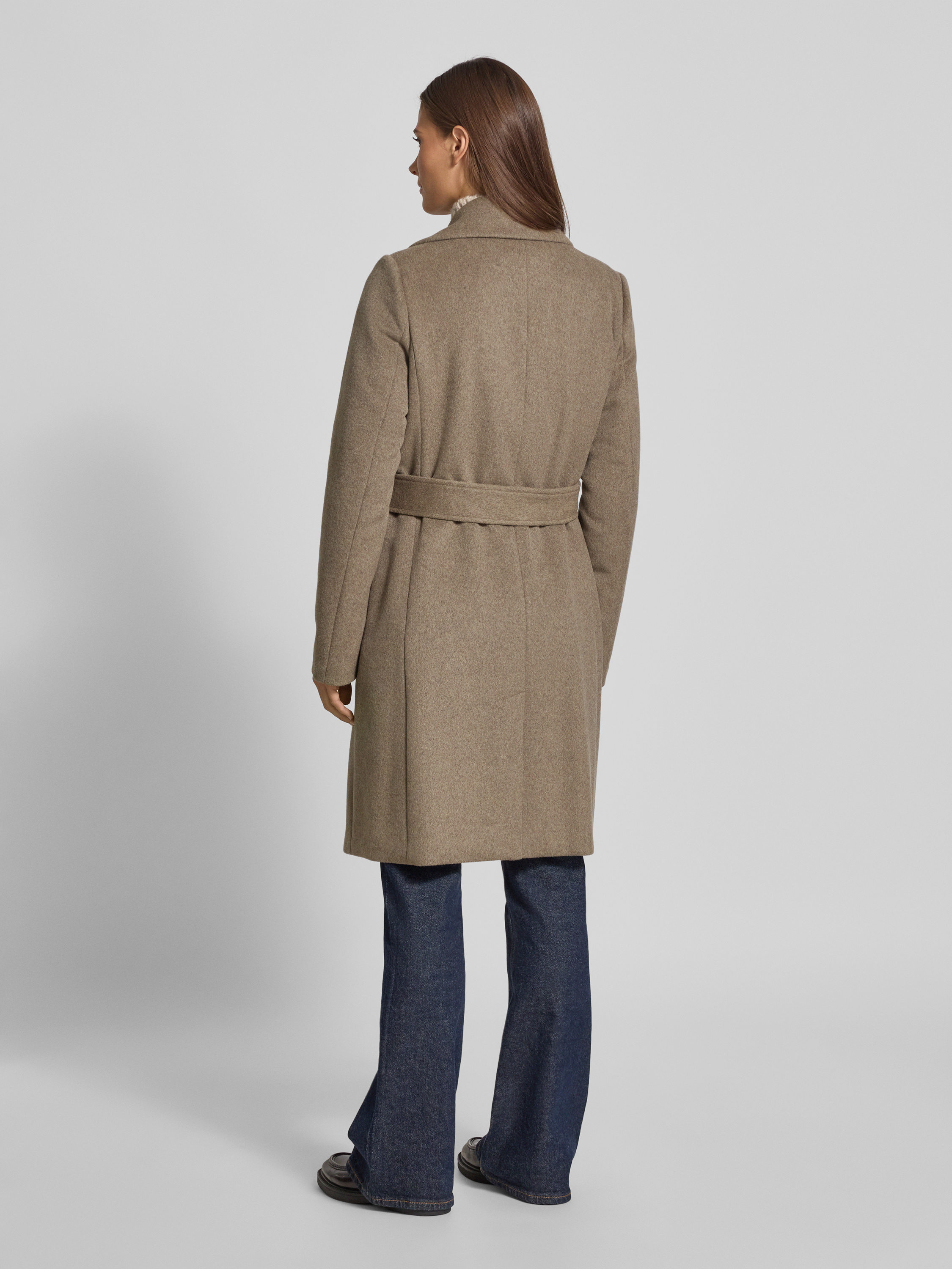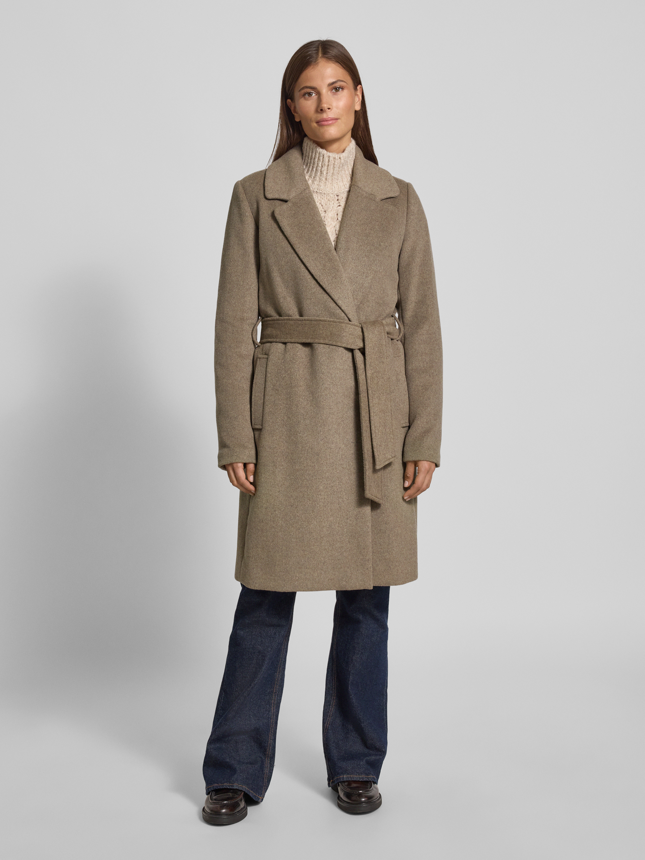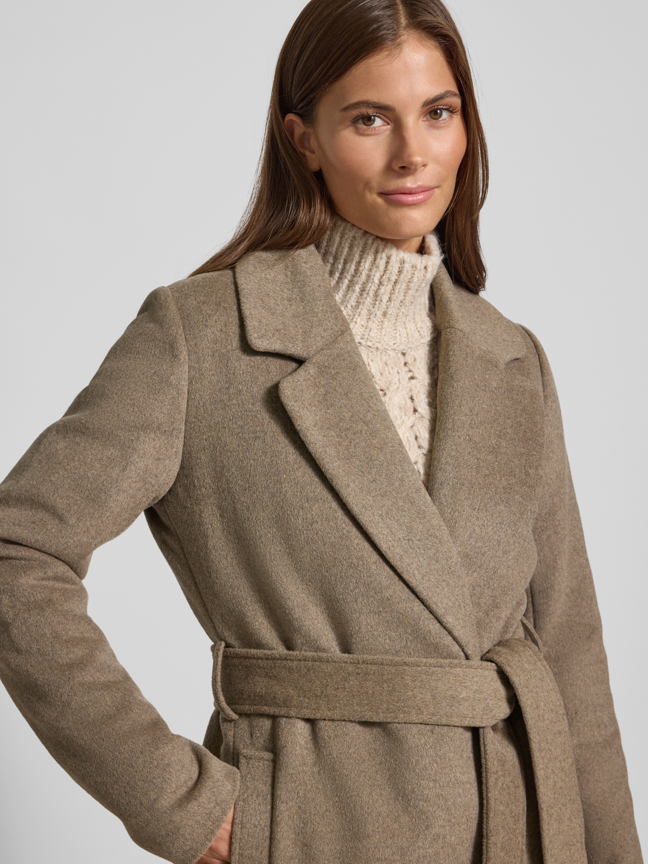 Lange jas met reverskraag, model 'Tanni' in lichtbruin gemêleerd