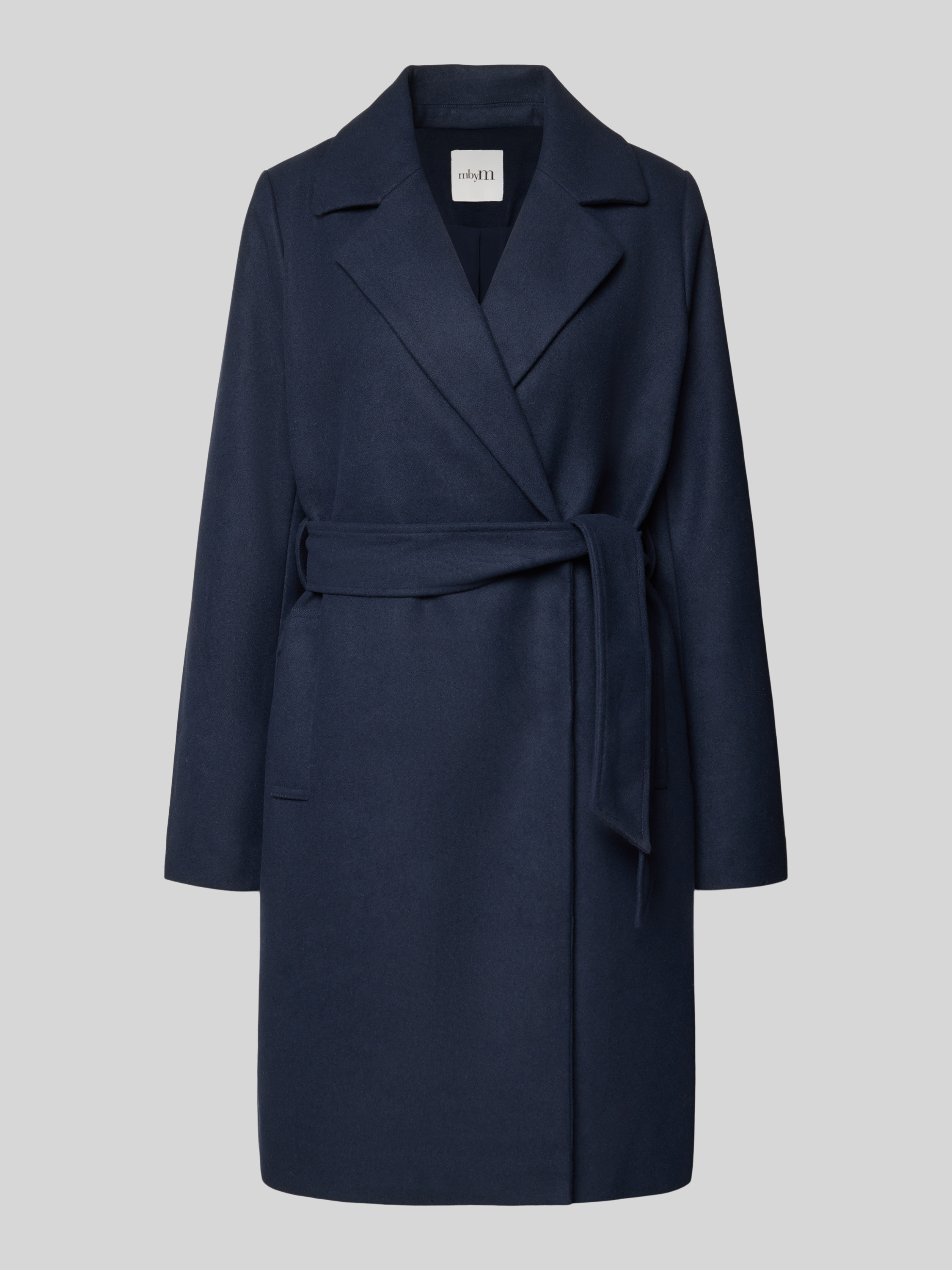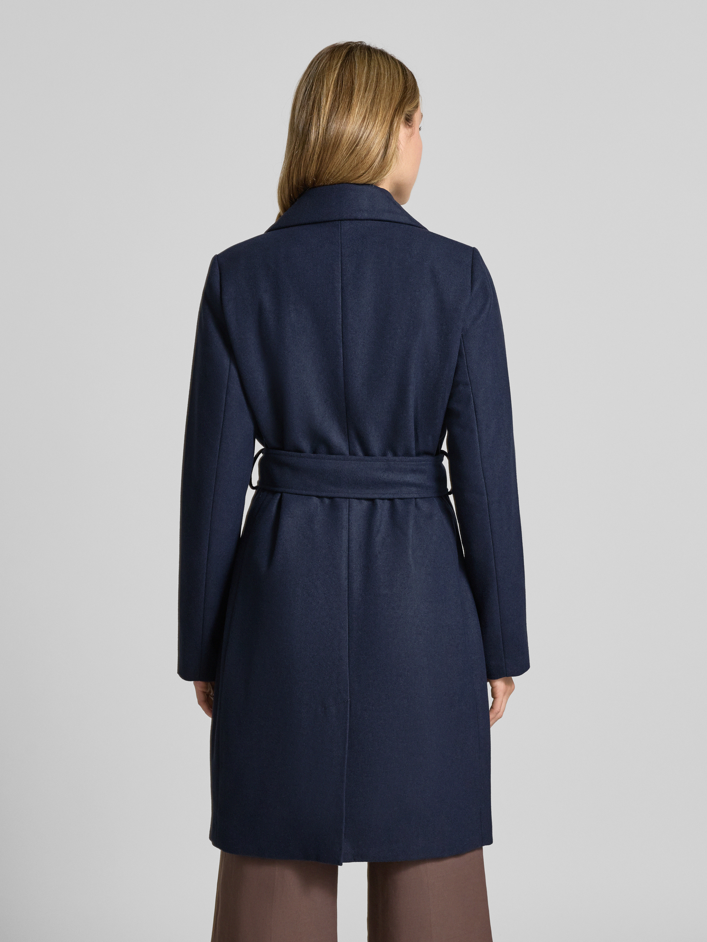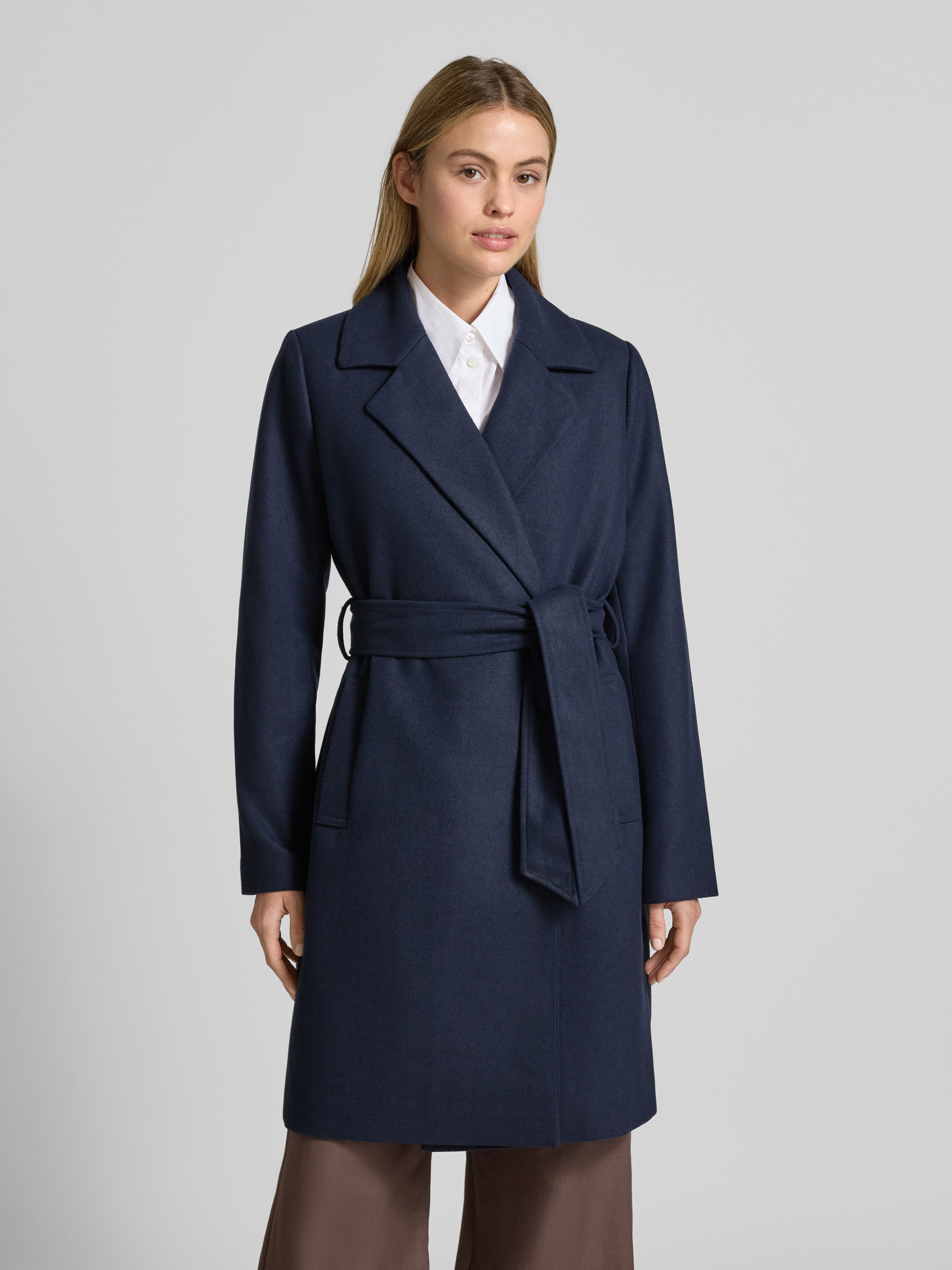 Lange jas met strikceintuur, model 'Tanni-M' in donkerblauw