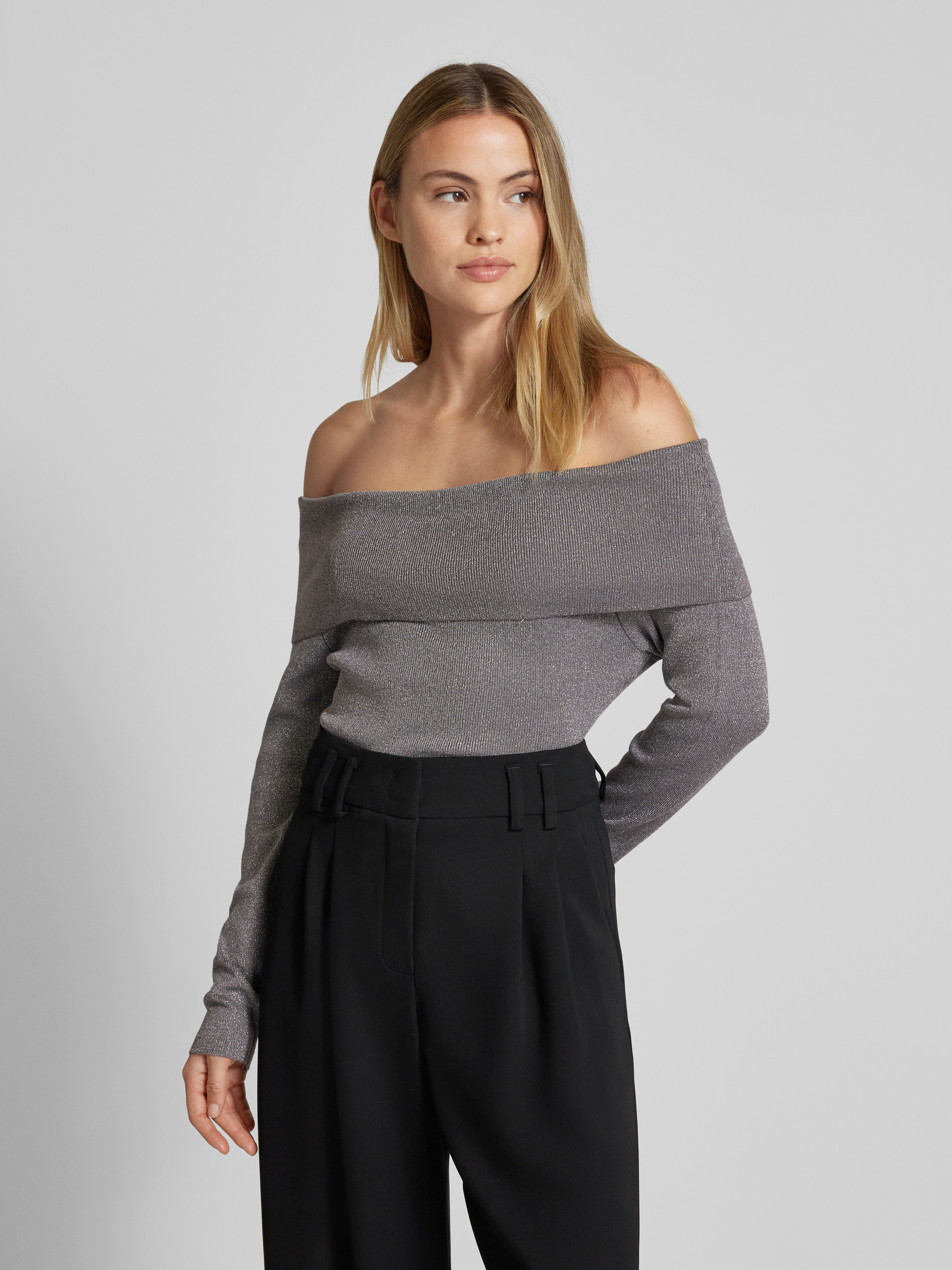 Shirt met lange mouwen van viscosemix, model 'Sammy' in zilver