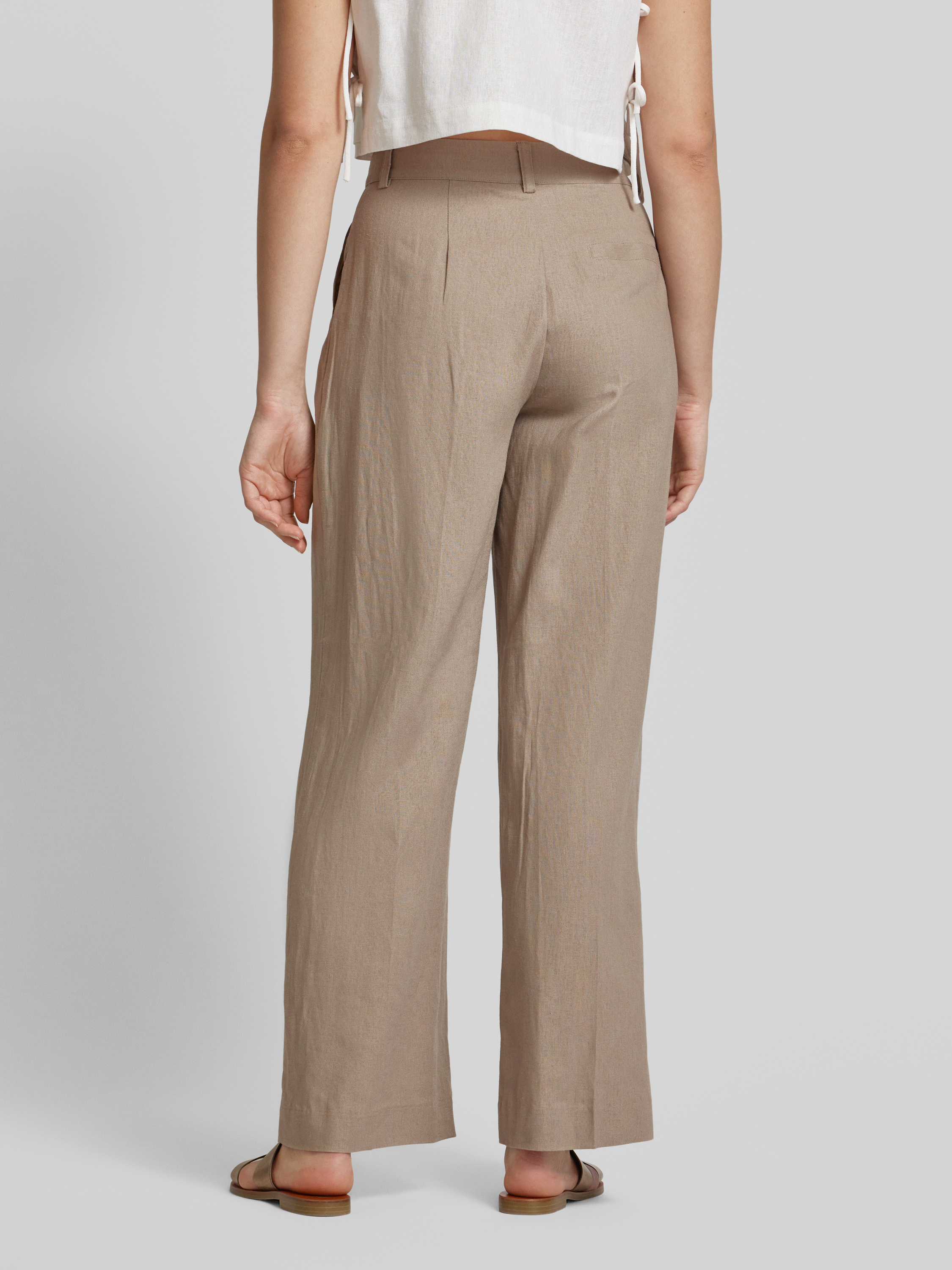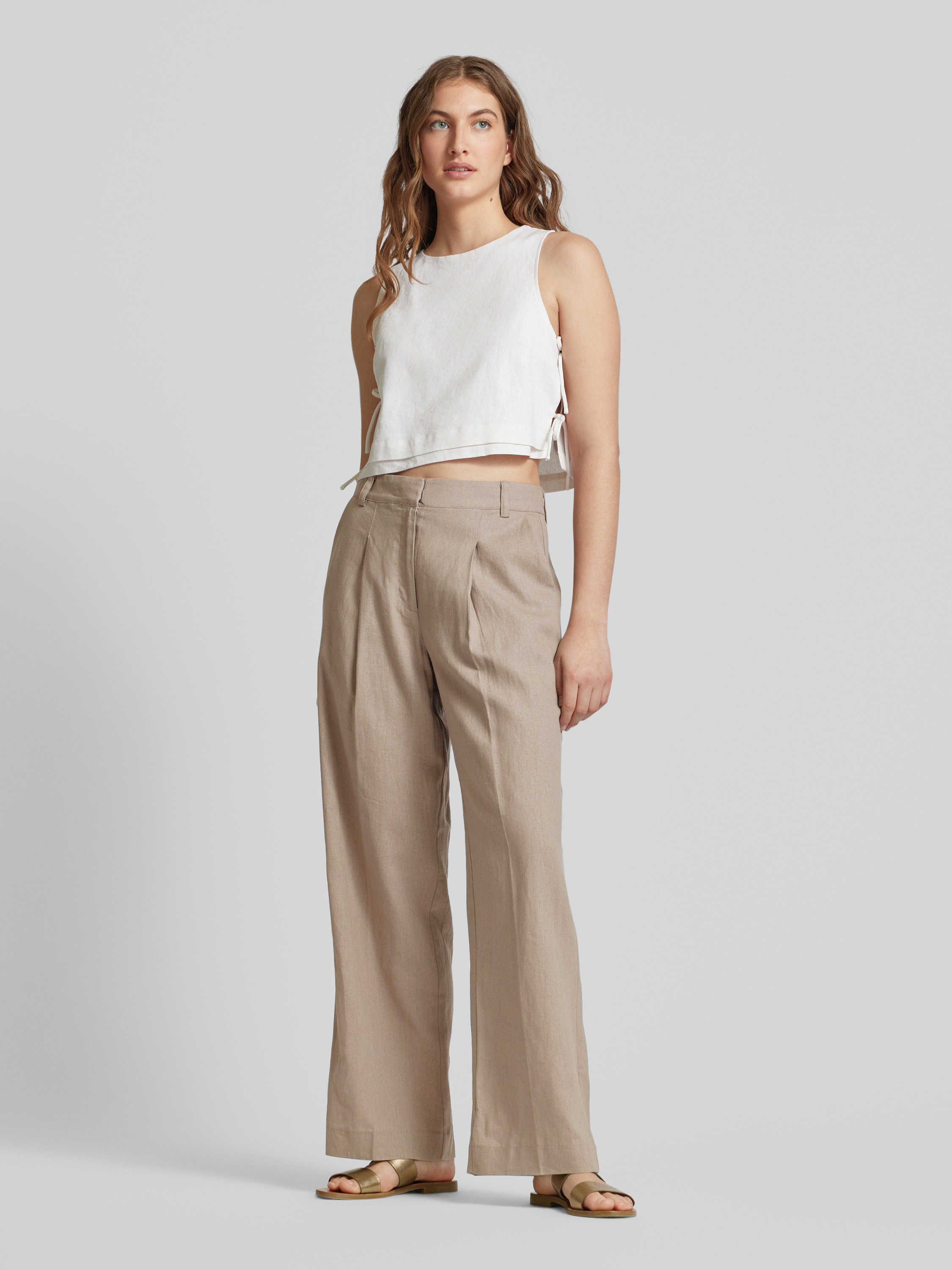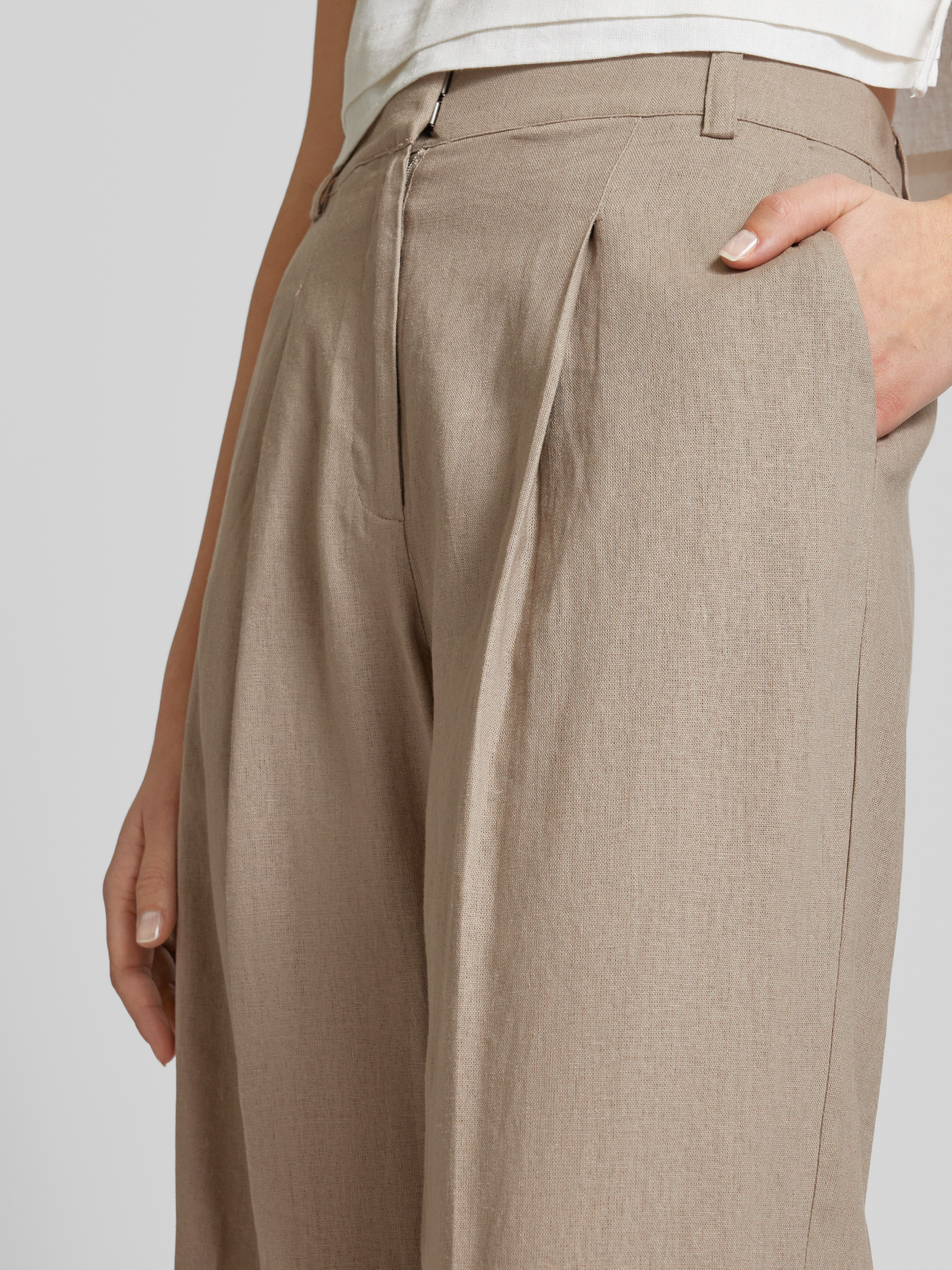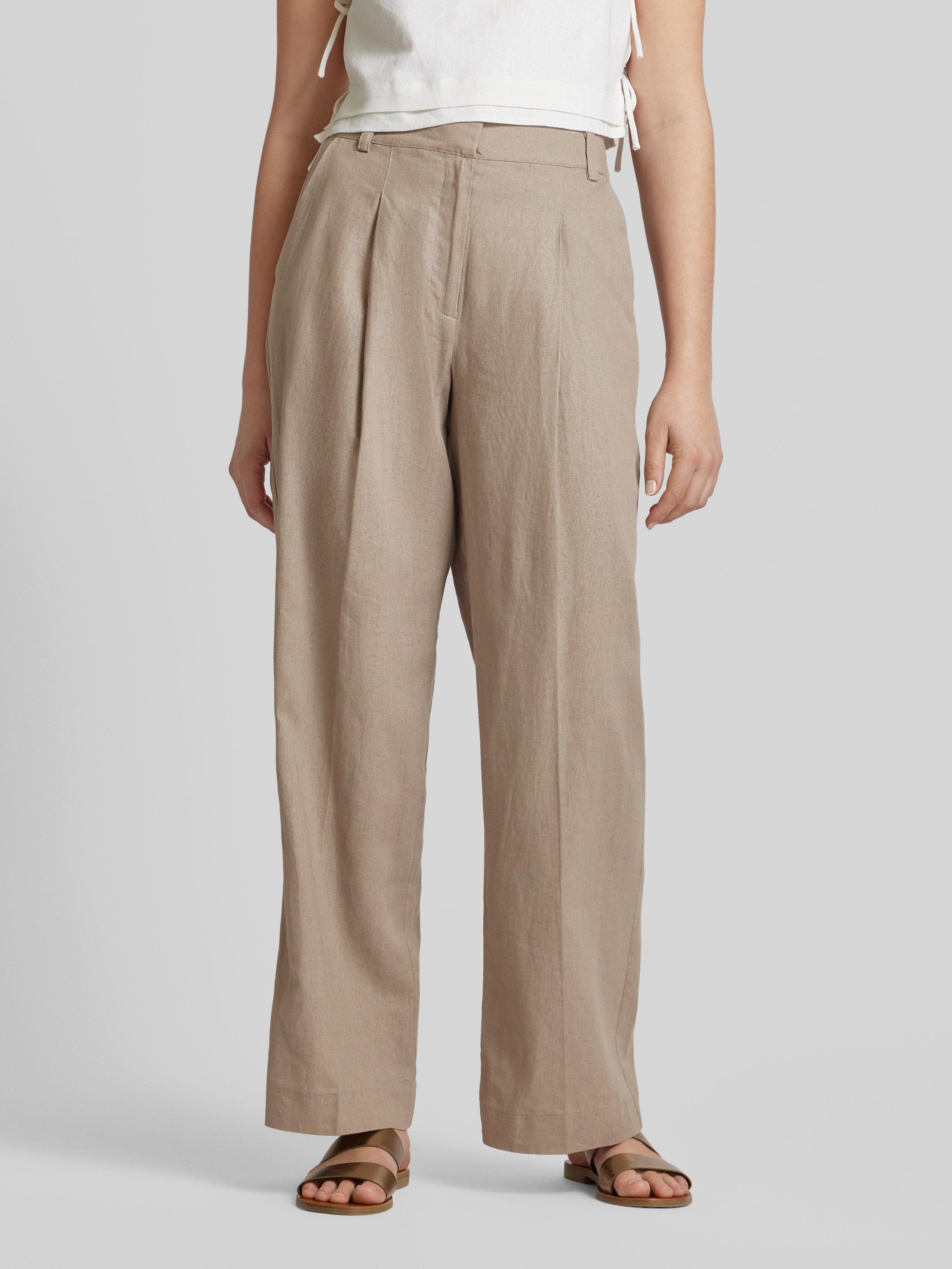 Wide leg linnen broek met bandplooien, model 'Cristiana' in taupe