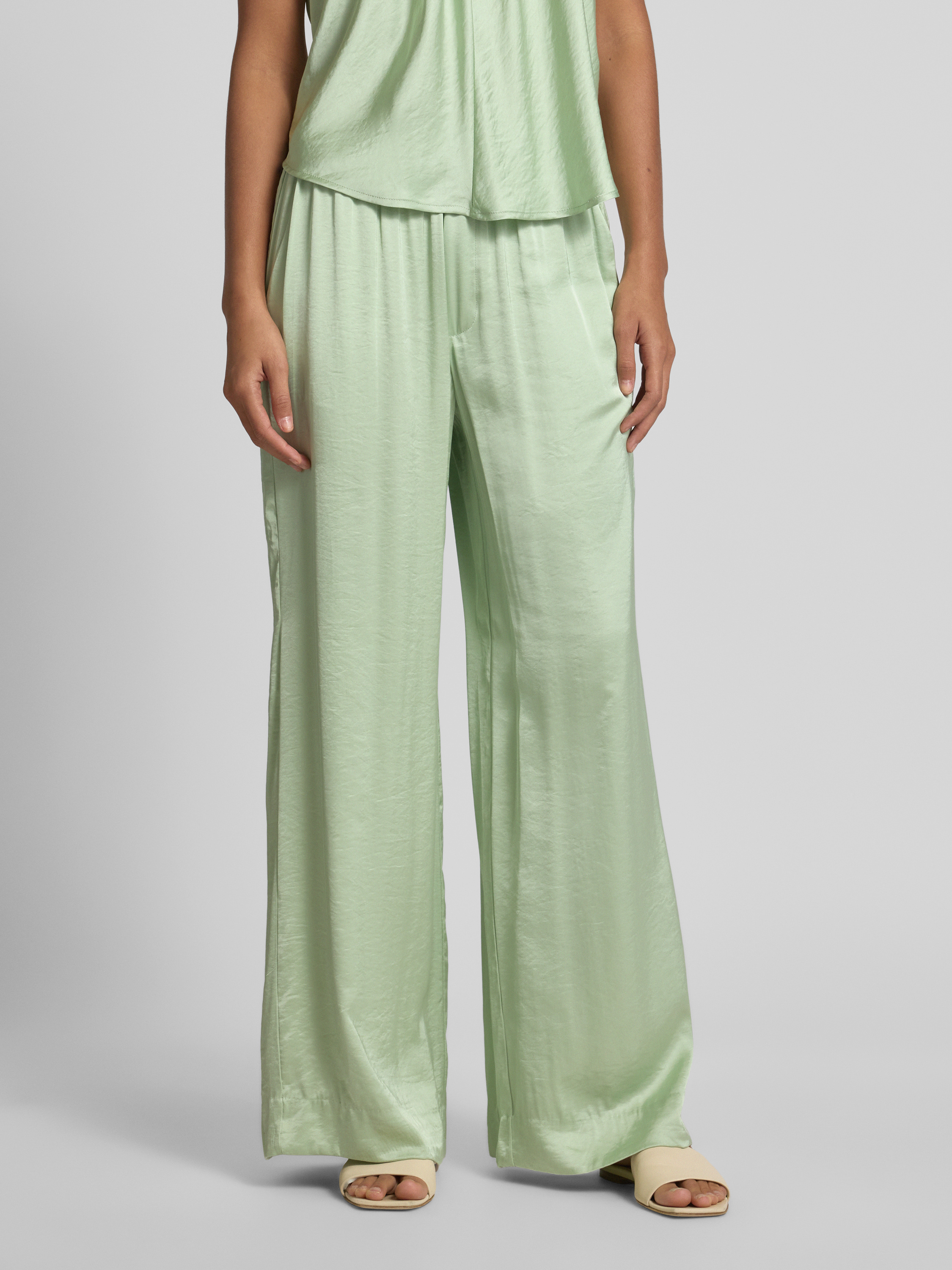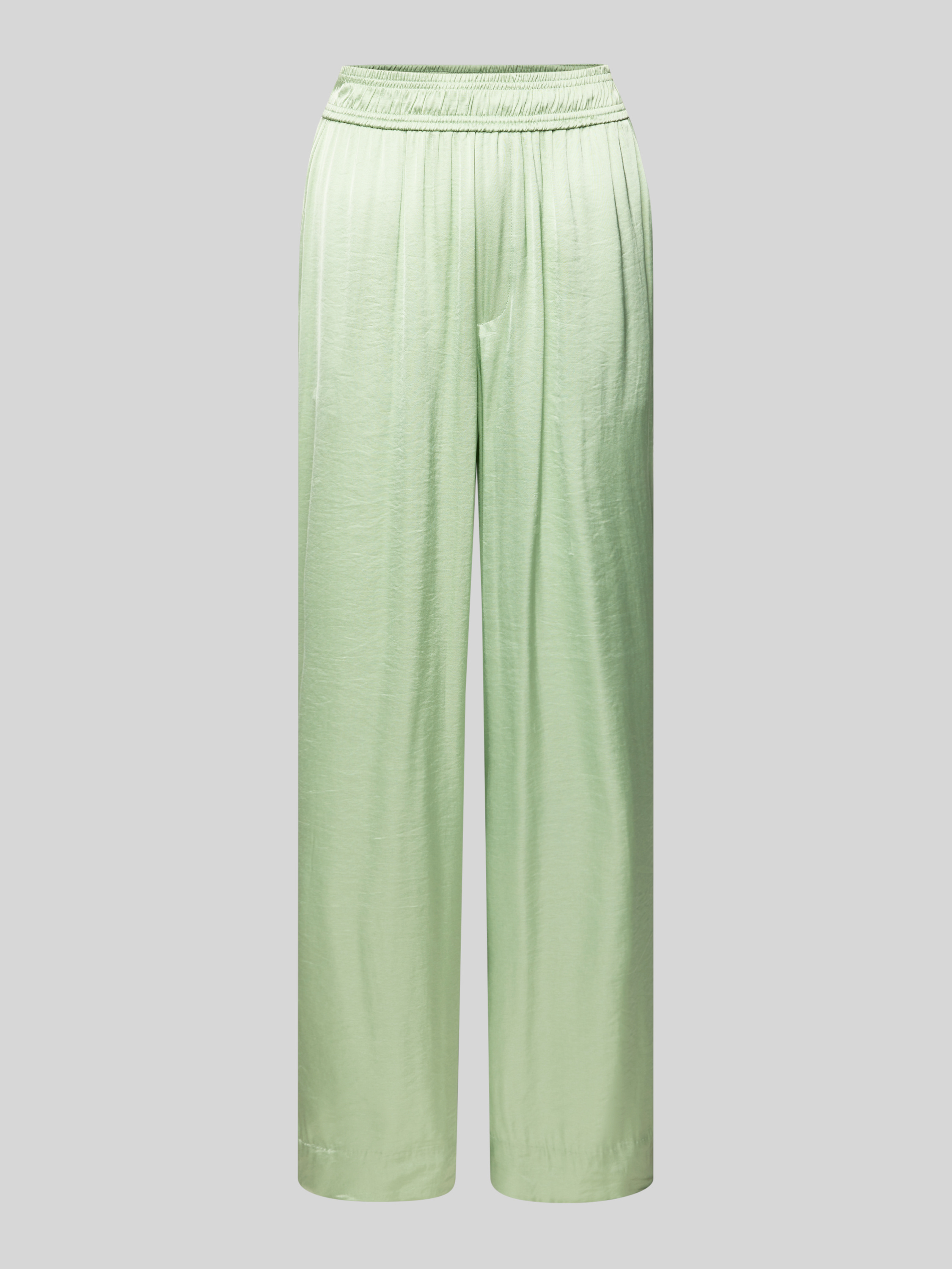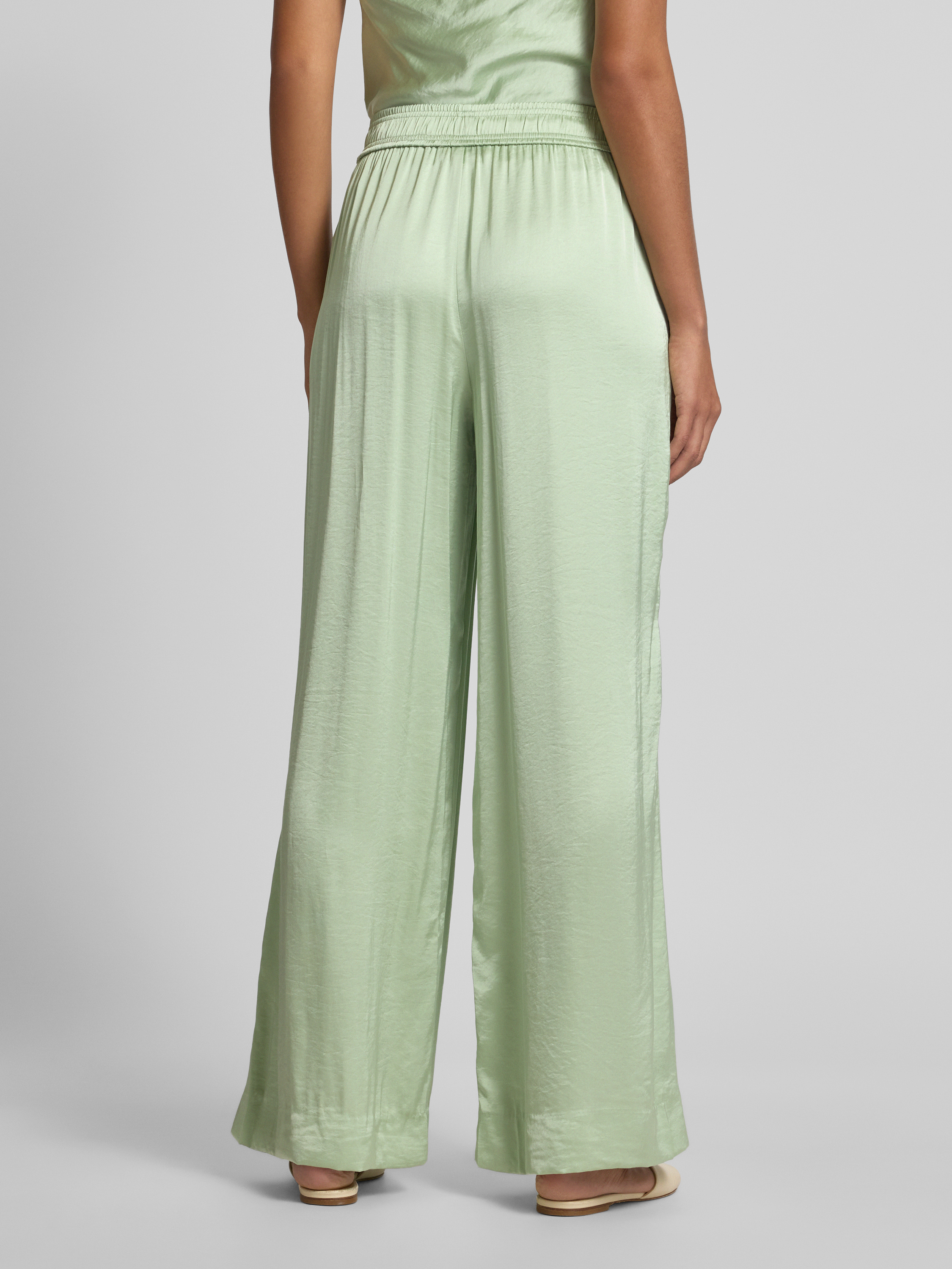 Wide leg stoffen broek met elastische band, model 'Asaka' in rietgroen