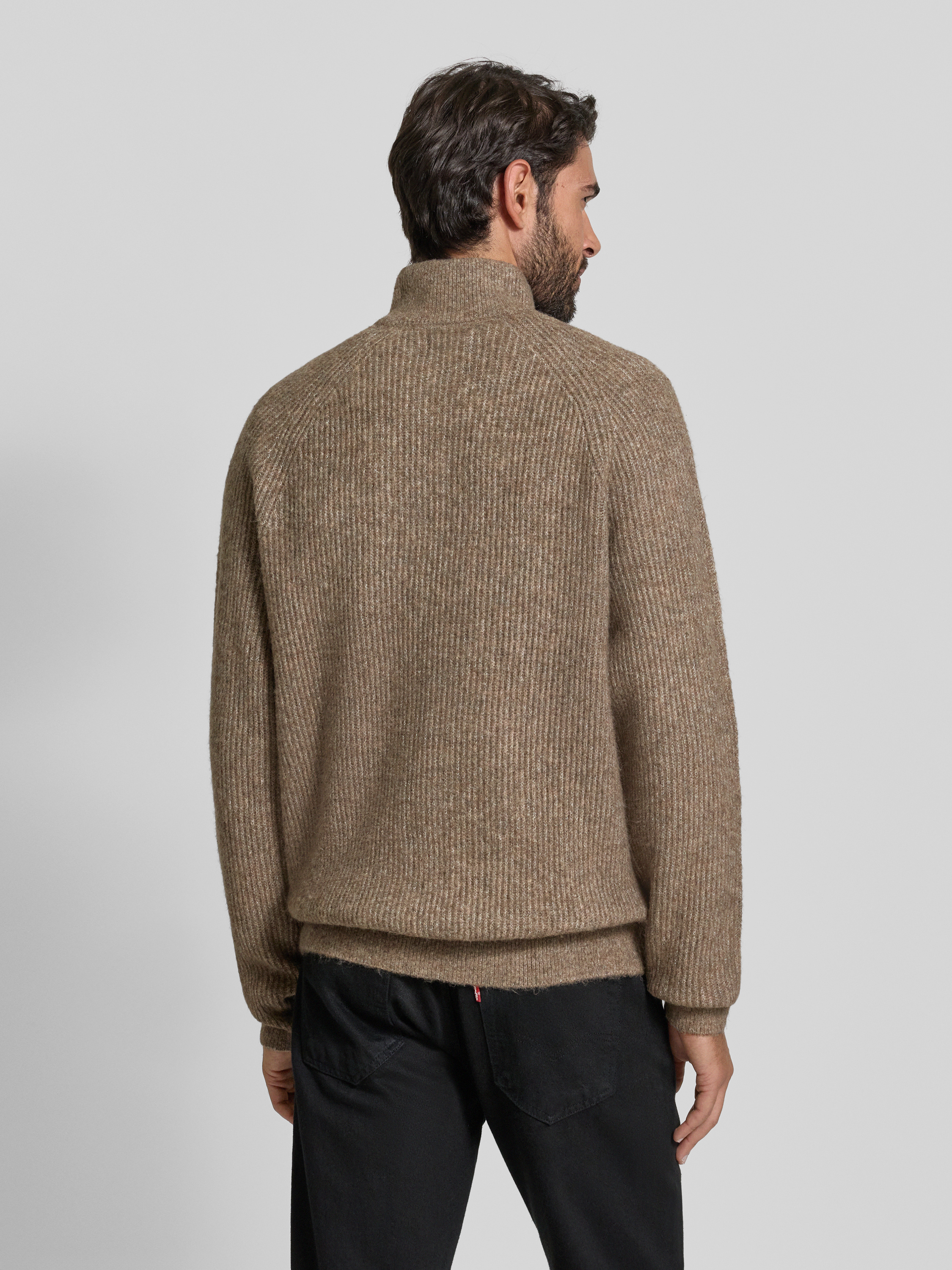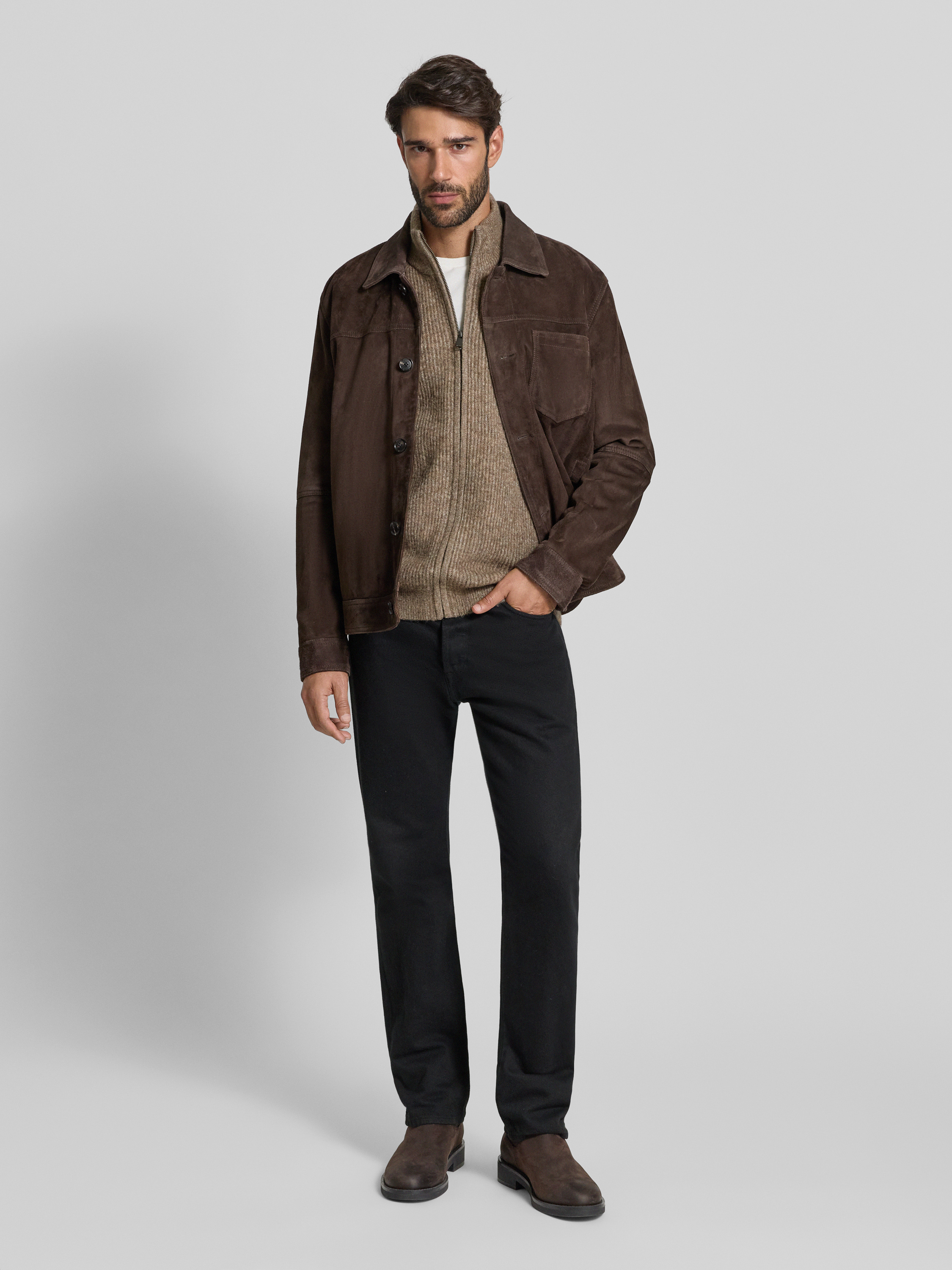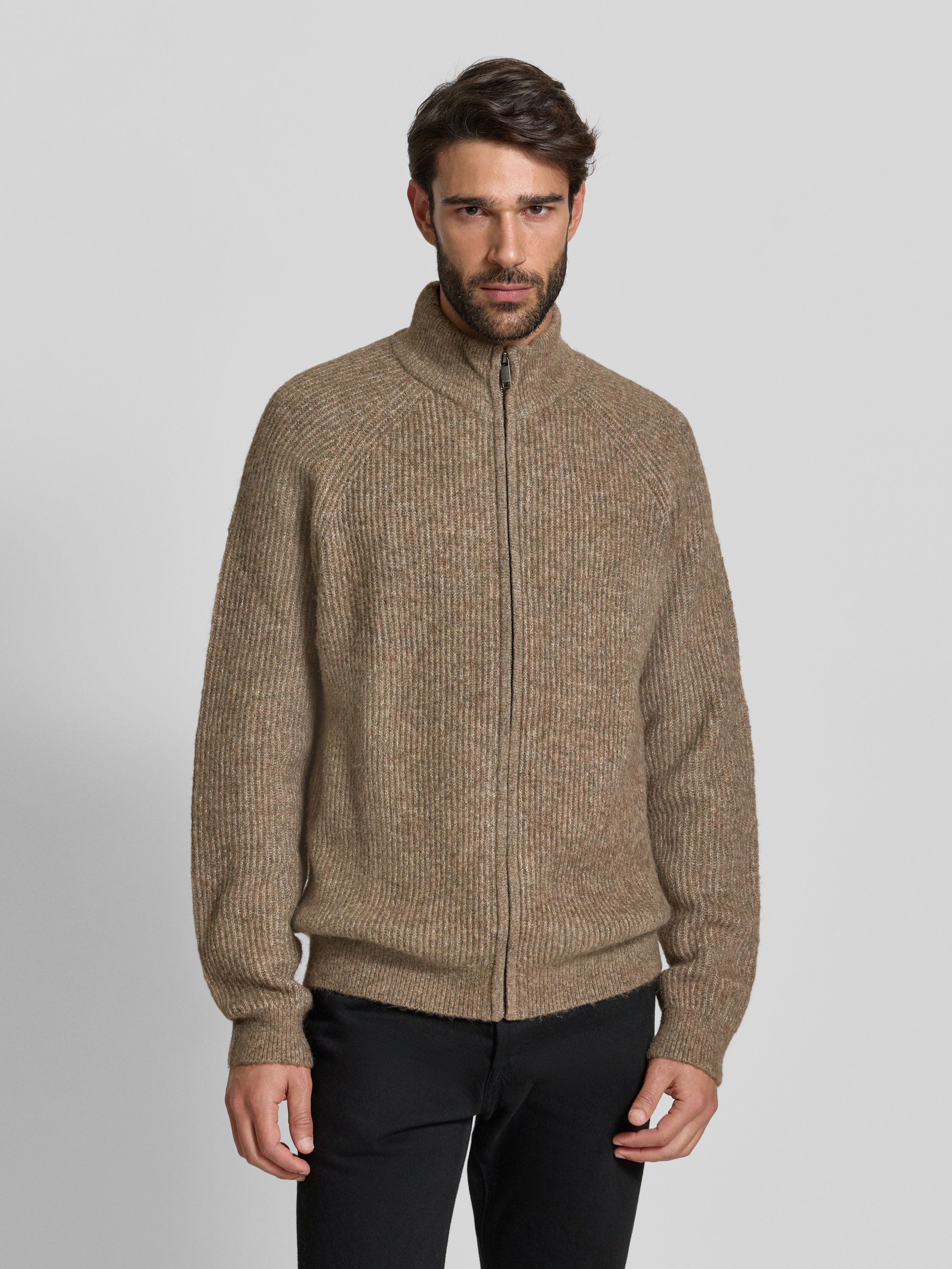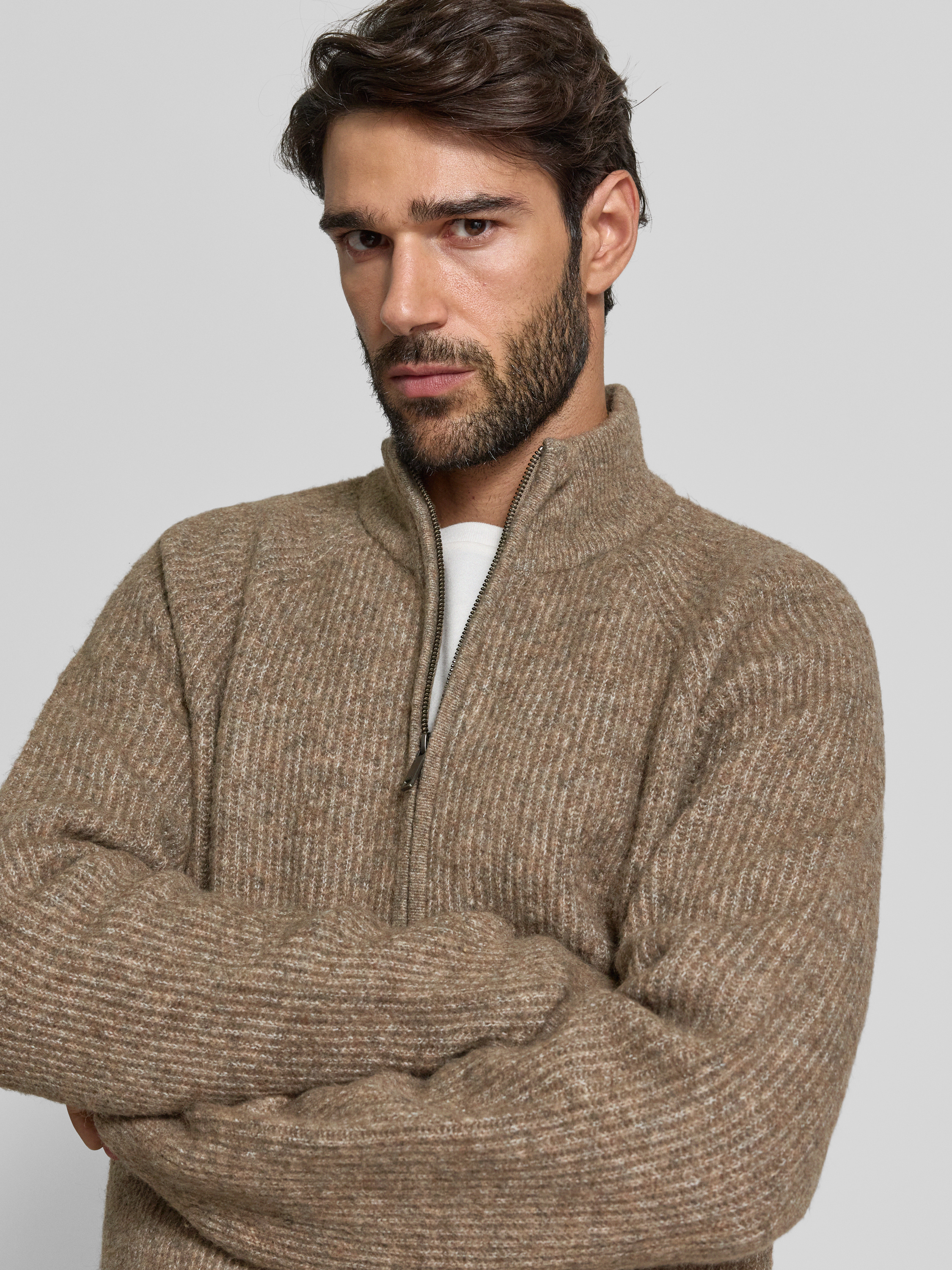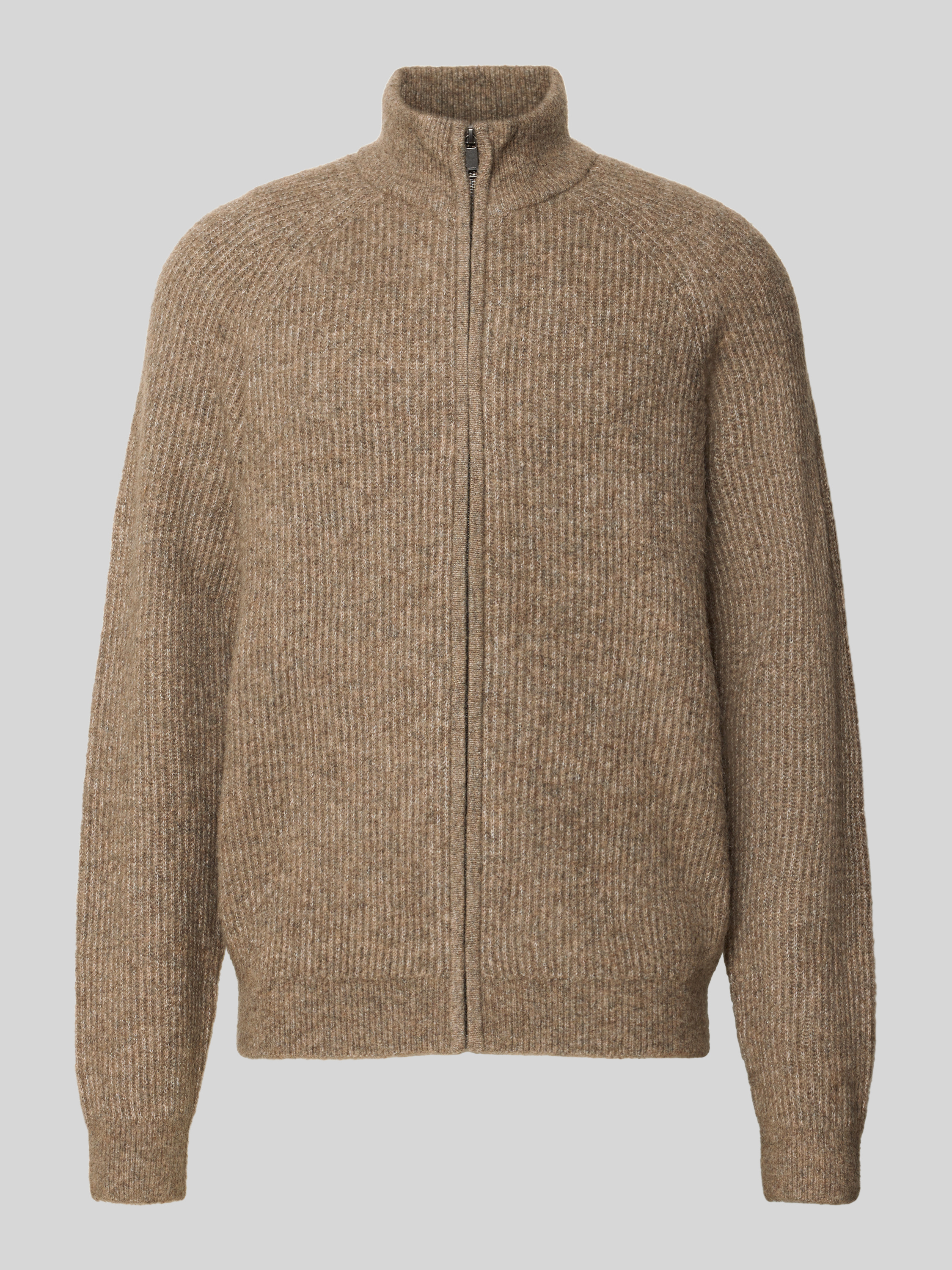Gebreid jack met ritssluiting in middenbruin gemêleerd