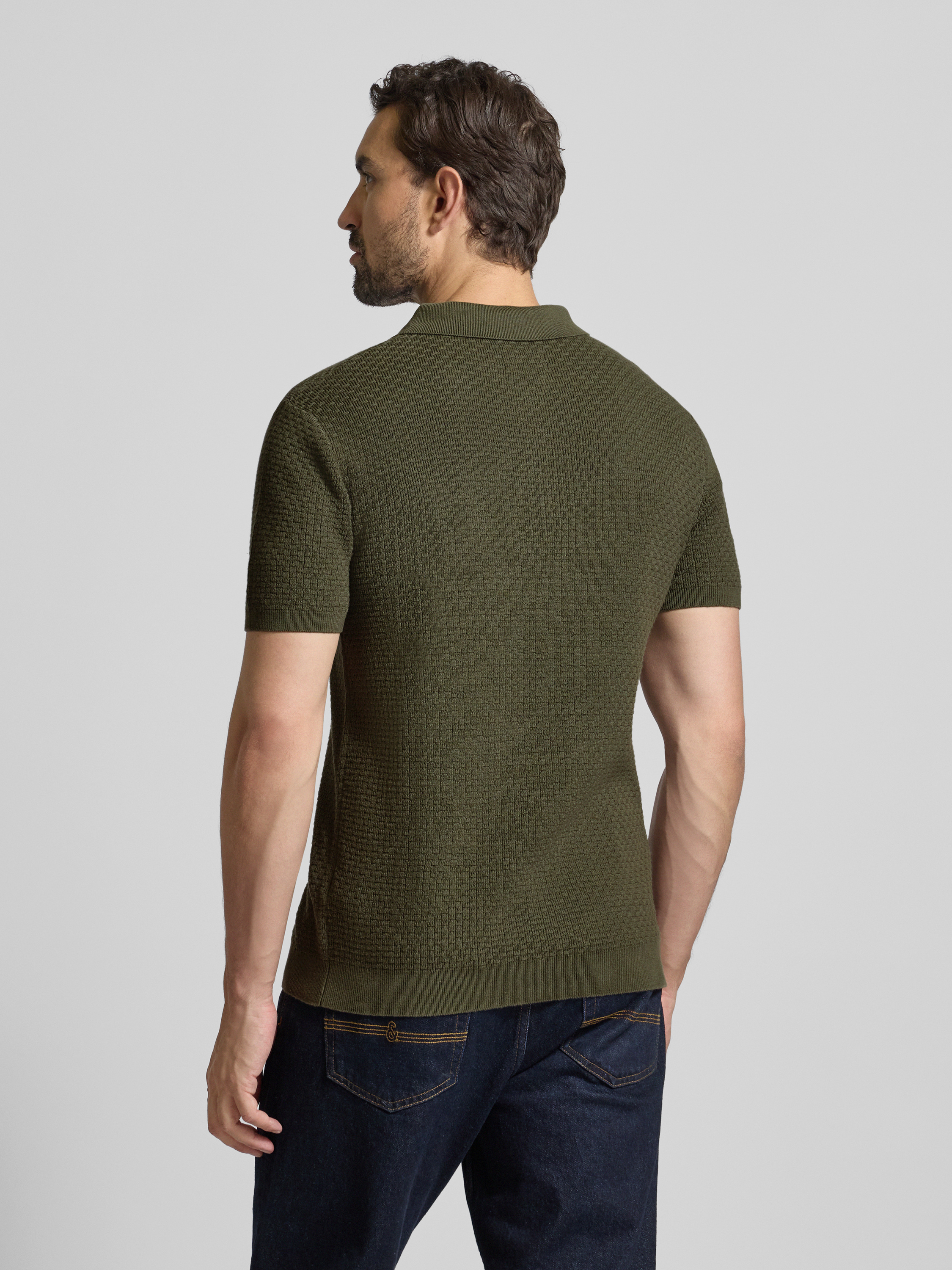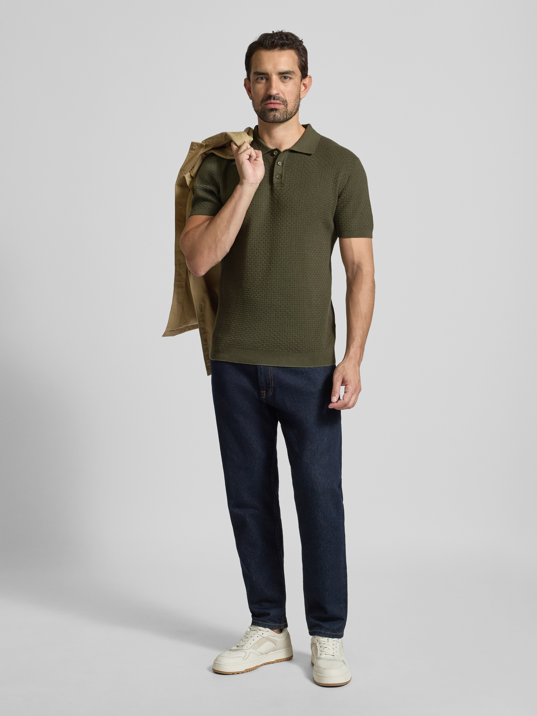 MCNEALGebreide polo met korte knoopsluiting in olijfgroen