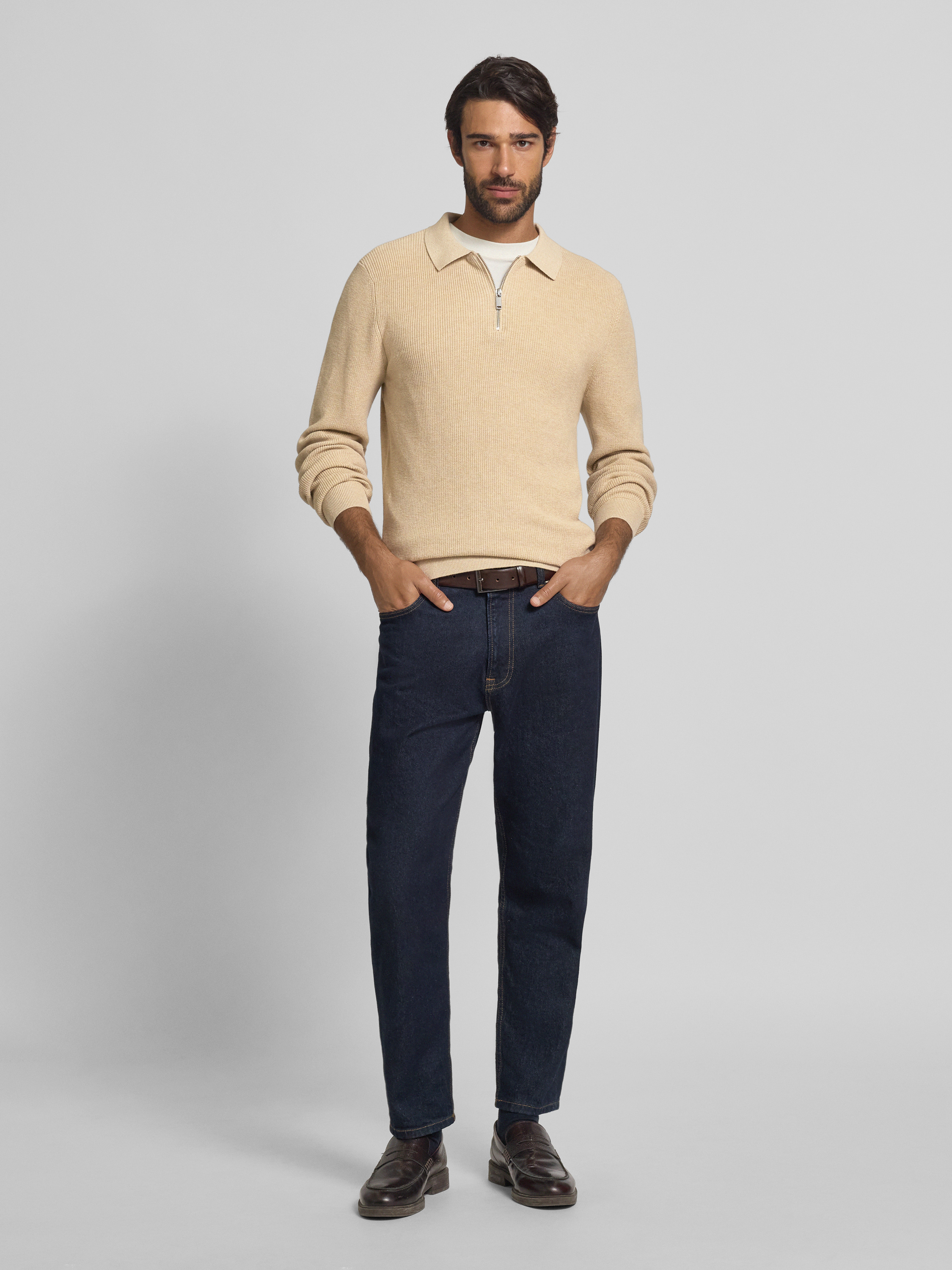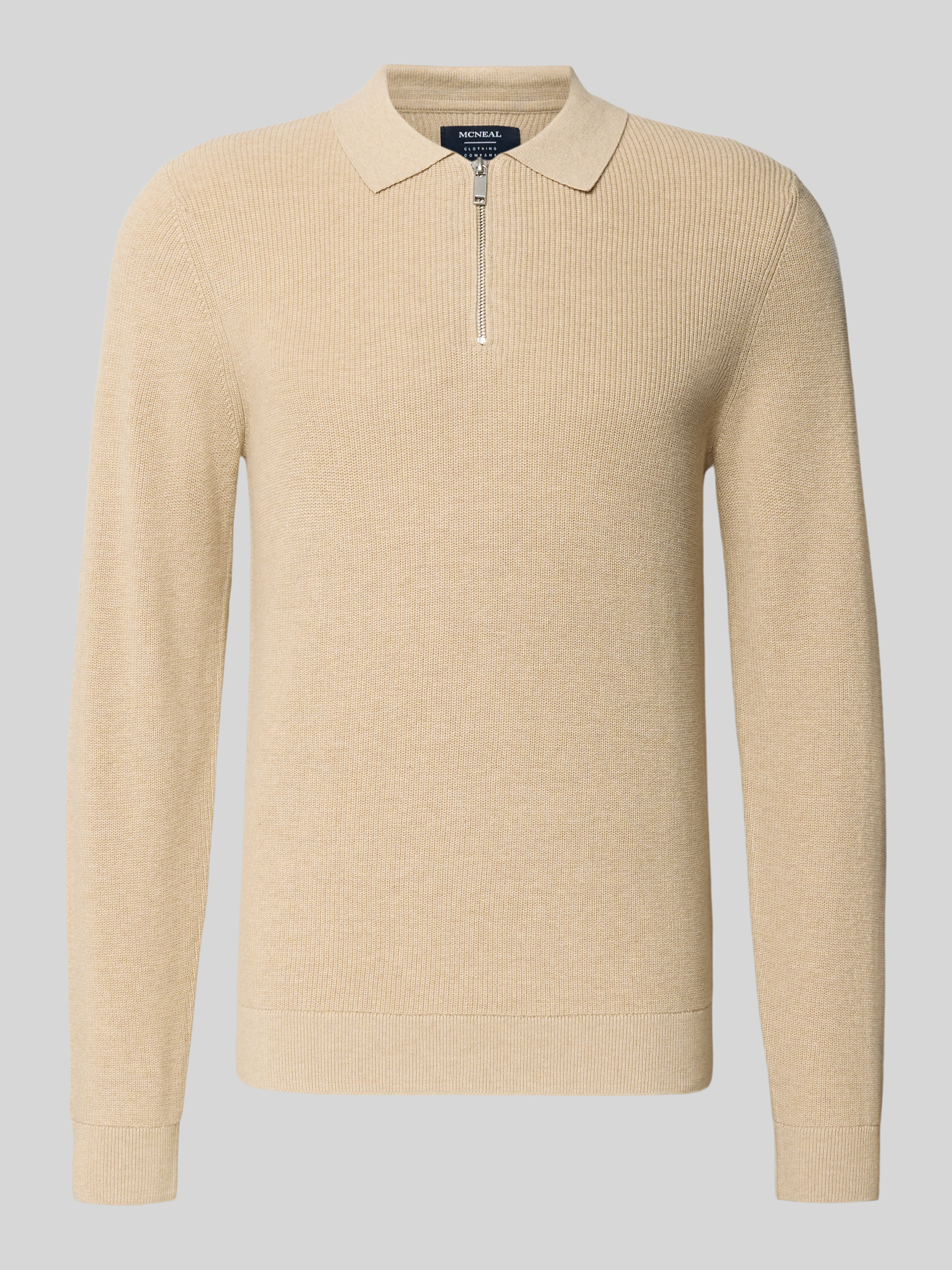 MCNEALGebreide pullover met reverskraag in zand gemêleerd