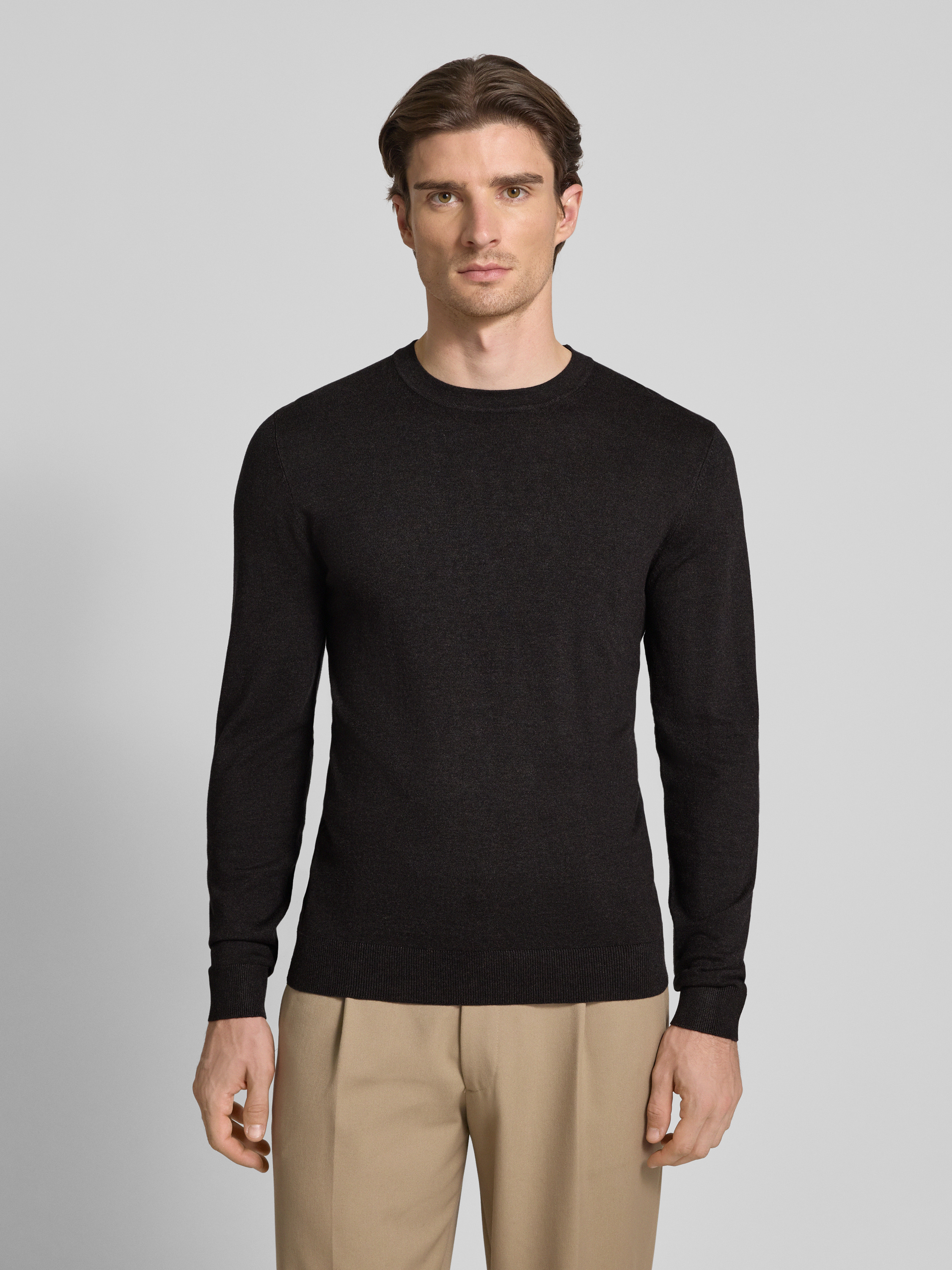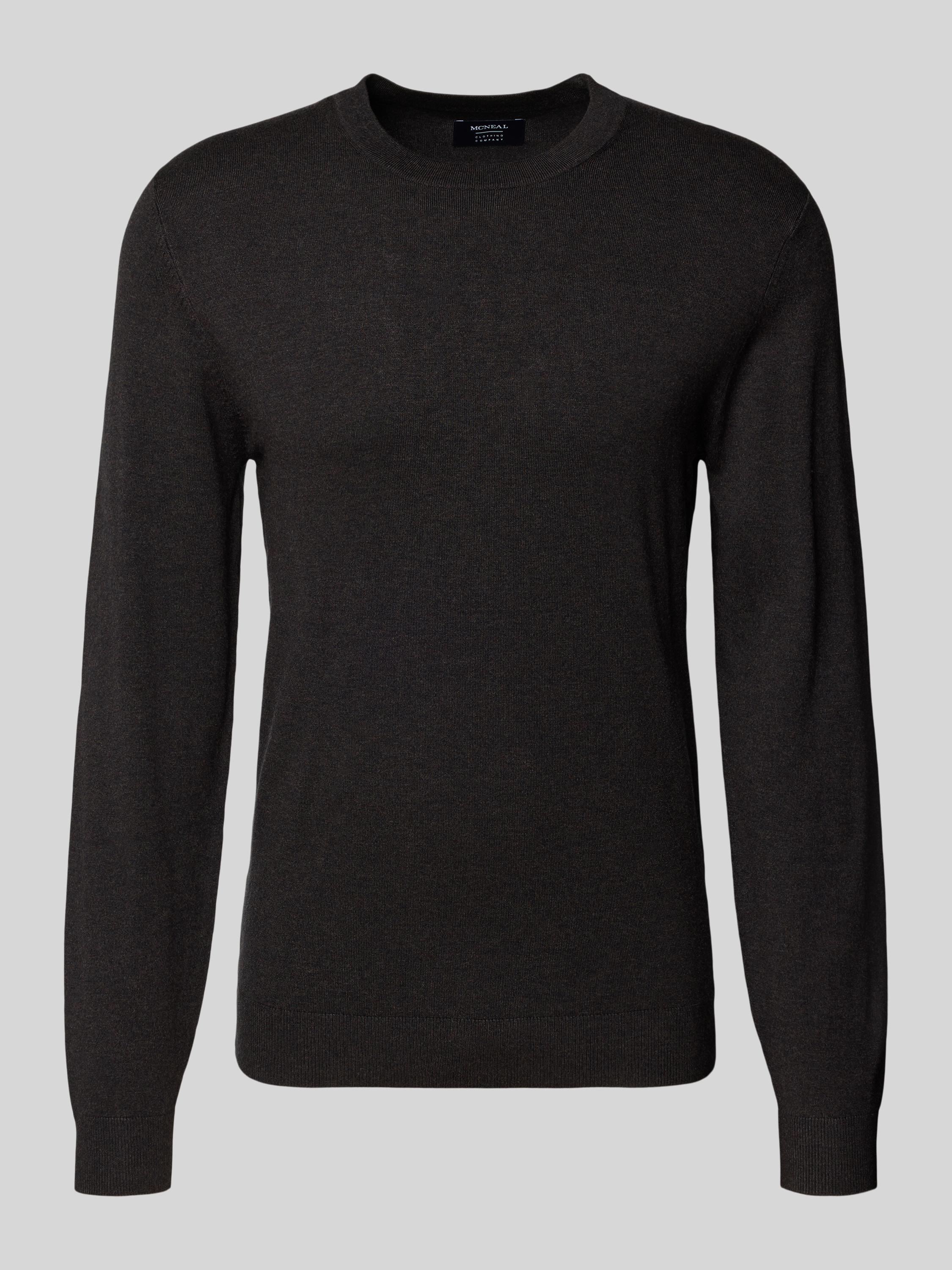 Gebreide pullover met ribboorden in chocoladebruin gemêleerd