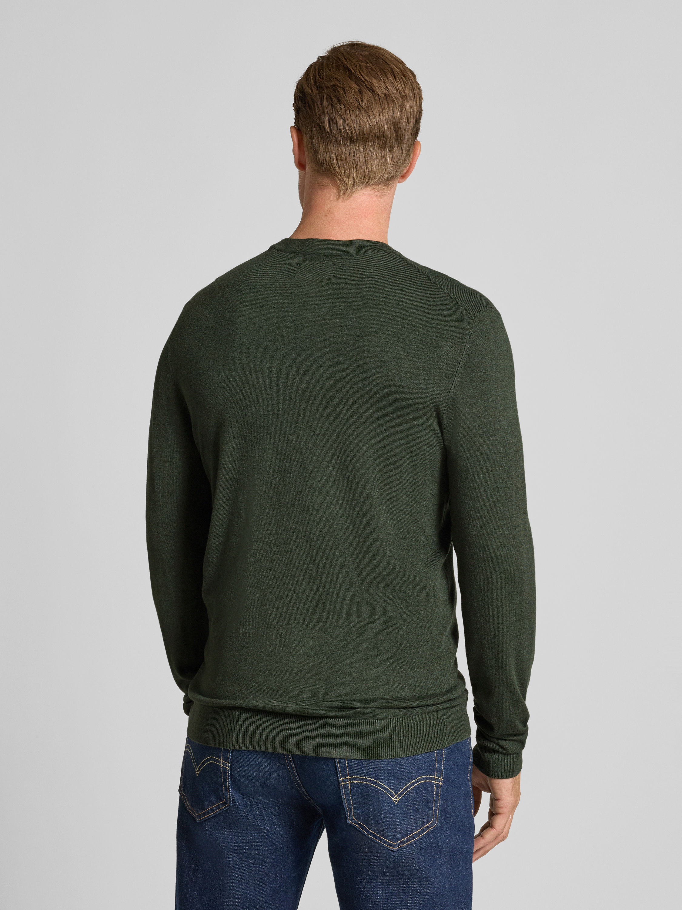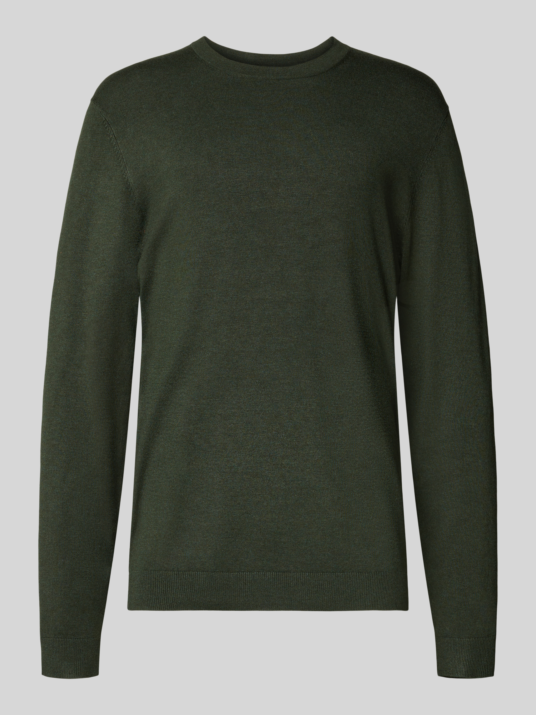 Gebreide pullover met ribboorden in donkergroen gemêleerd