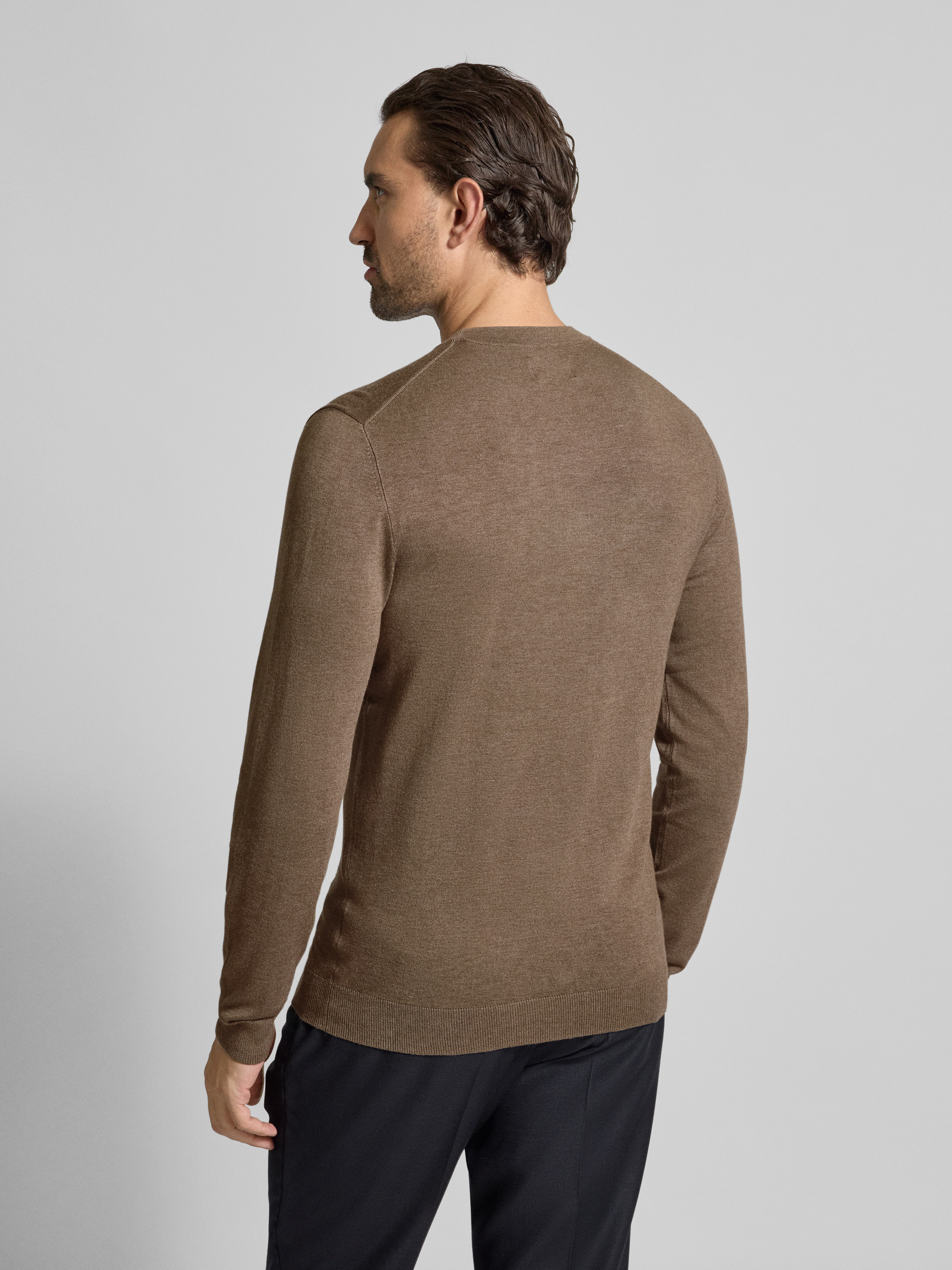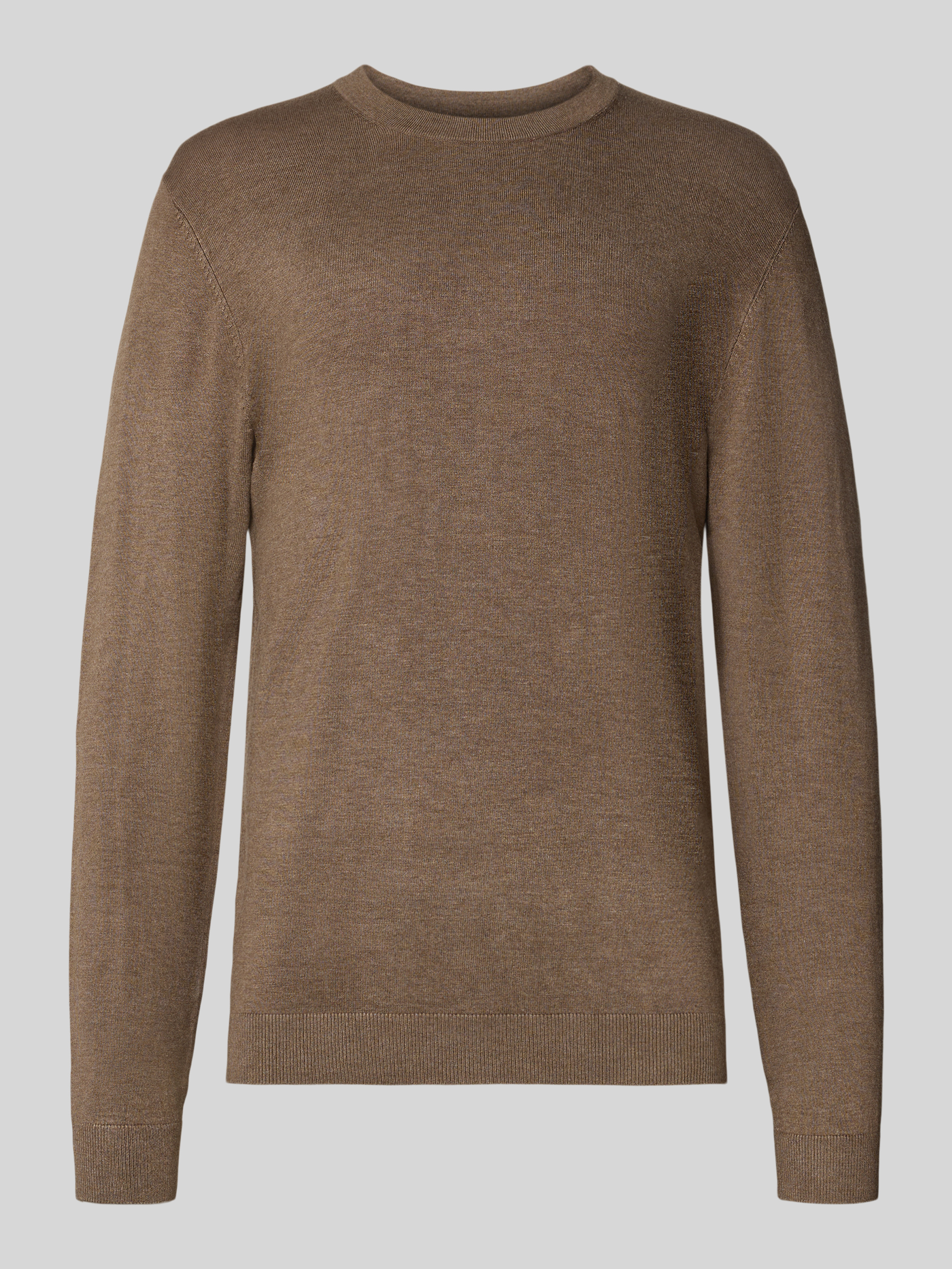 Gebreide pullover met ribboorden in middenbruin gemêleerd
