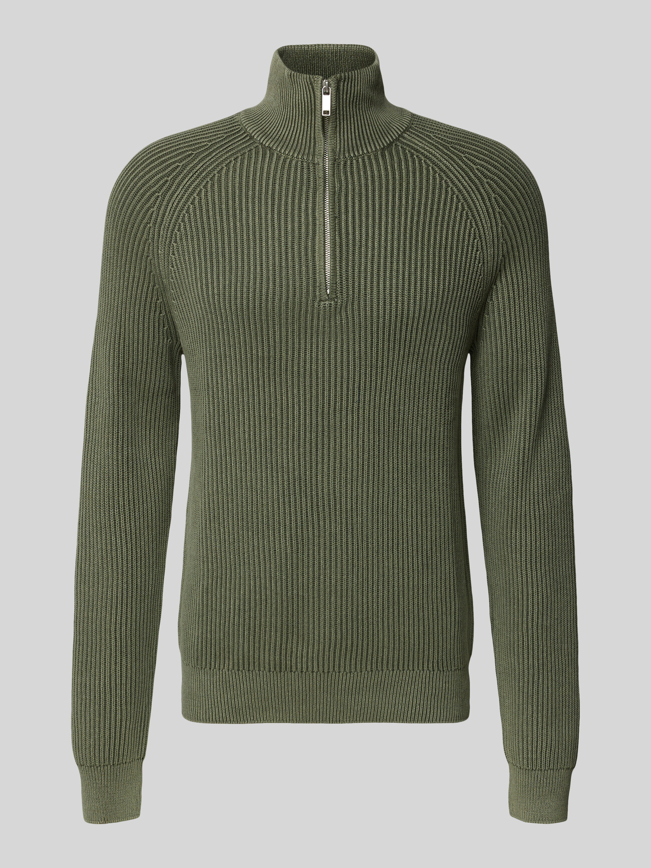 MCNEALGebreide pullover met ribboorden in olijfgroen