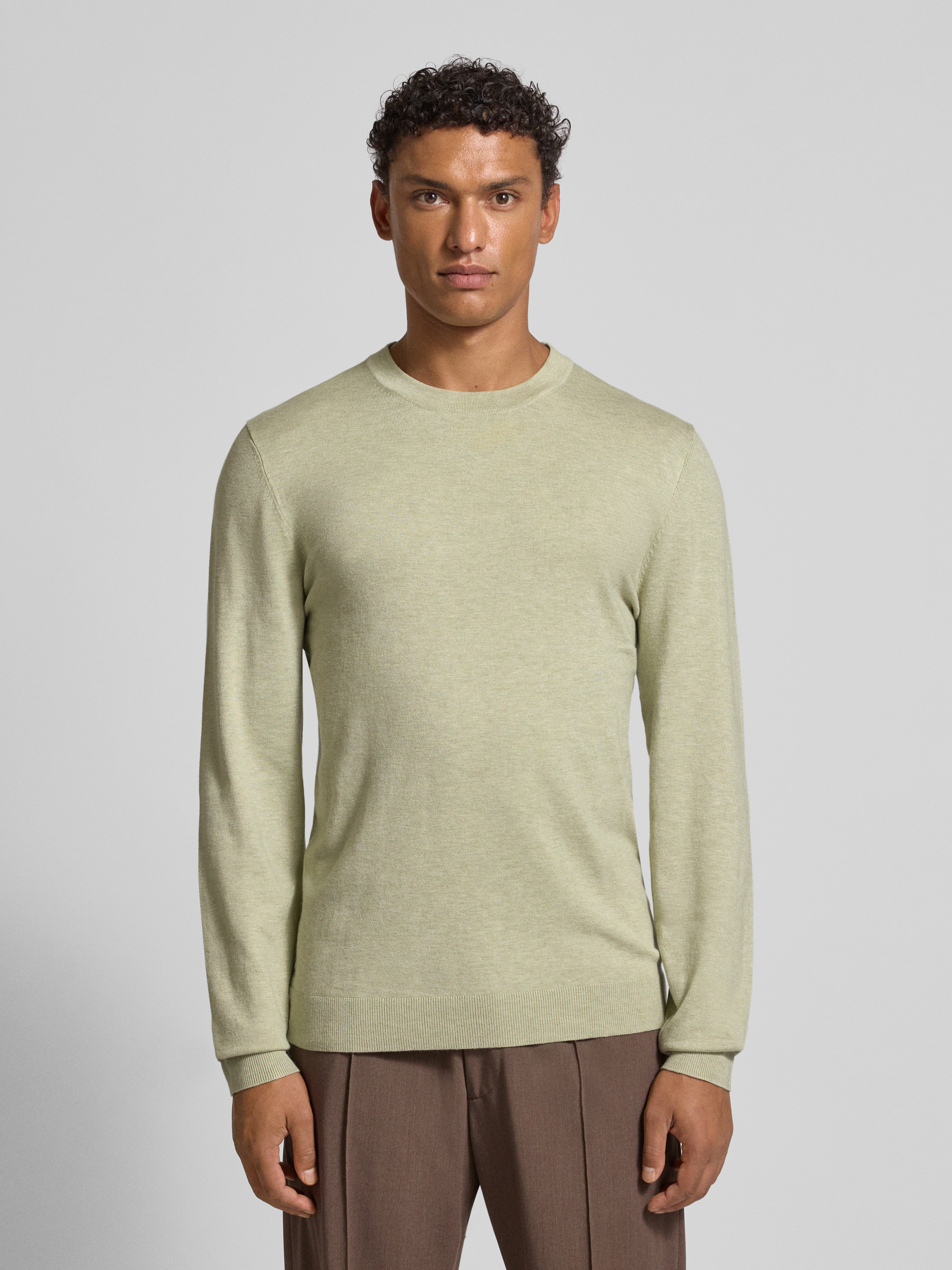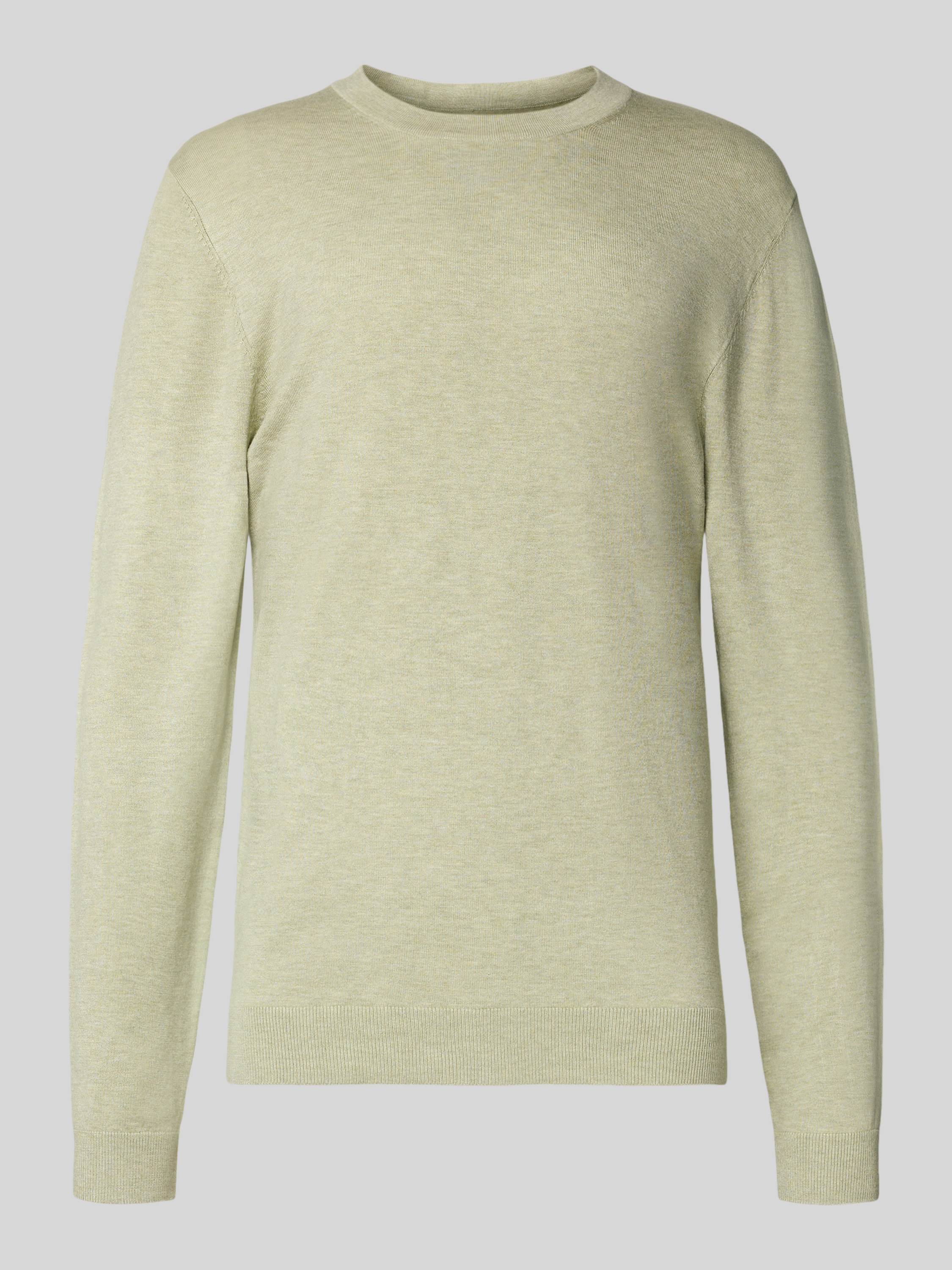 Gebreide pullover met ribboorden in rietgroen gemêleerd