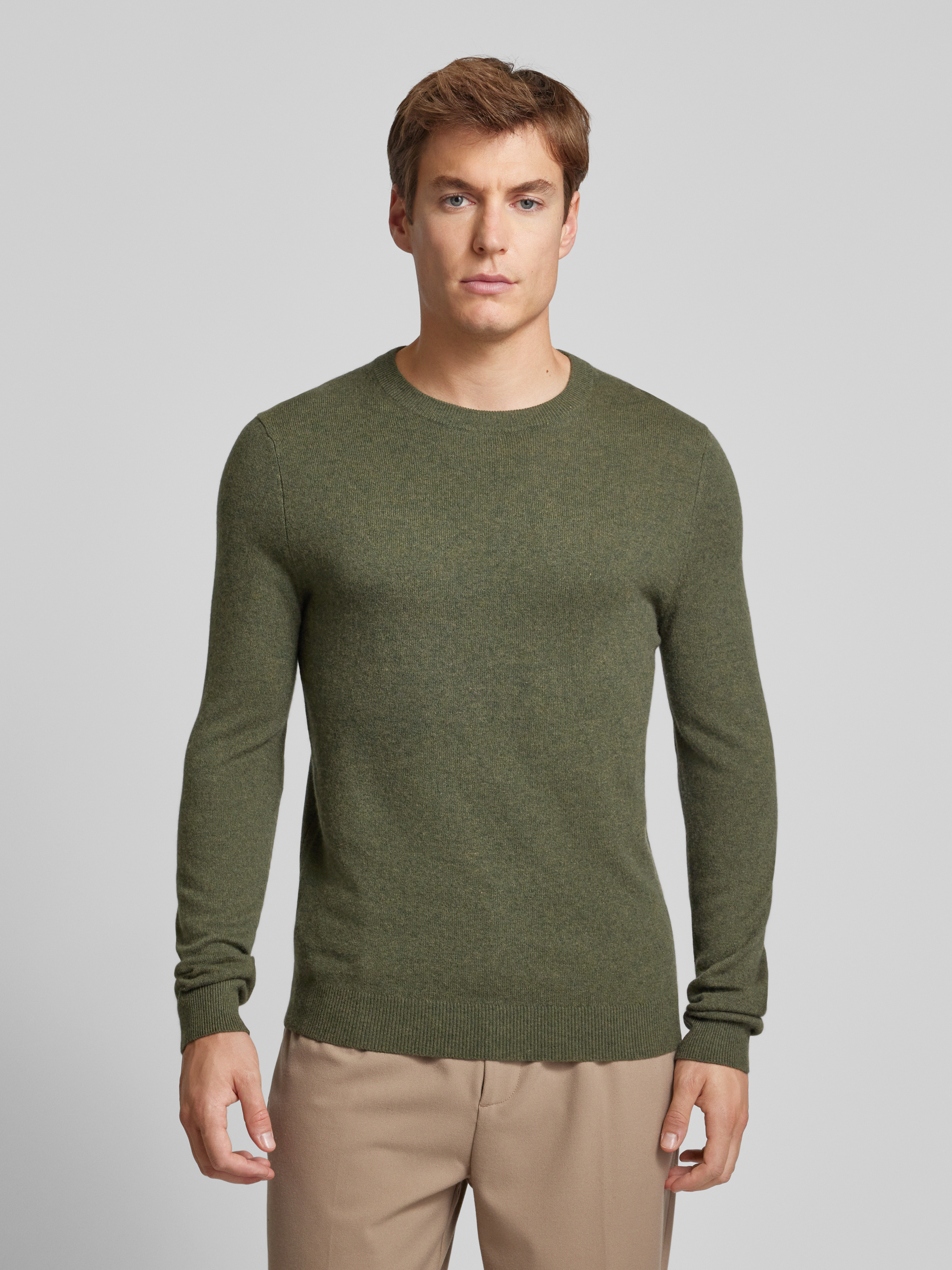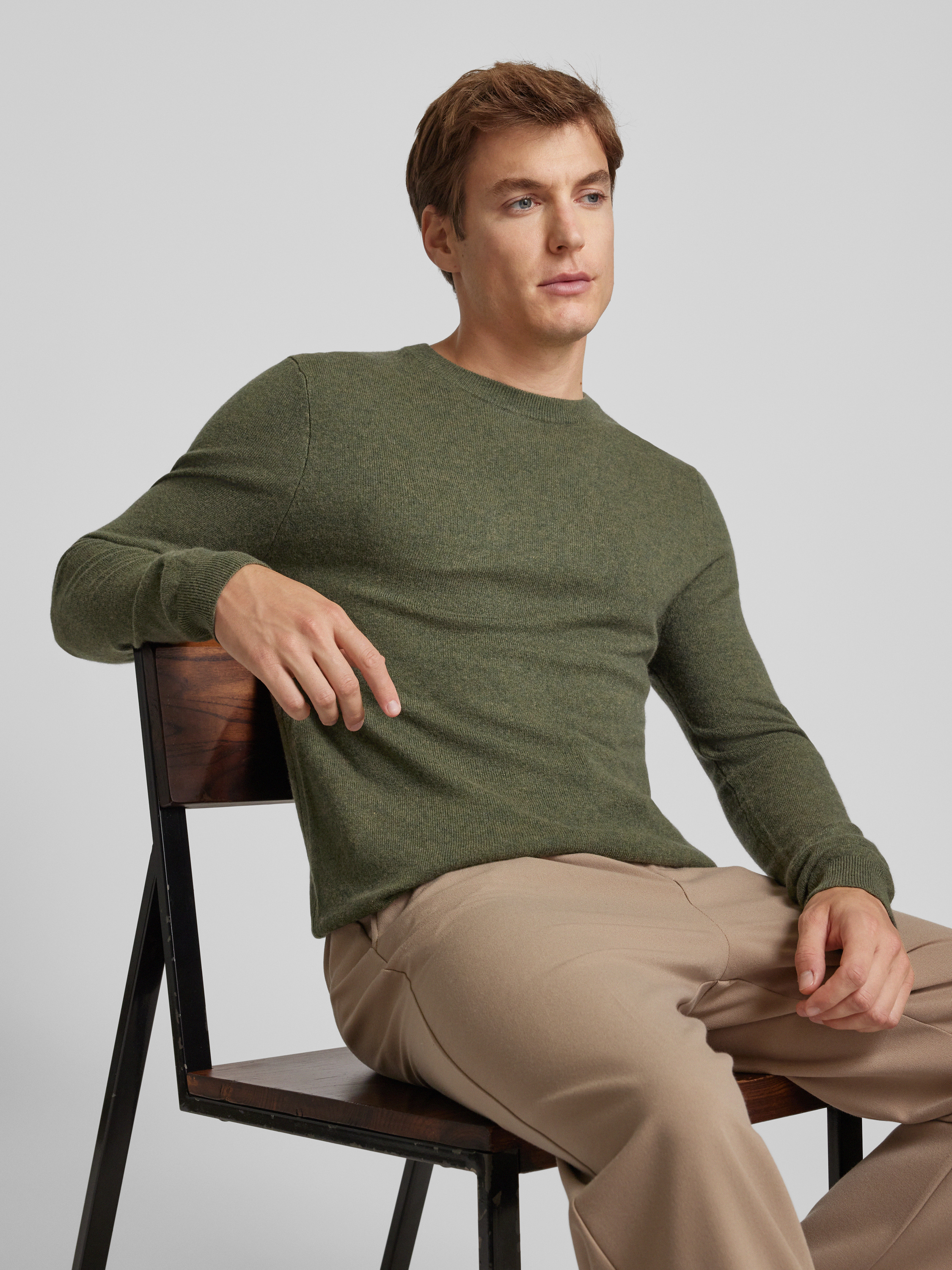 Gebreide pullover met ronde hals in kaki gemêleerd