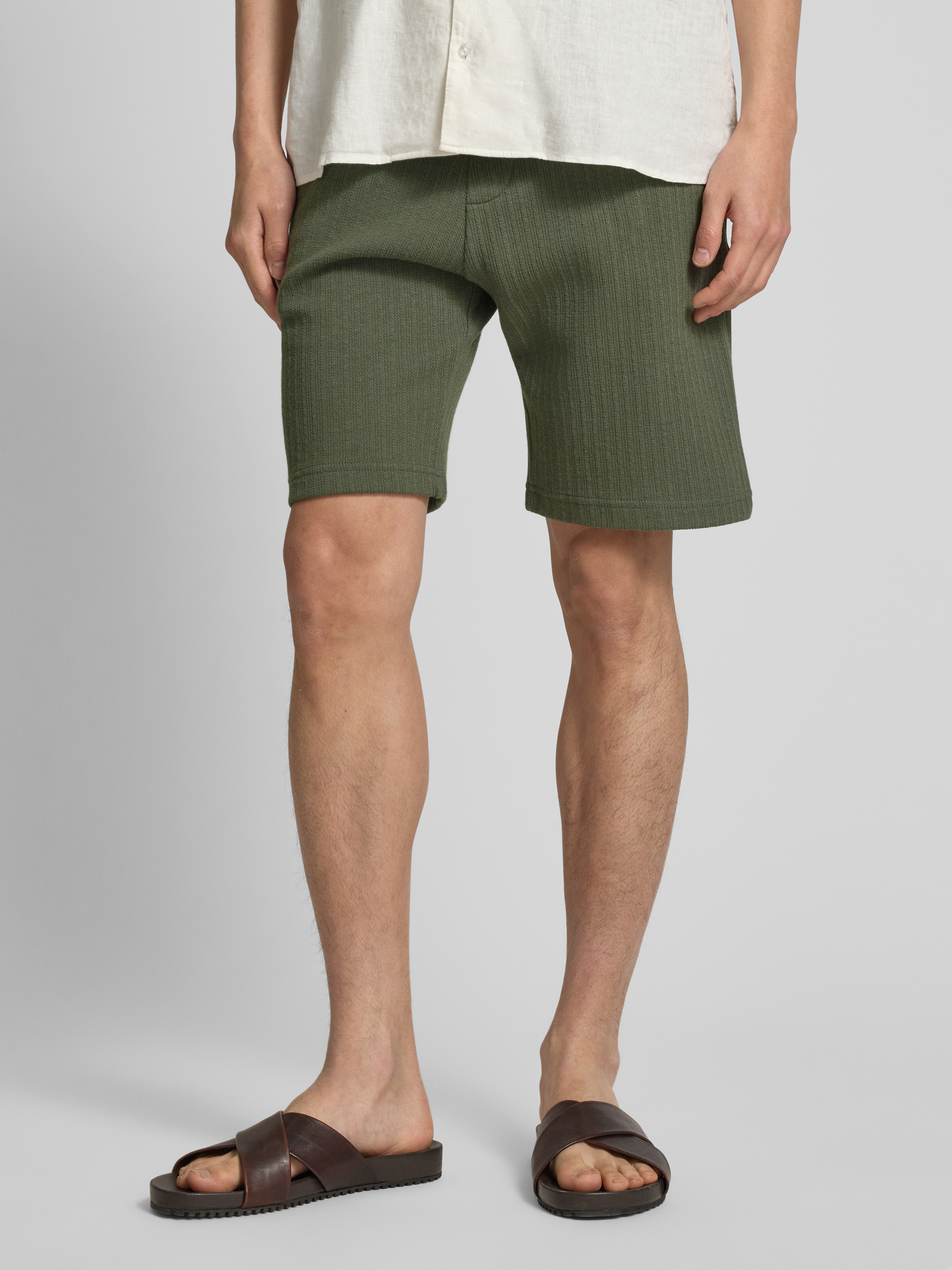 MCNEALKorte regular fit broek met structuurmotief in kaki