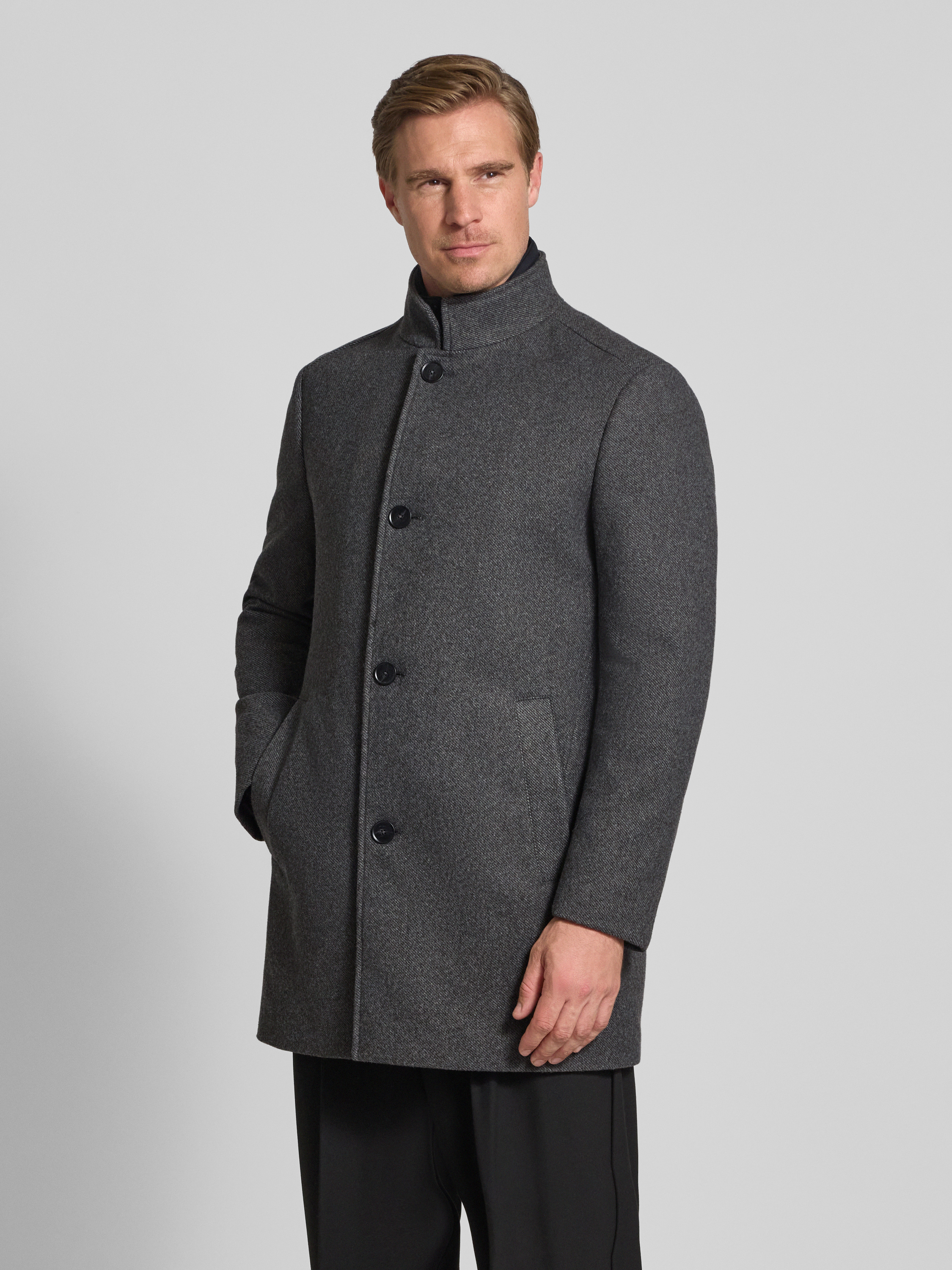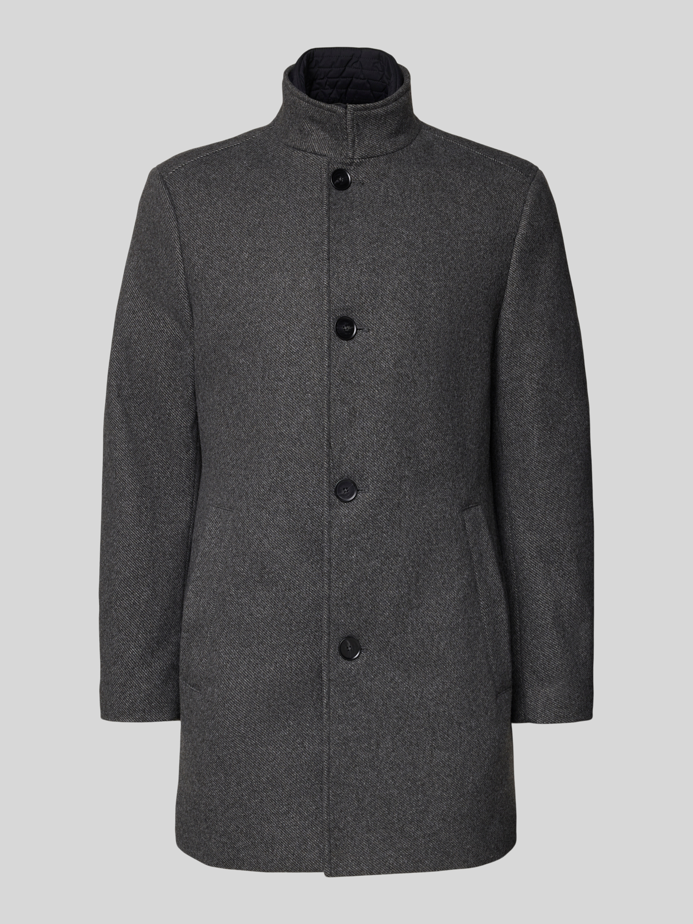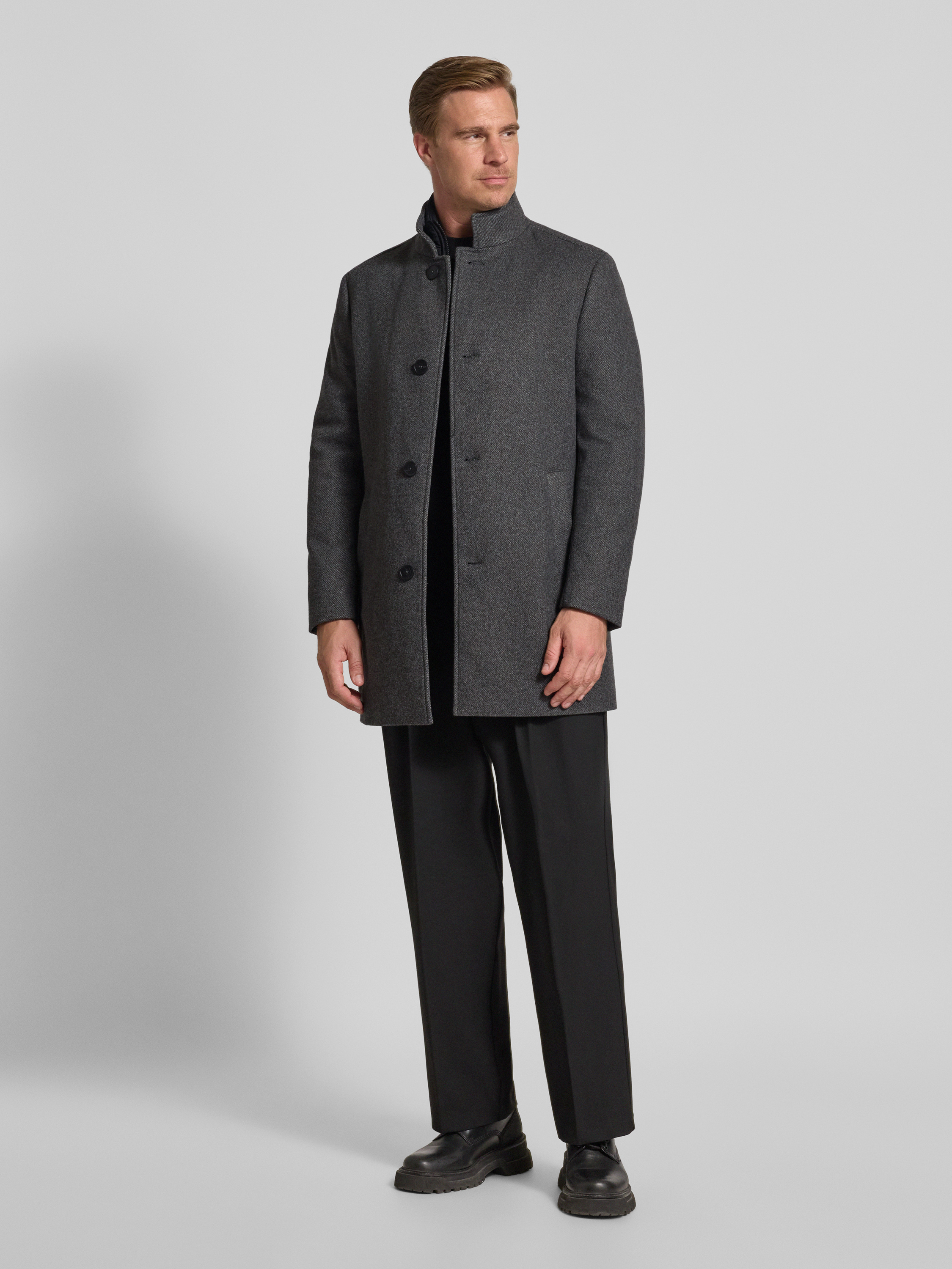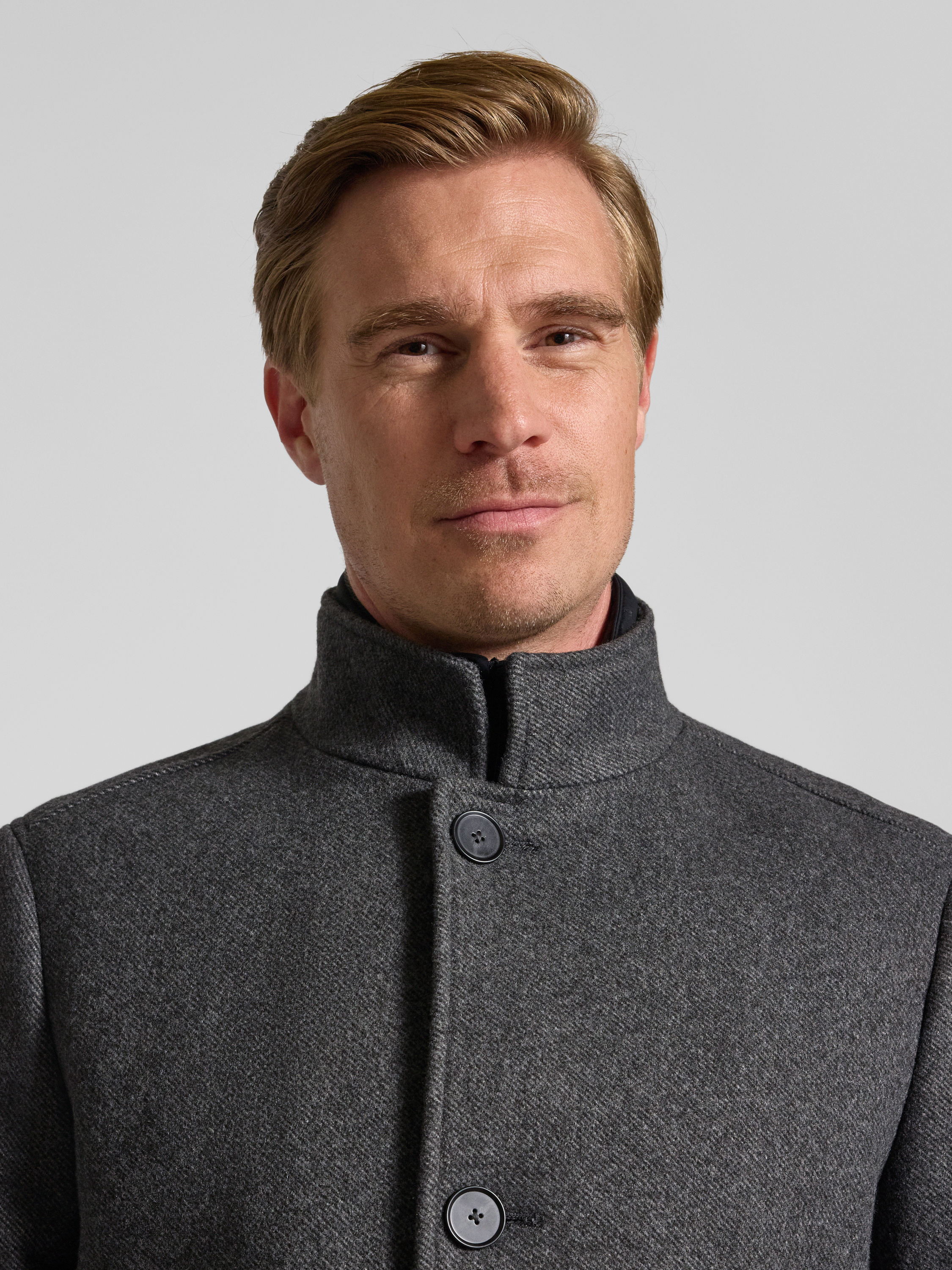 Lange jas met opstaande kraag en steekzakken in antraciet