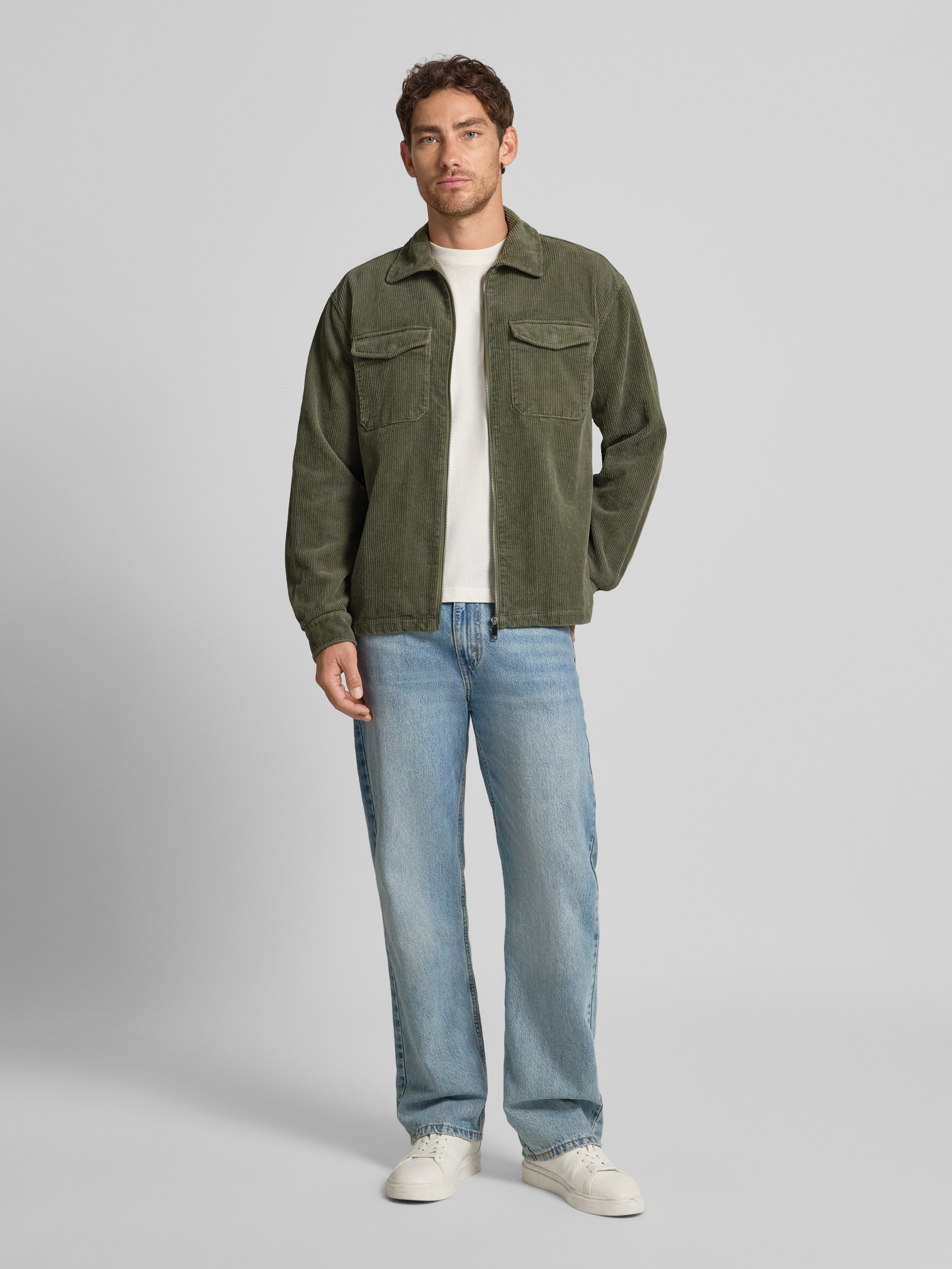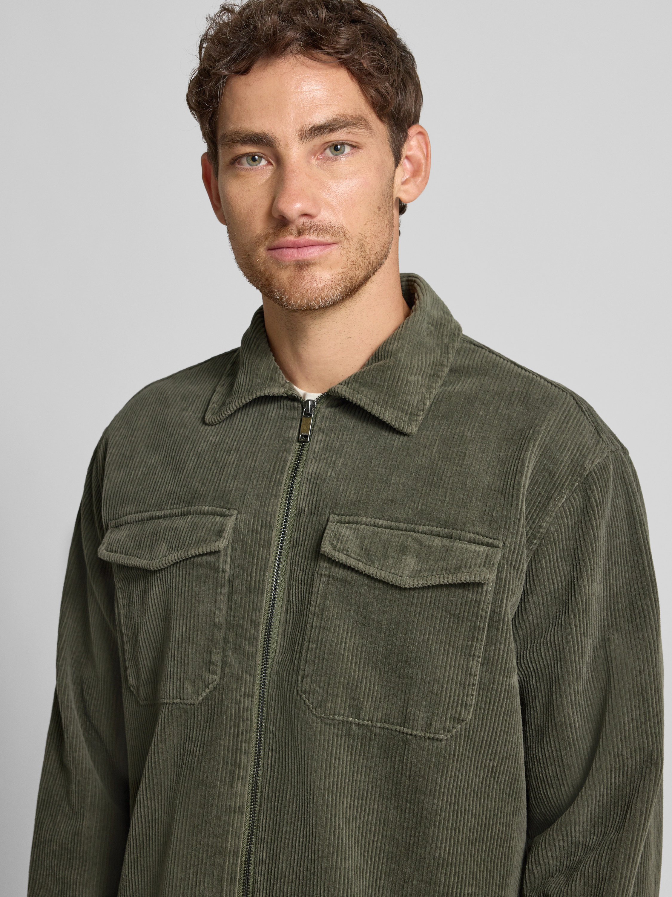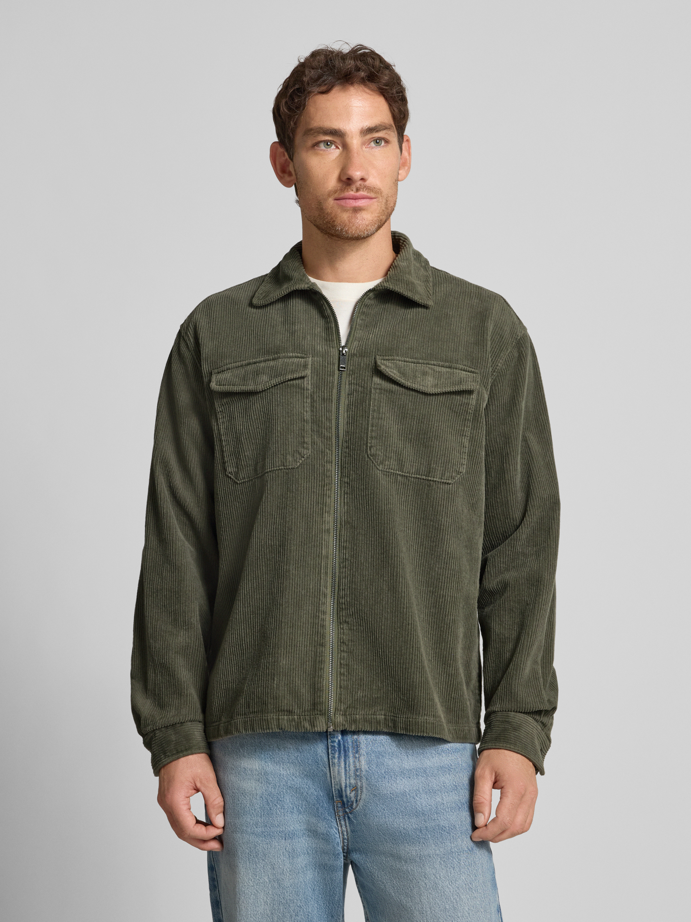 Overhemdjack met ritssluiting in olijfgroen