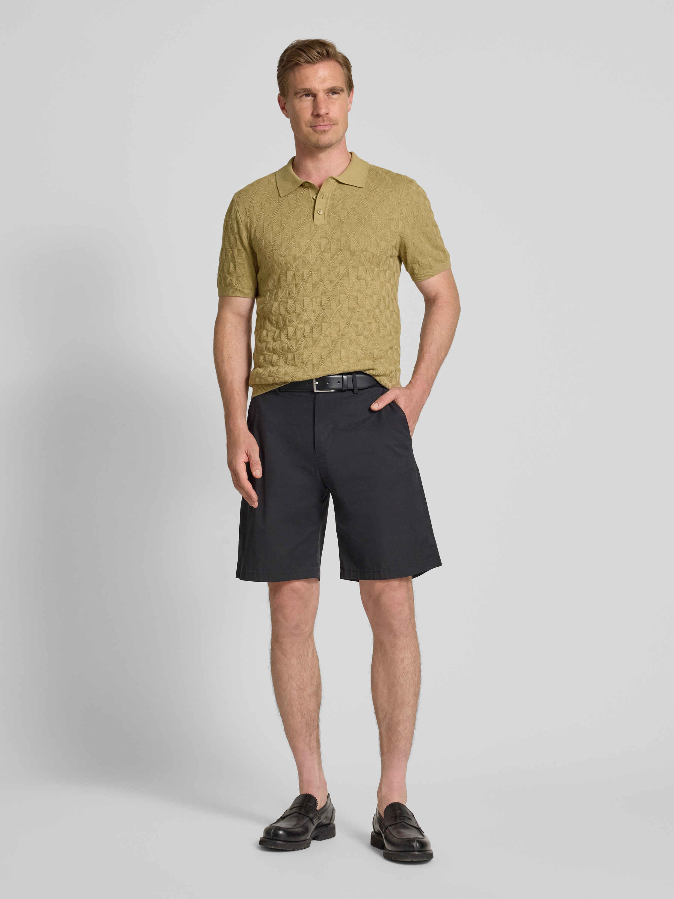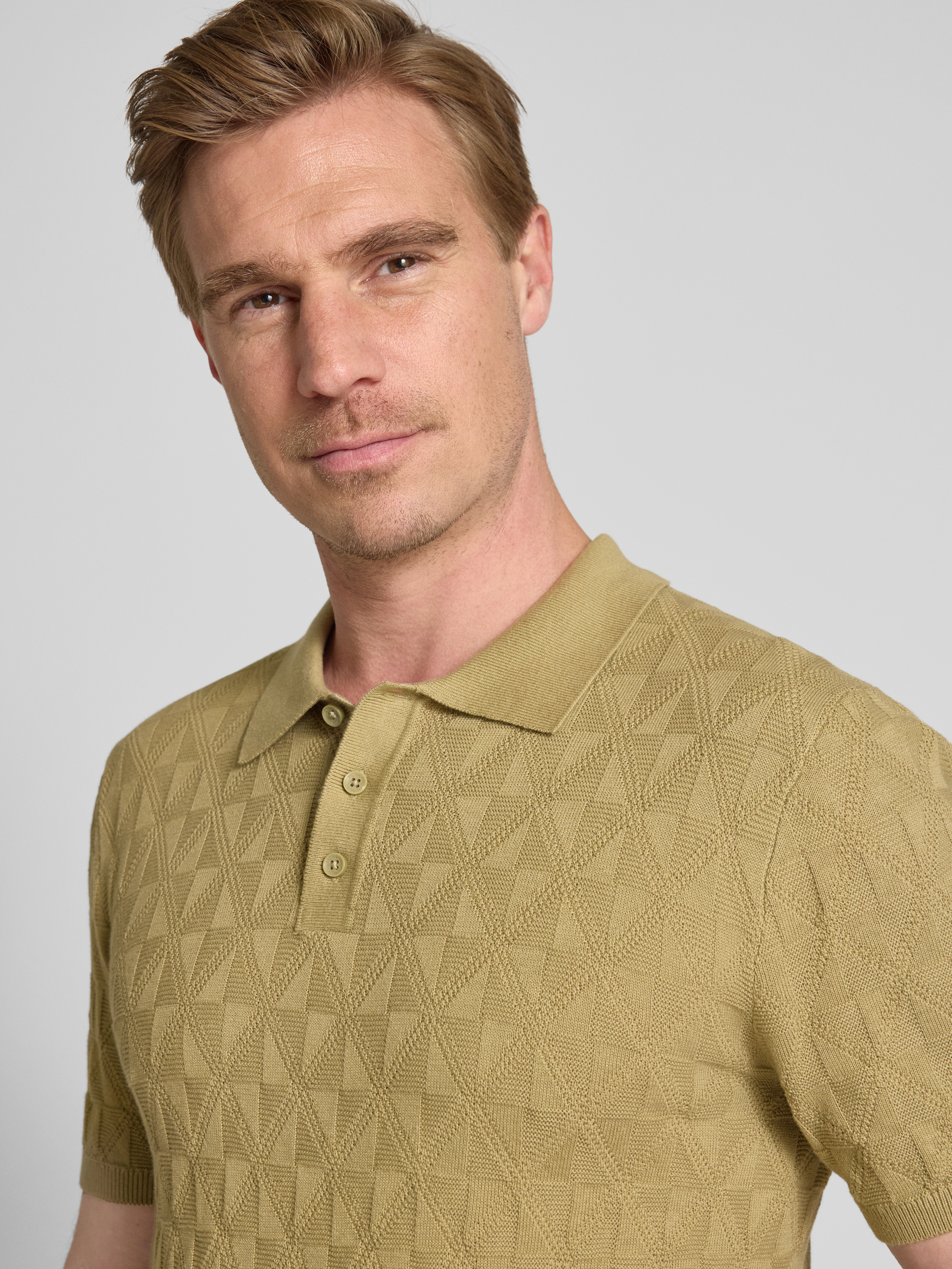 MCNEALRegular fit gebreide polo met knoopsluiting in rietgroen