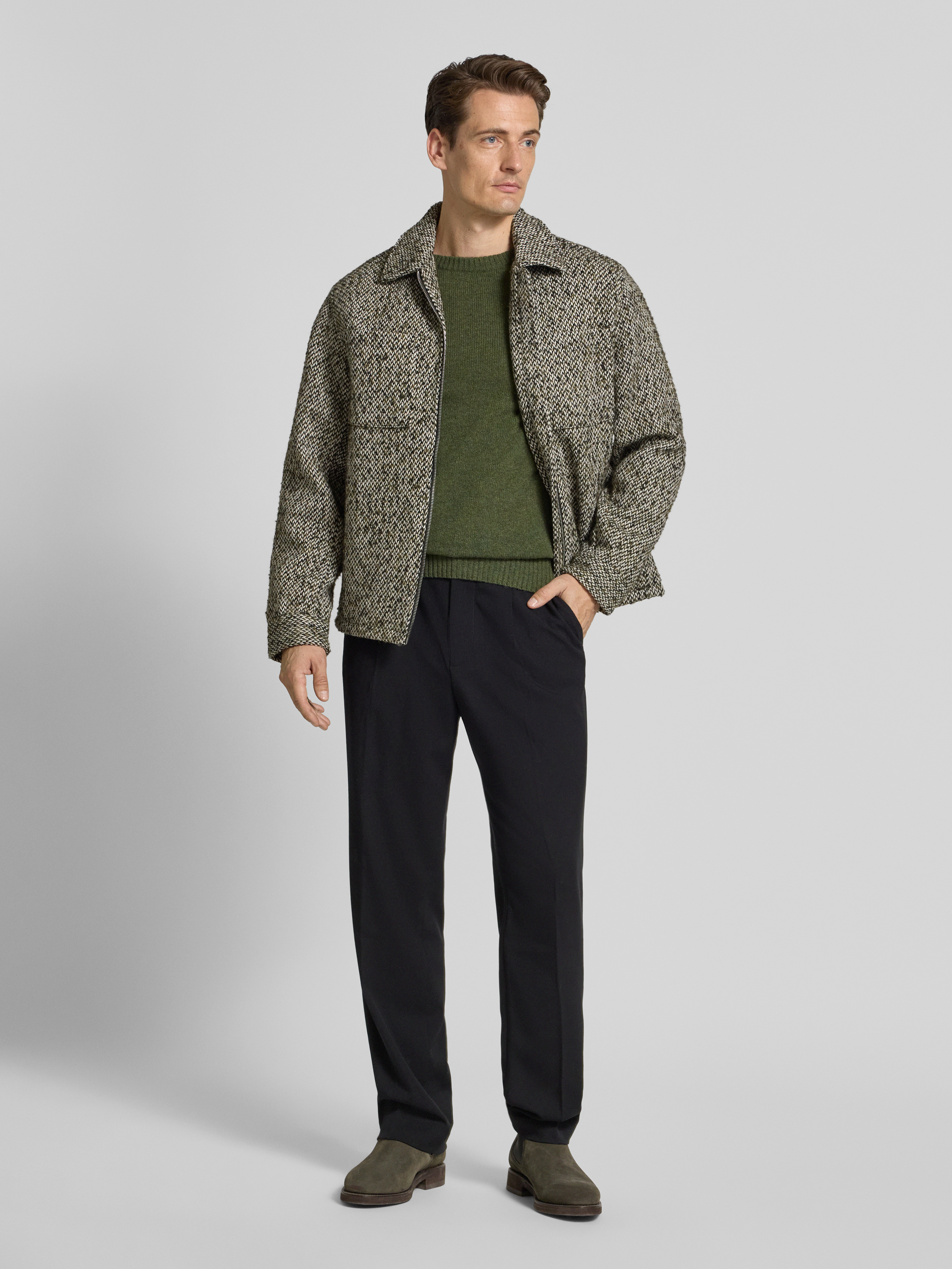 MCNEALRegular fit gebreide pullover van pure wol in donkergroen gemêleerd