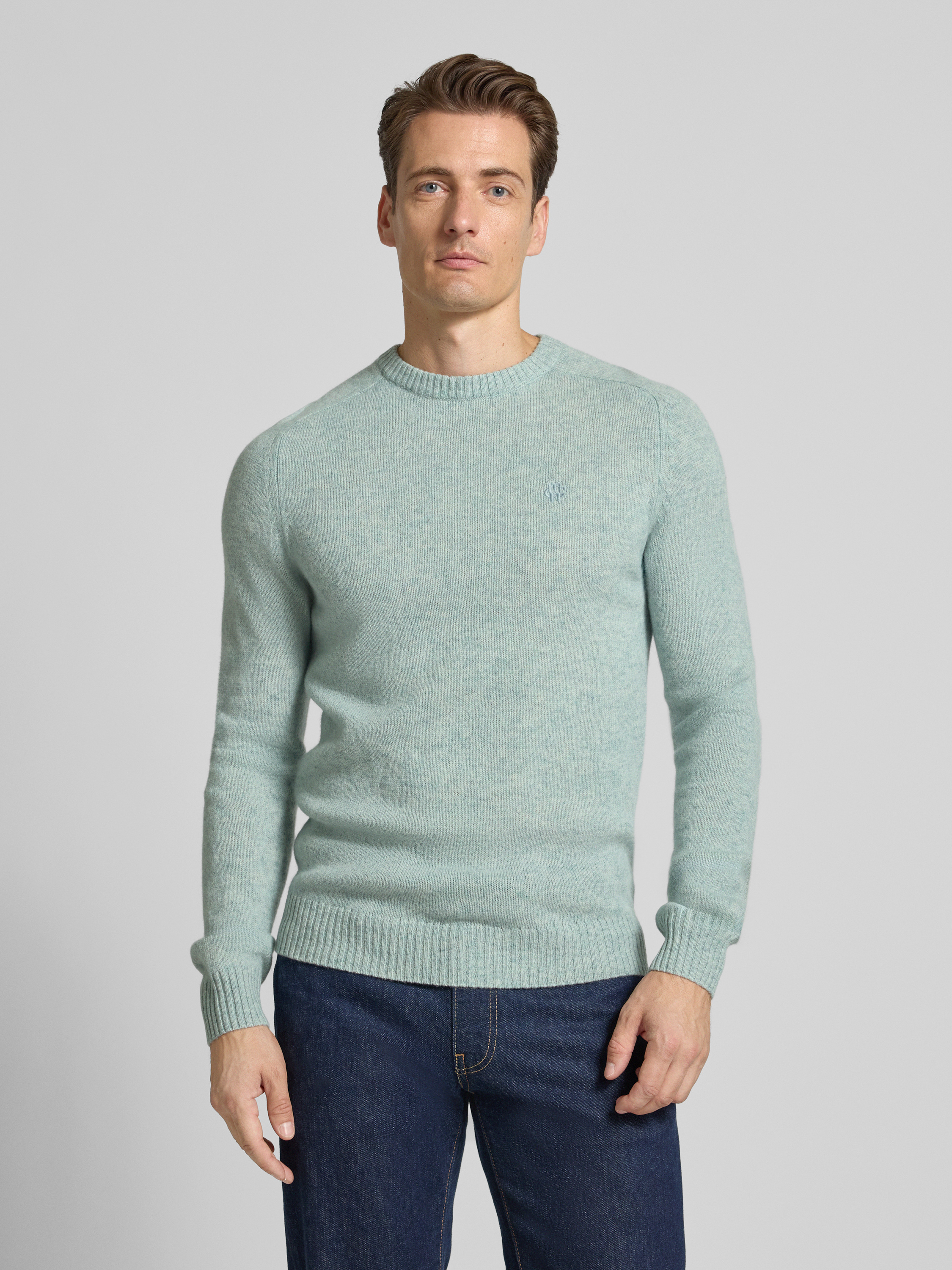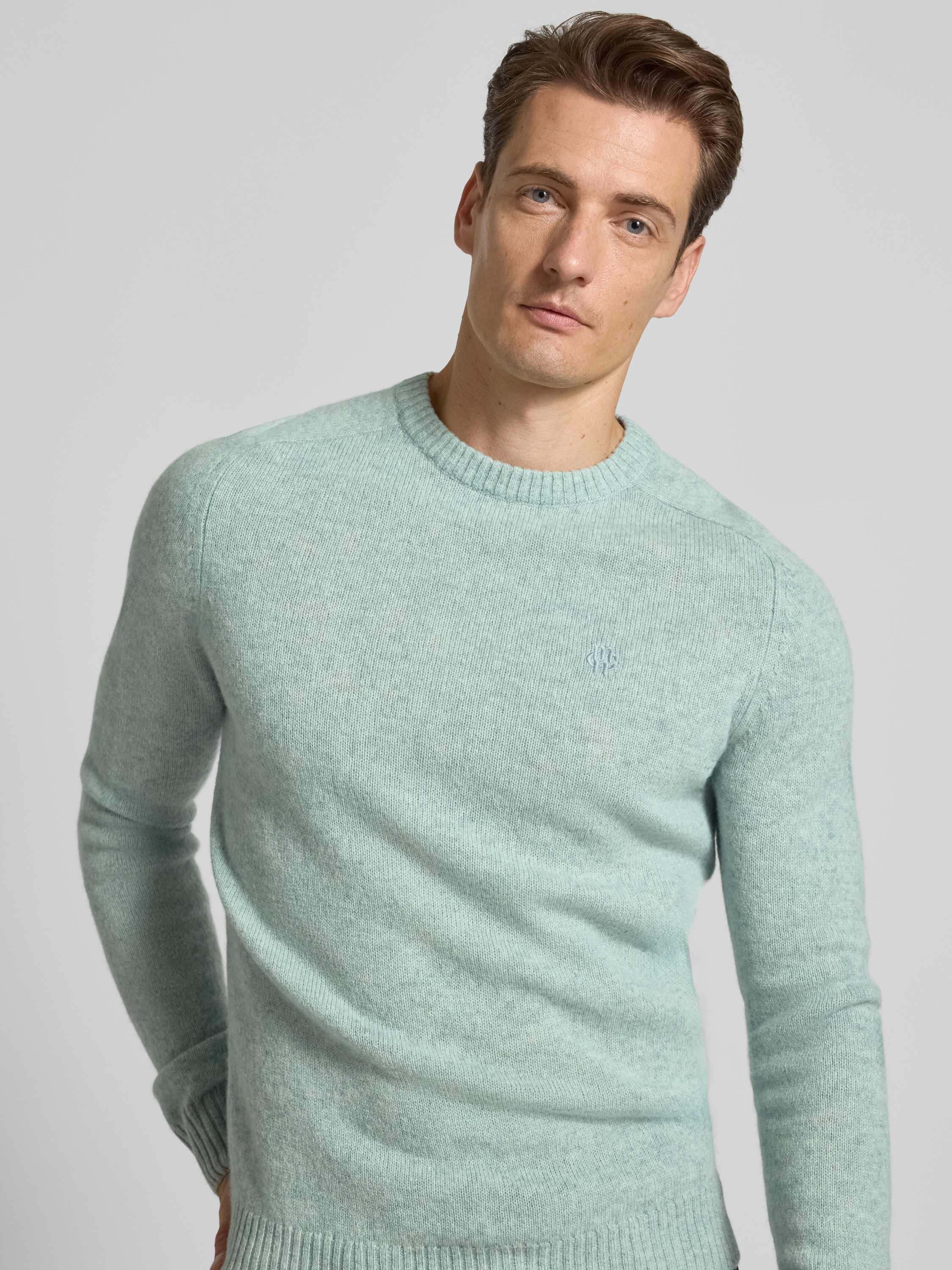 MCNEALRegular fit gebreide pullover van pure wol in lichtturquoise gemêleerd