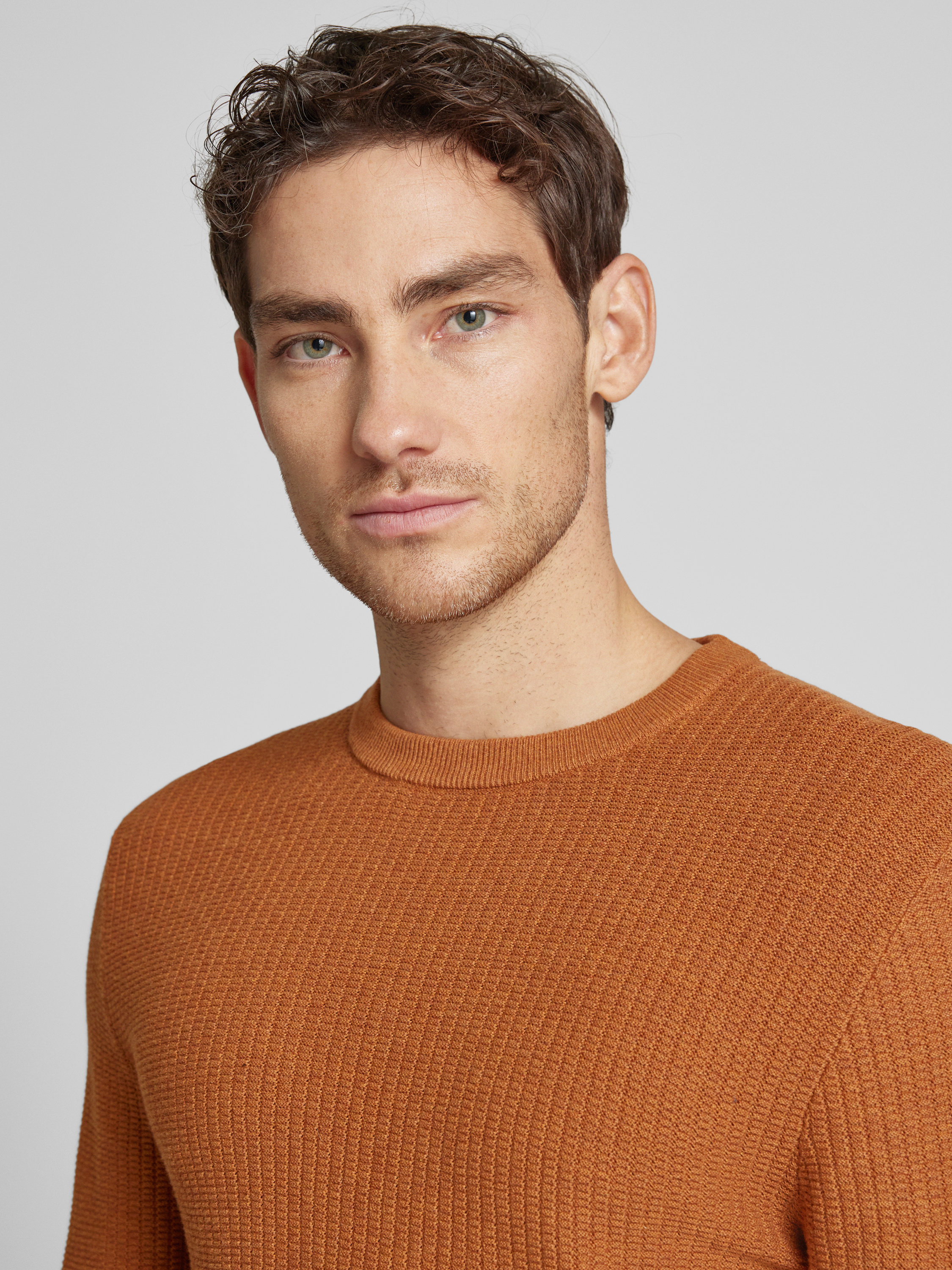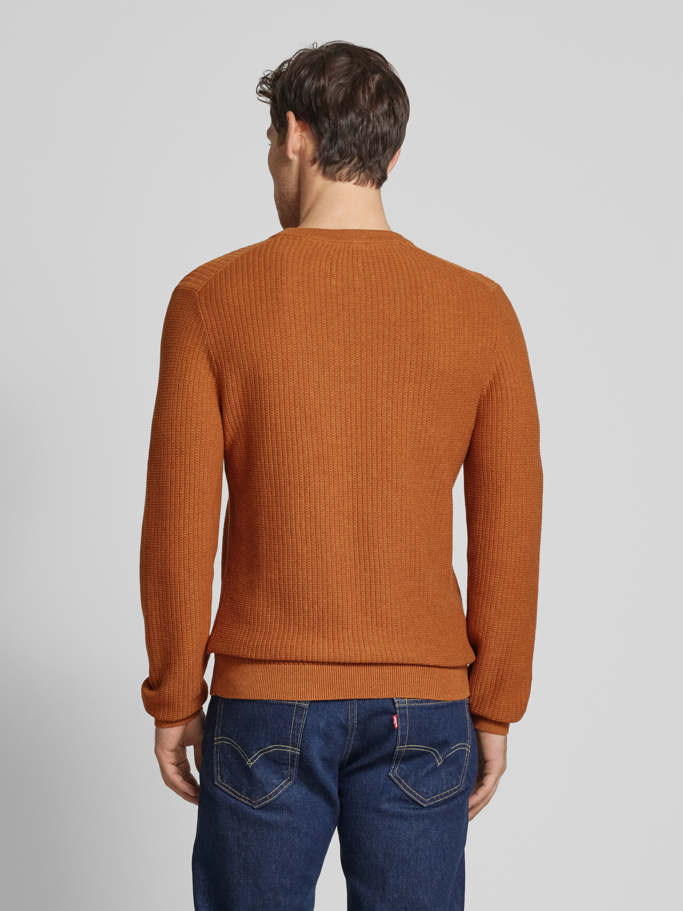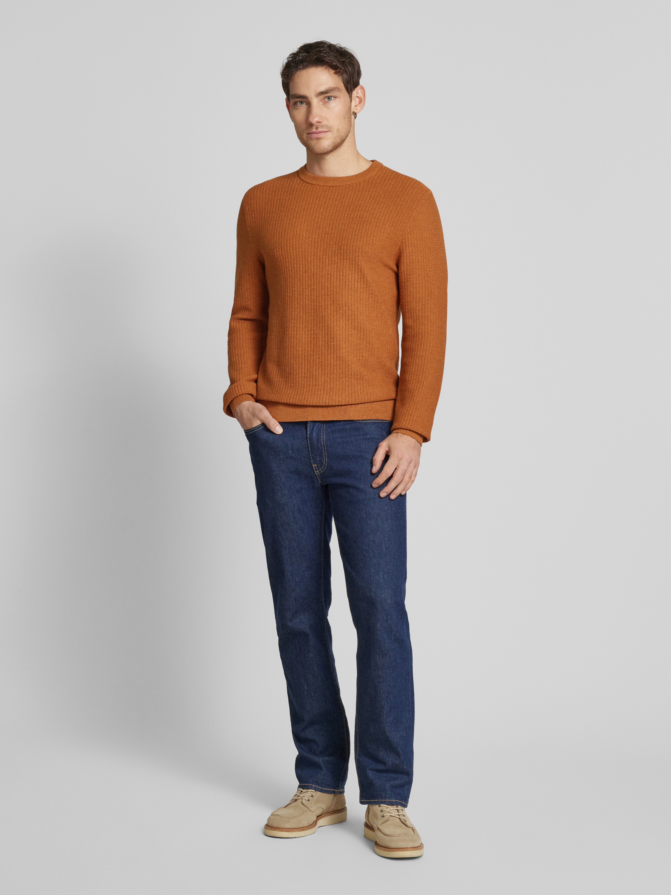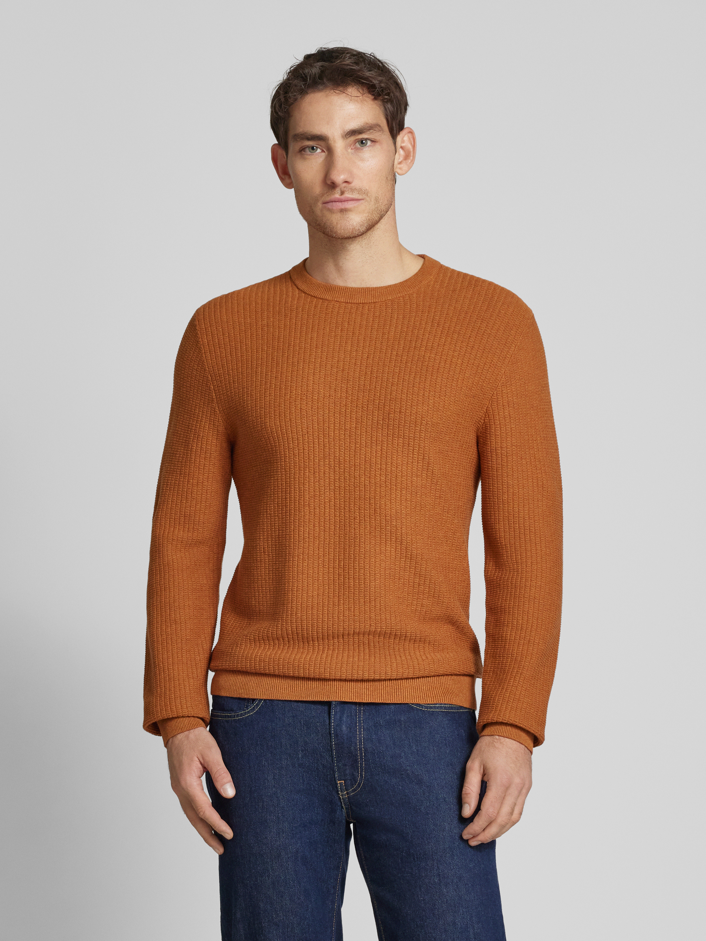 MCNEALRegular fit gebreide pullover van zuiver katoen in cognac gemêleerd