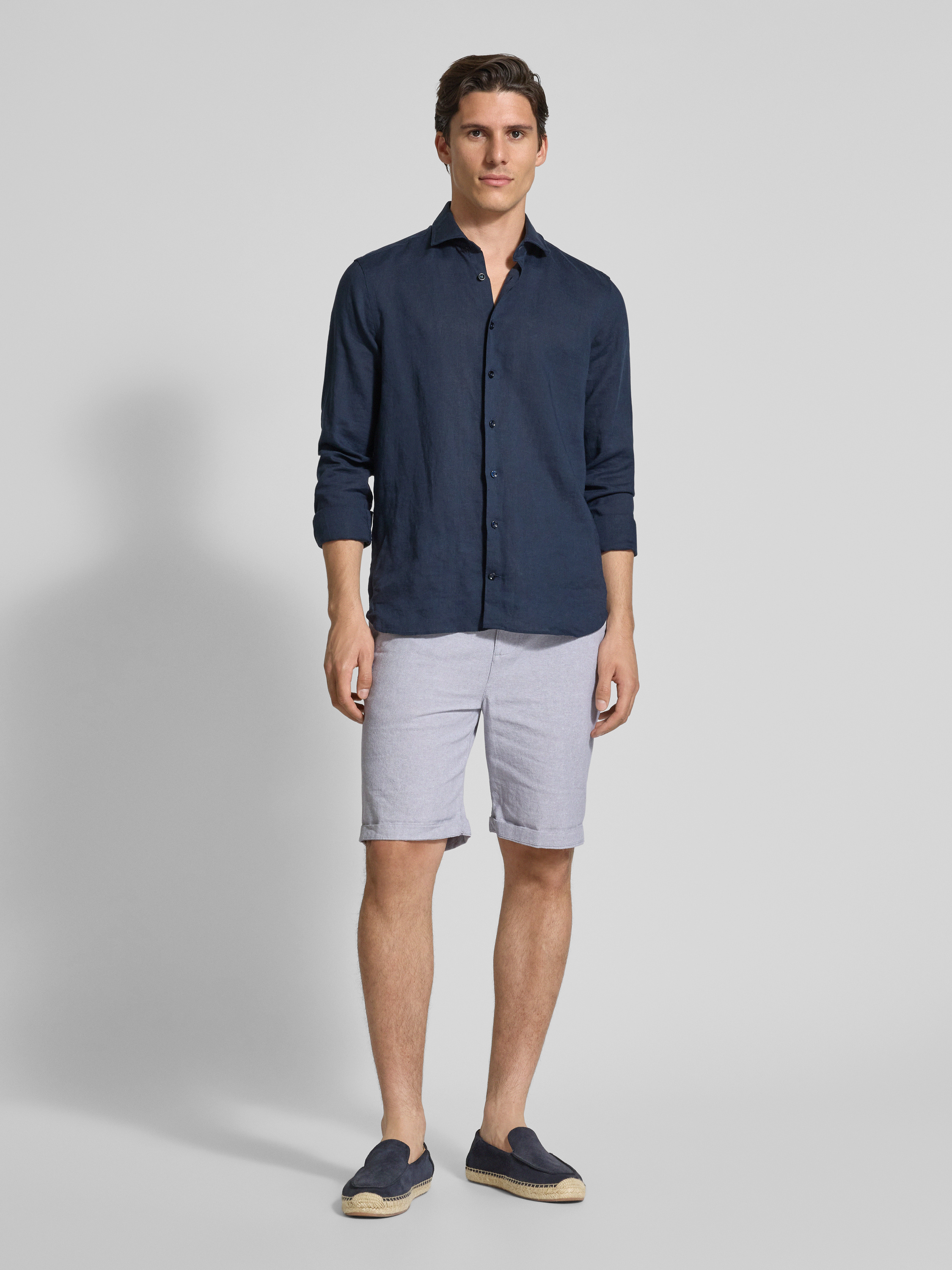 Regular fit korte linnen broek met tunnelkoord in middengrijs gemêleerd