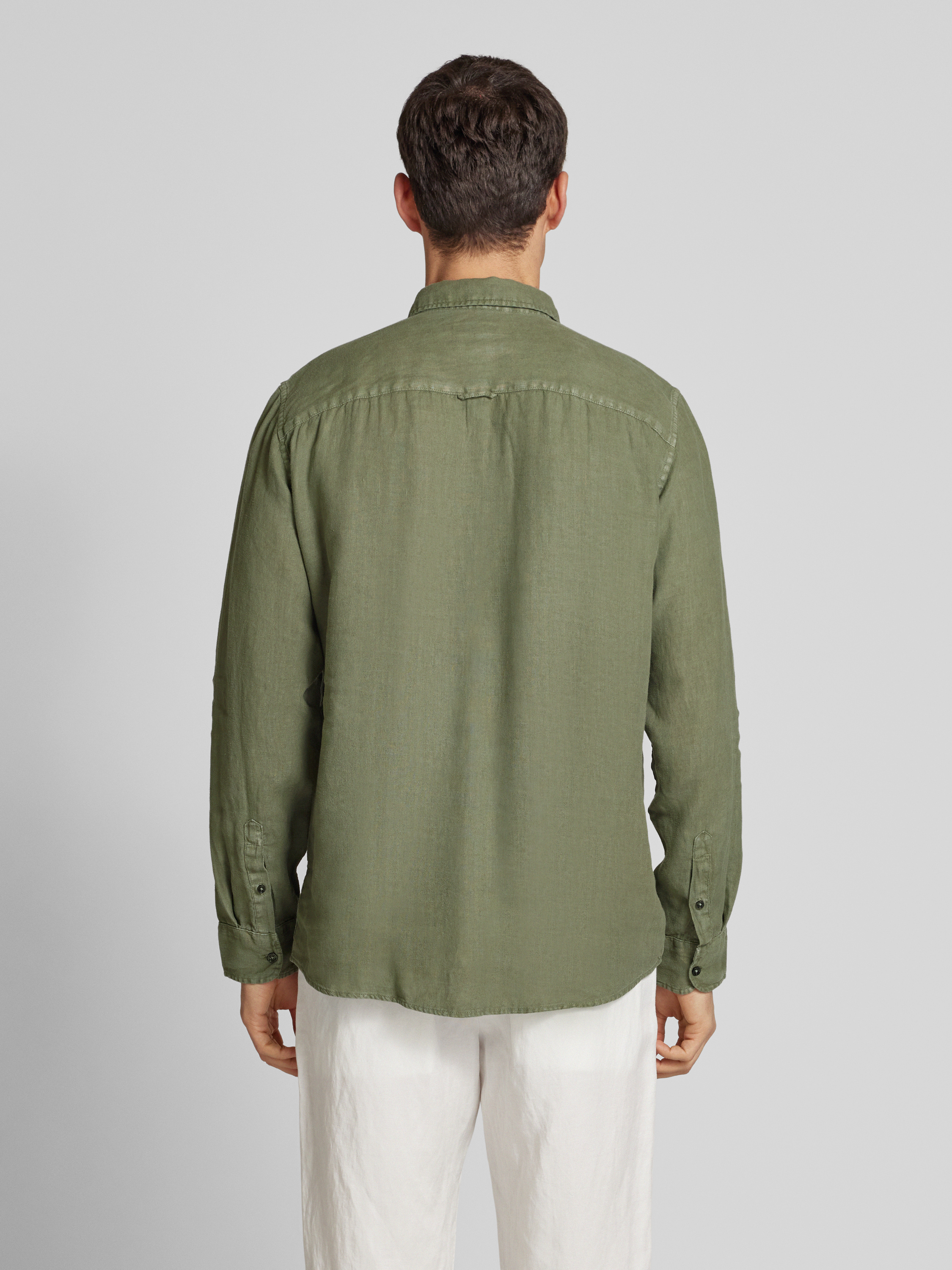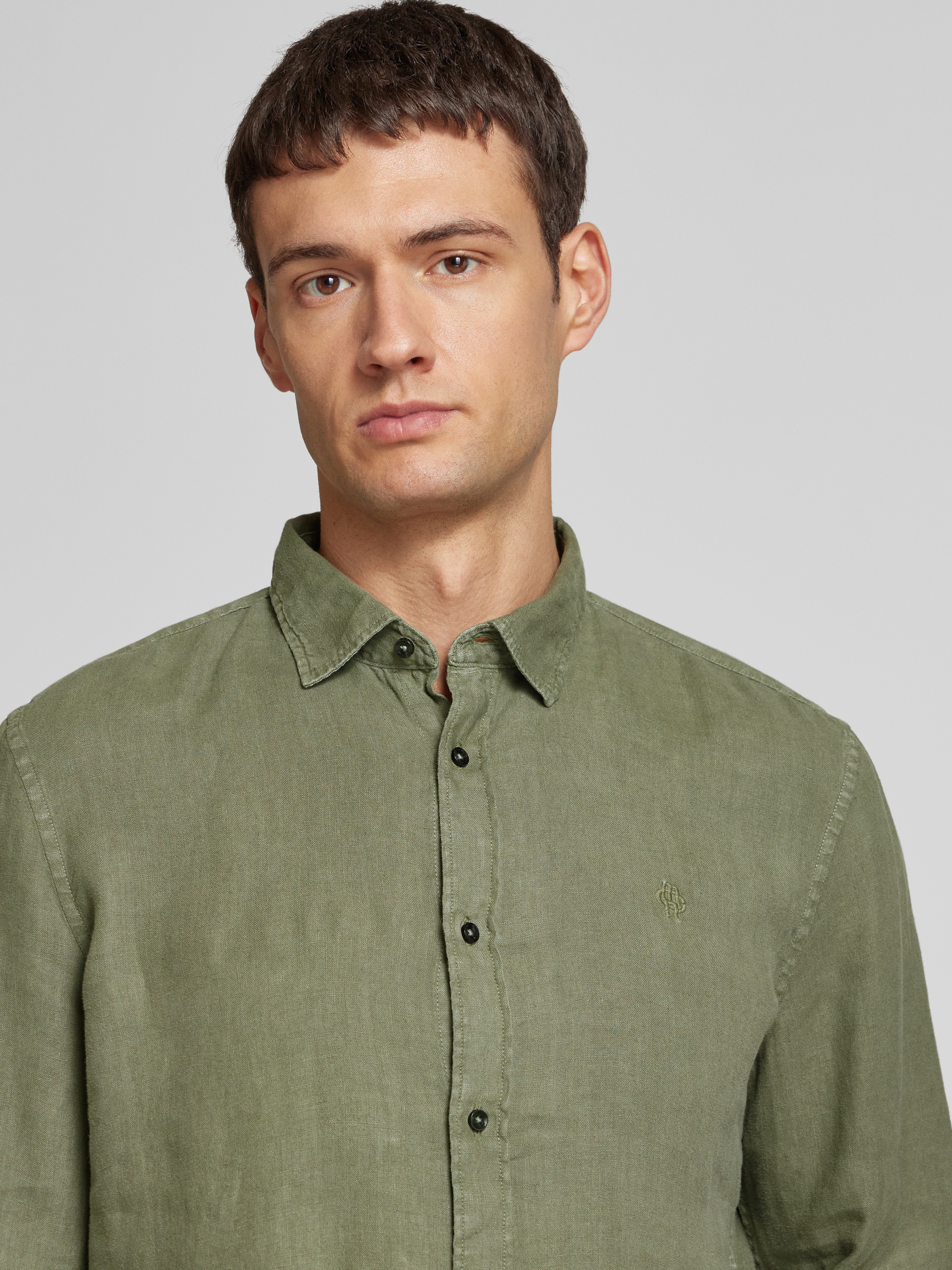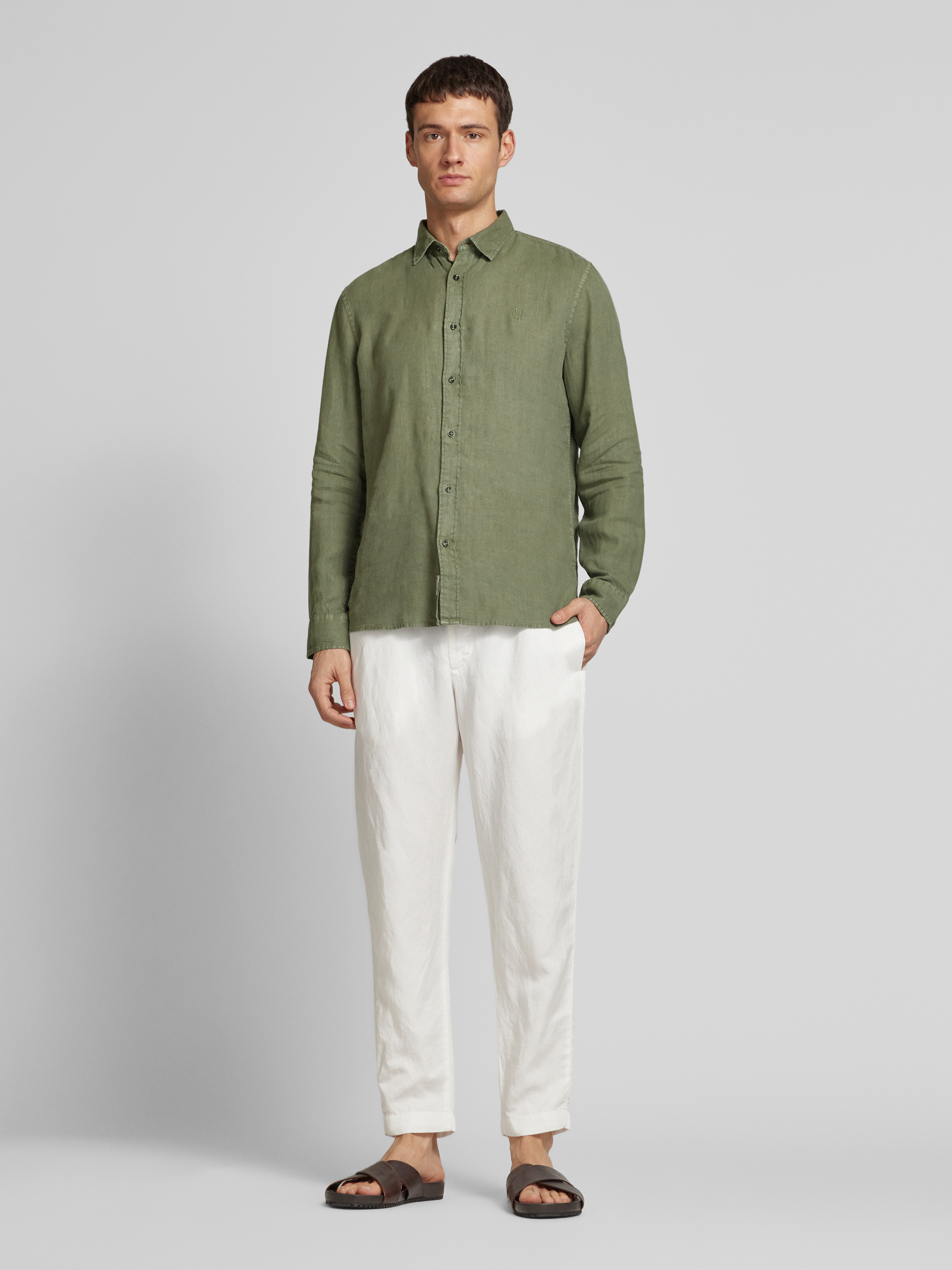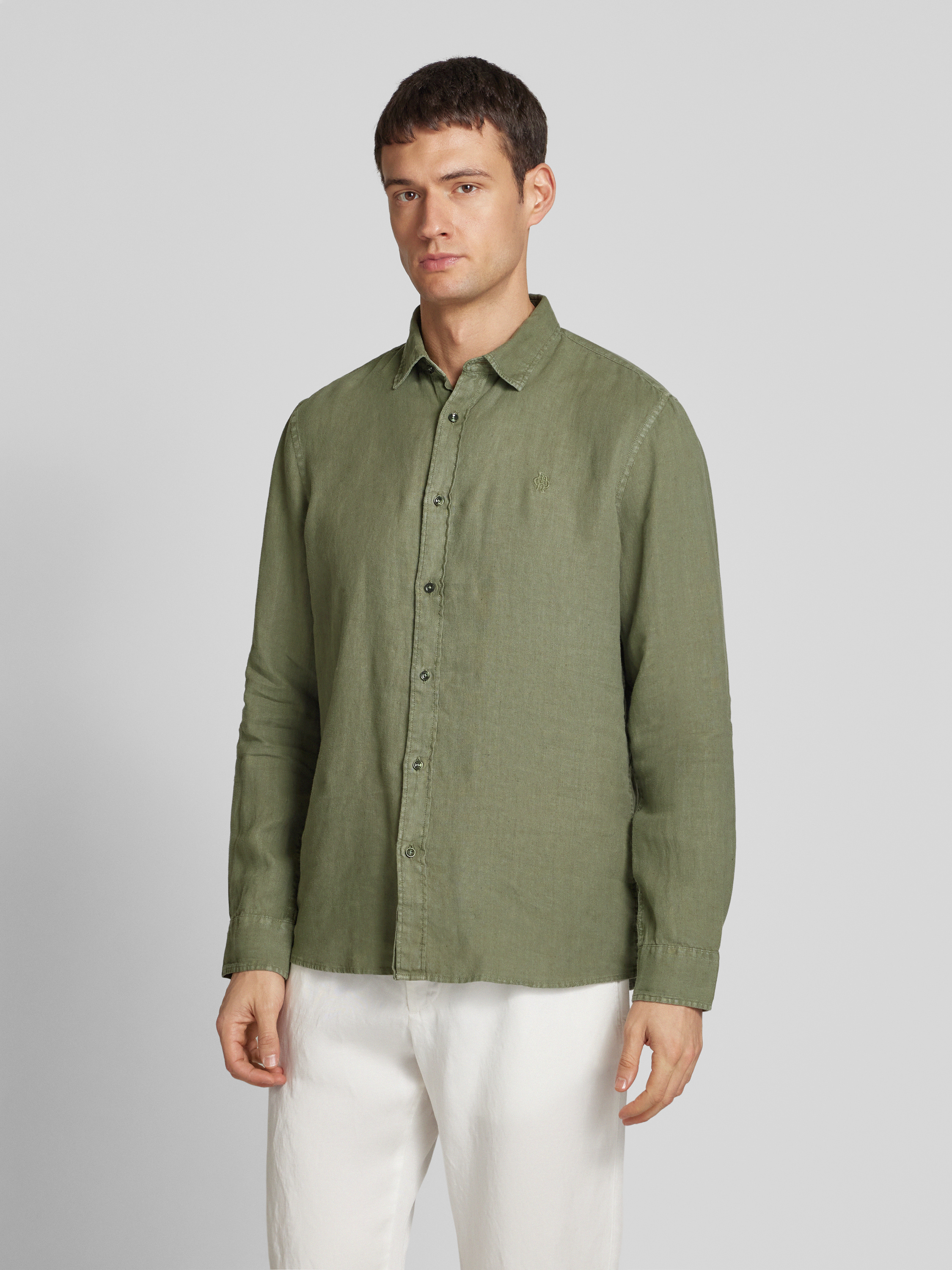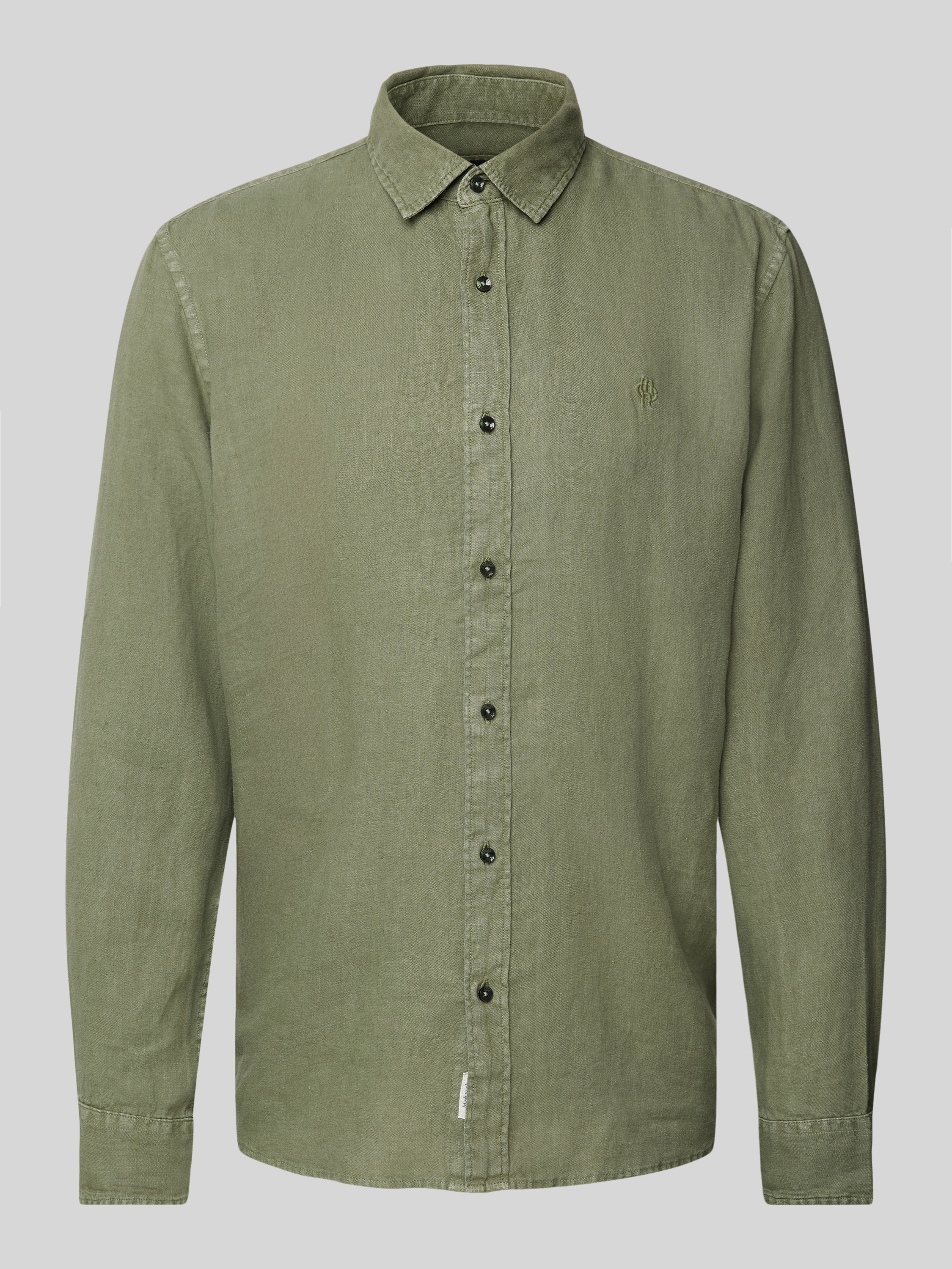 Regular fit vrijetijdsoverhemd van puur linnen met logostitching in kaki