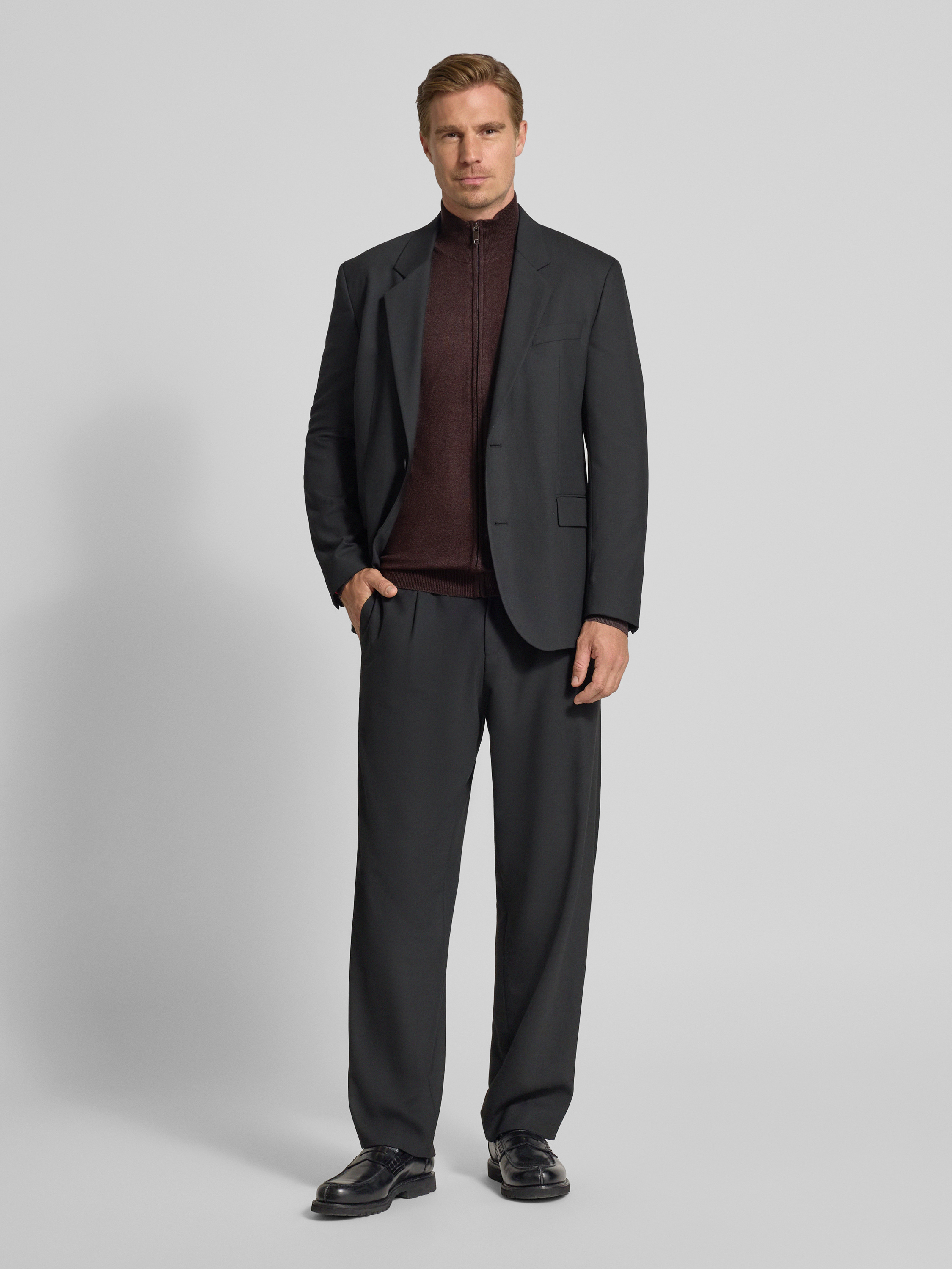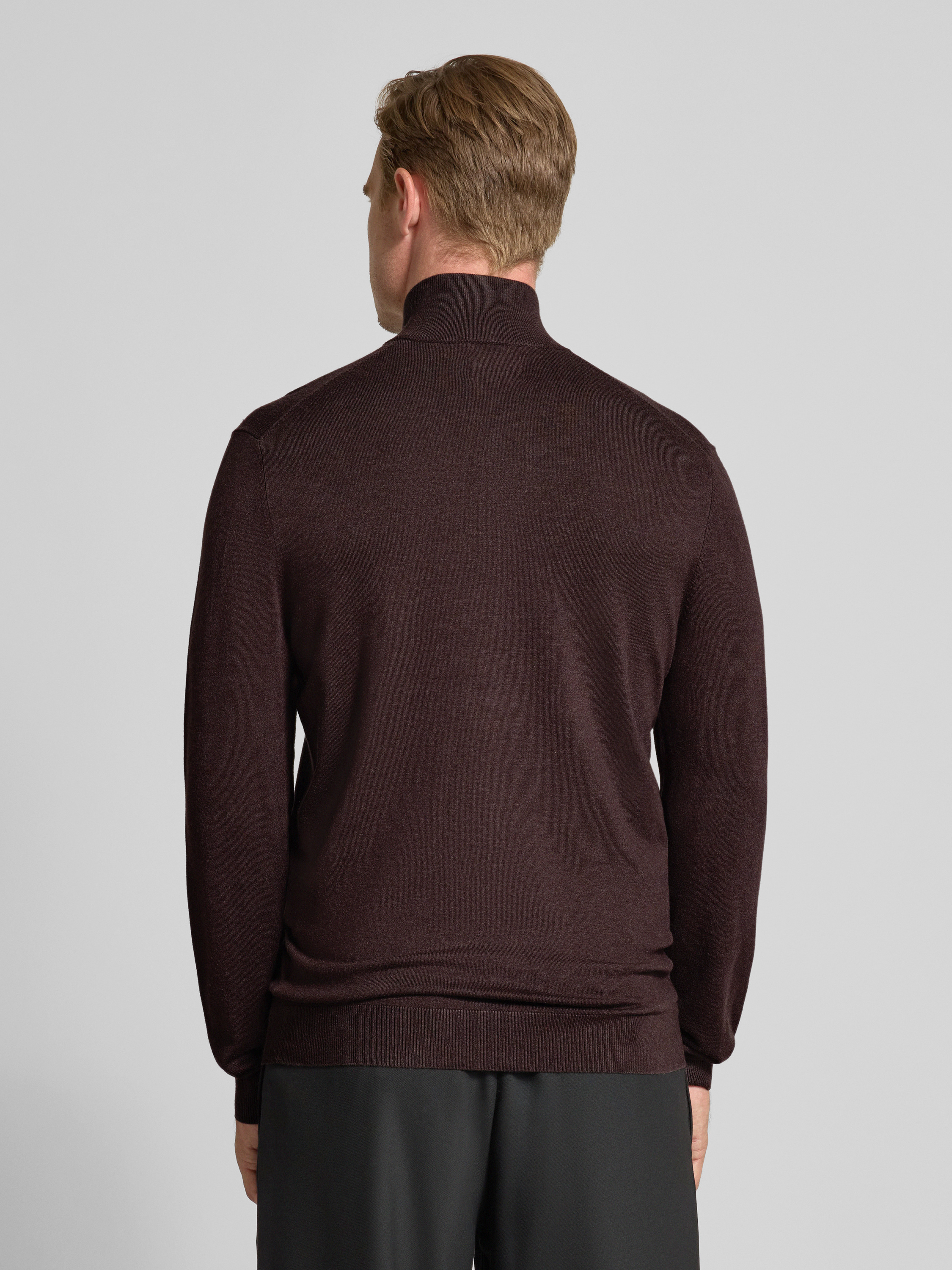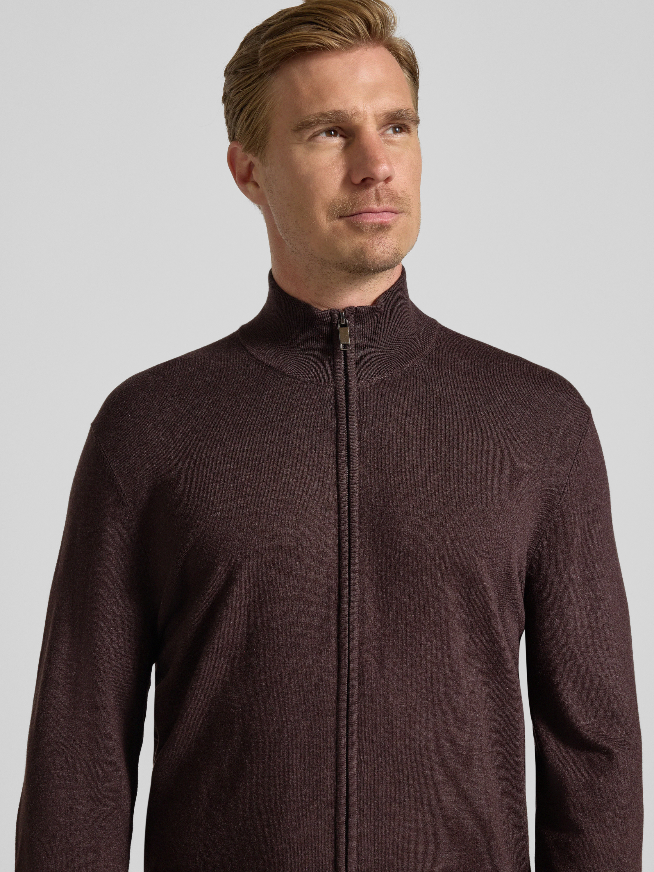 Slim fit gebreid jack van viscosemix met ritssluiting in chocoladebruin gemêleerd