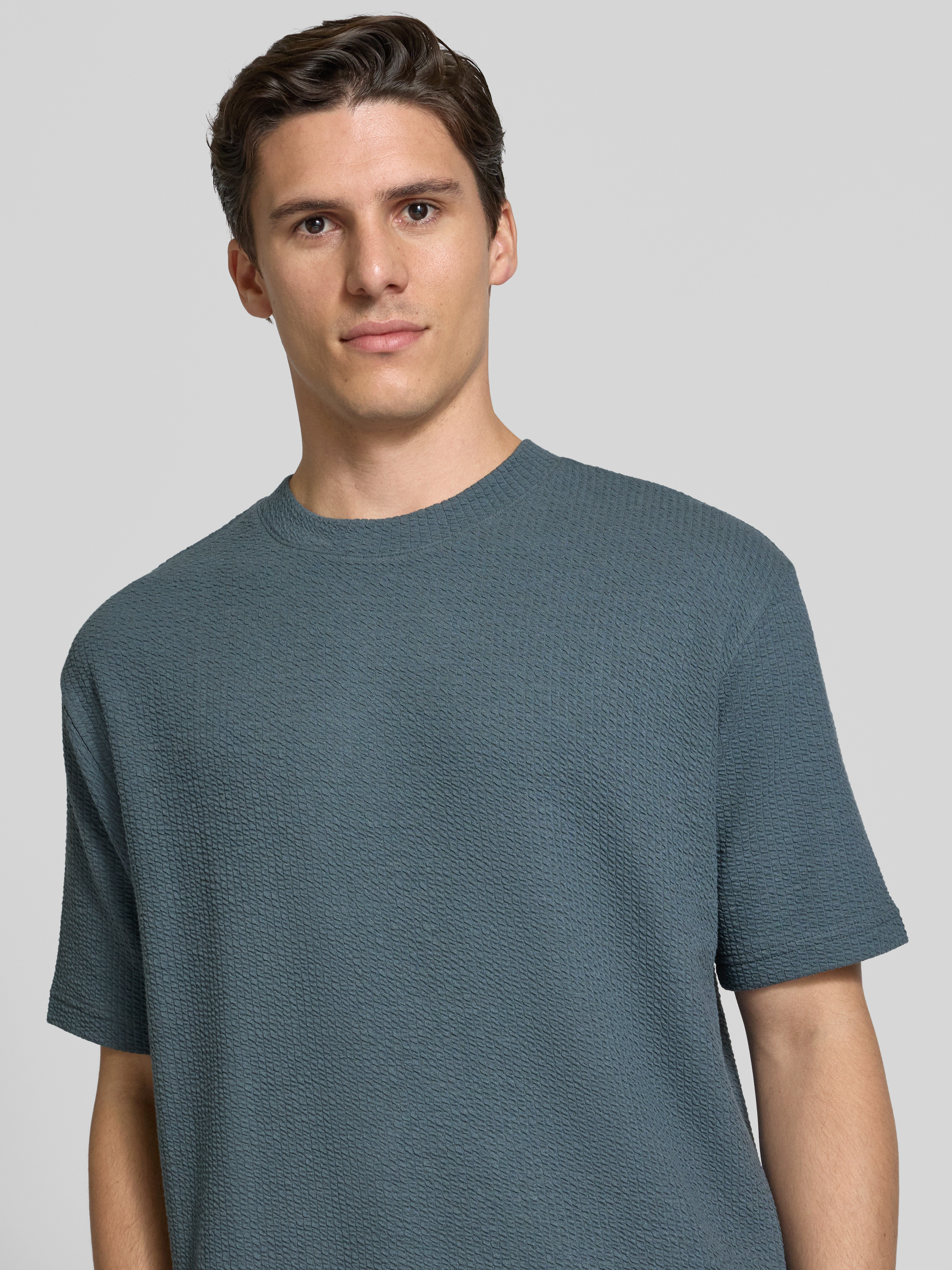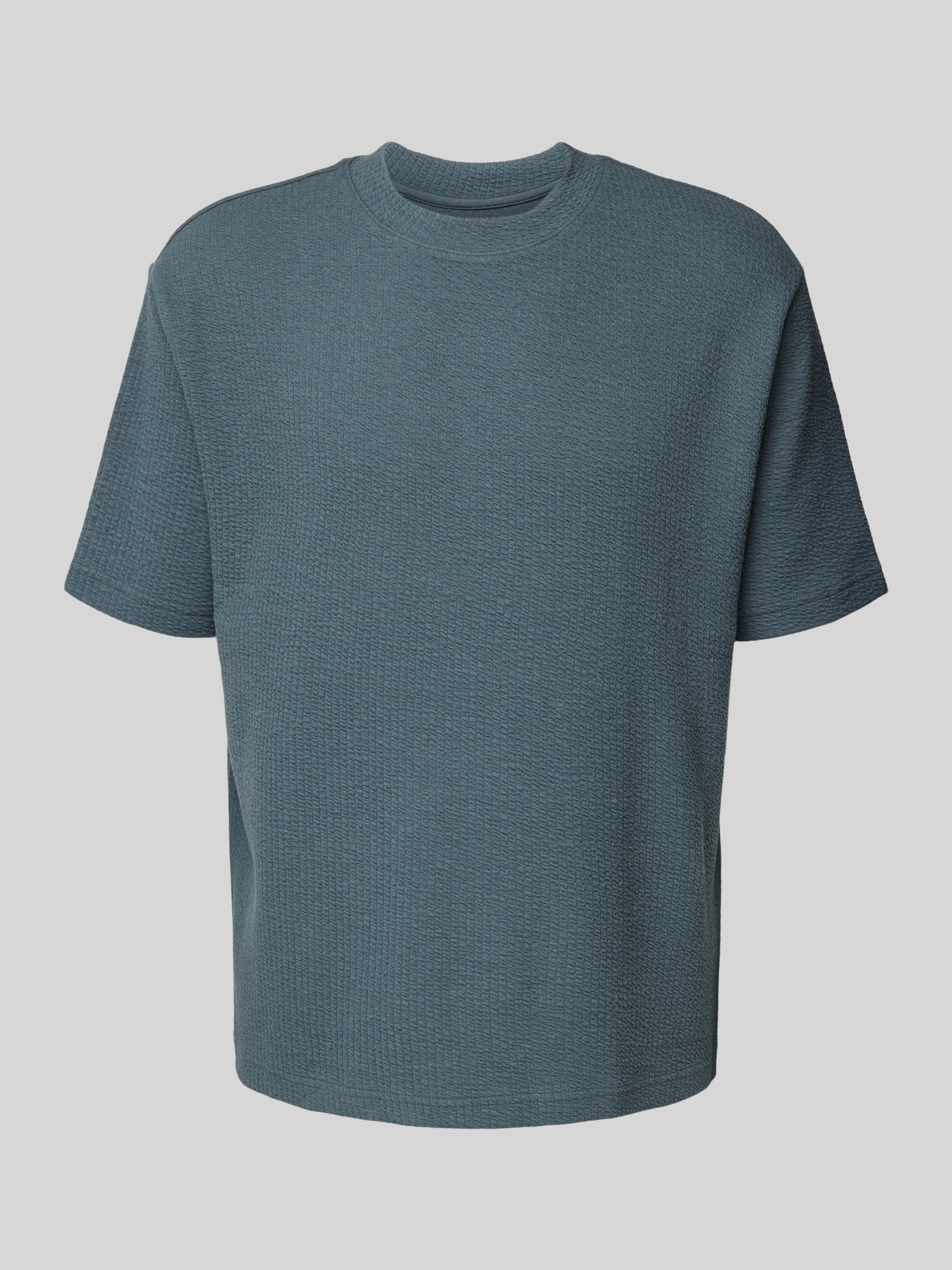 T-shirt met geribde ronde hals in petrol