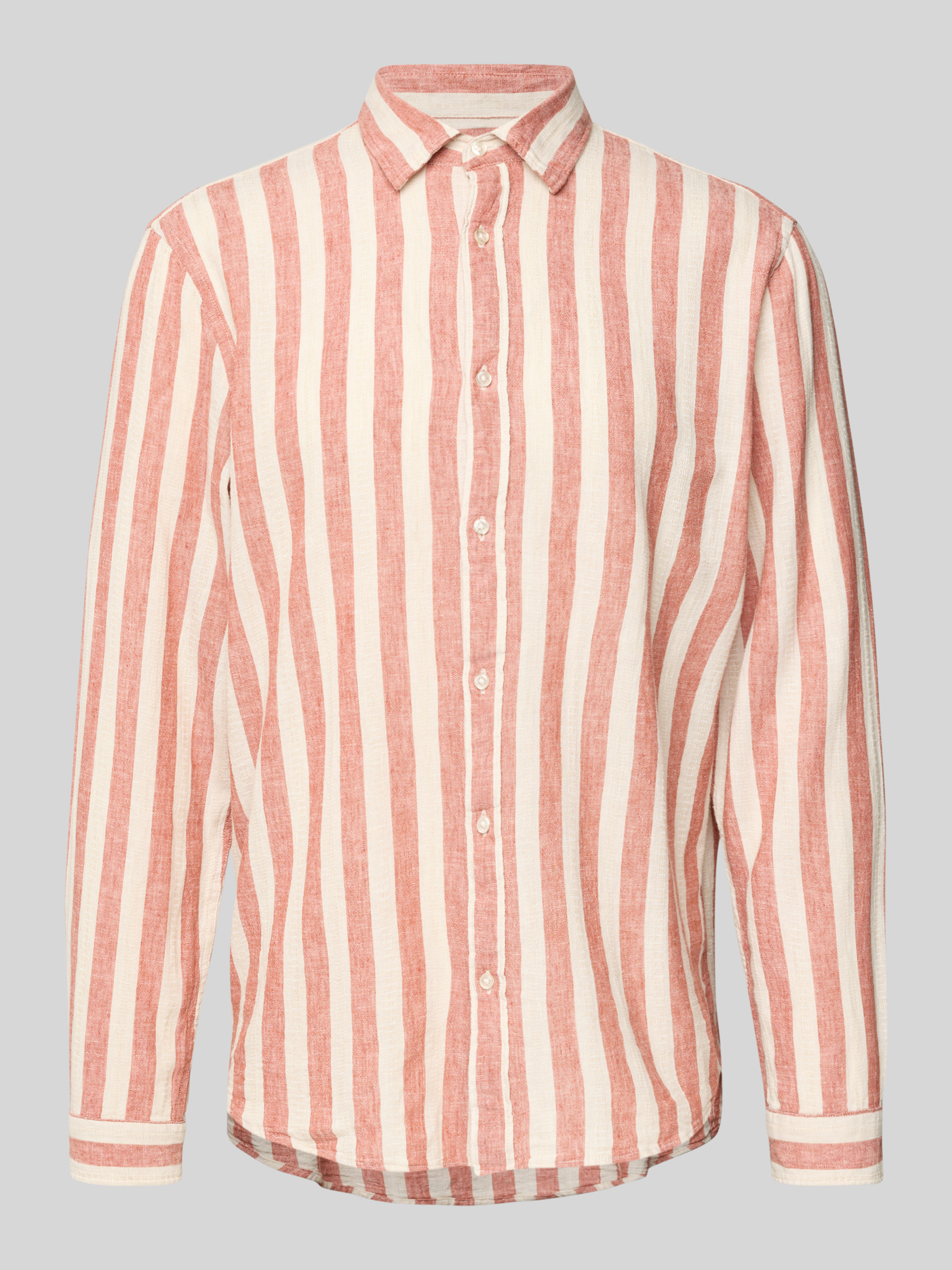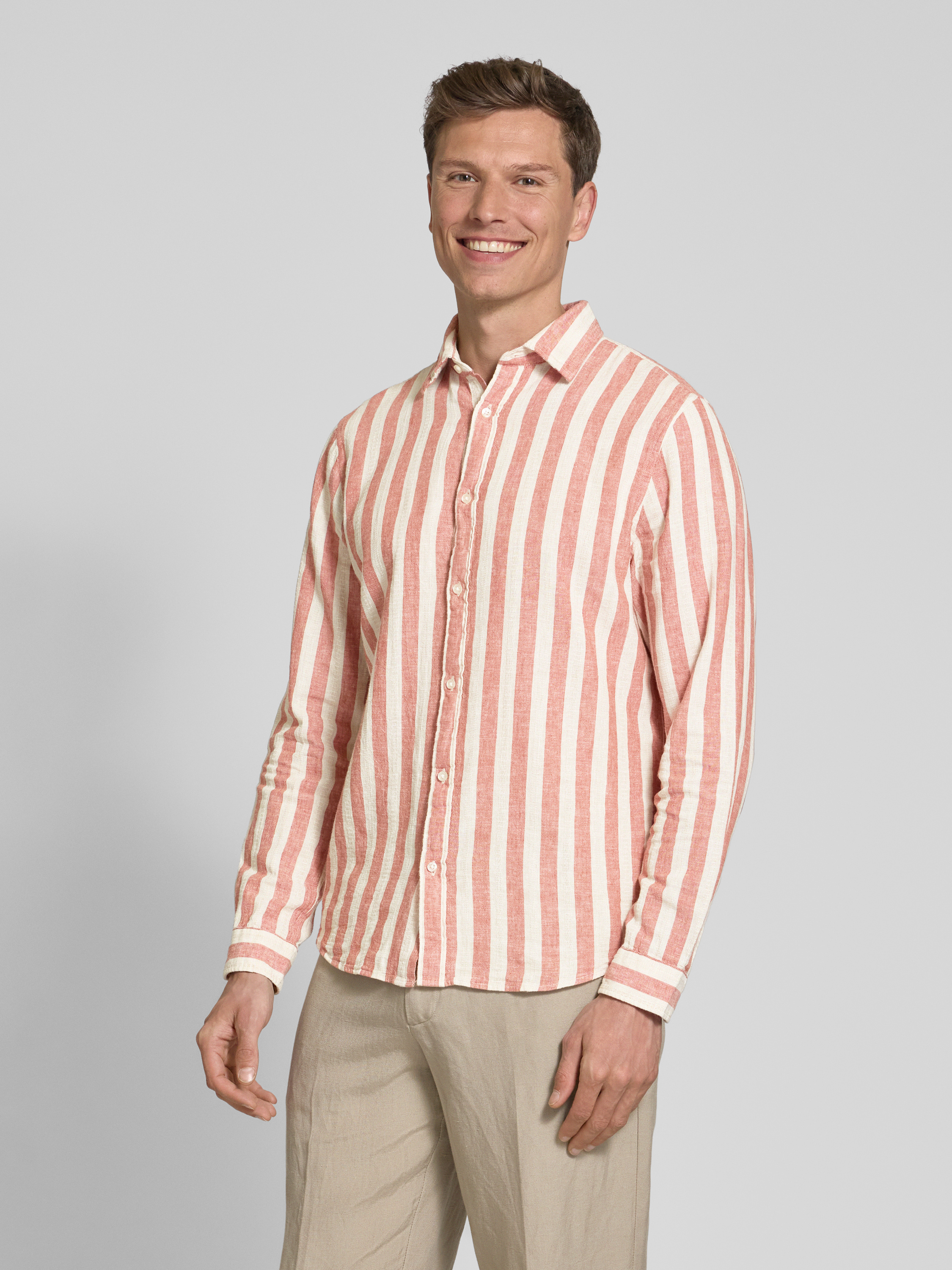 Tailored fit linnen overhemd met kentkraag in terracotta