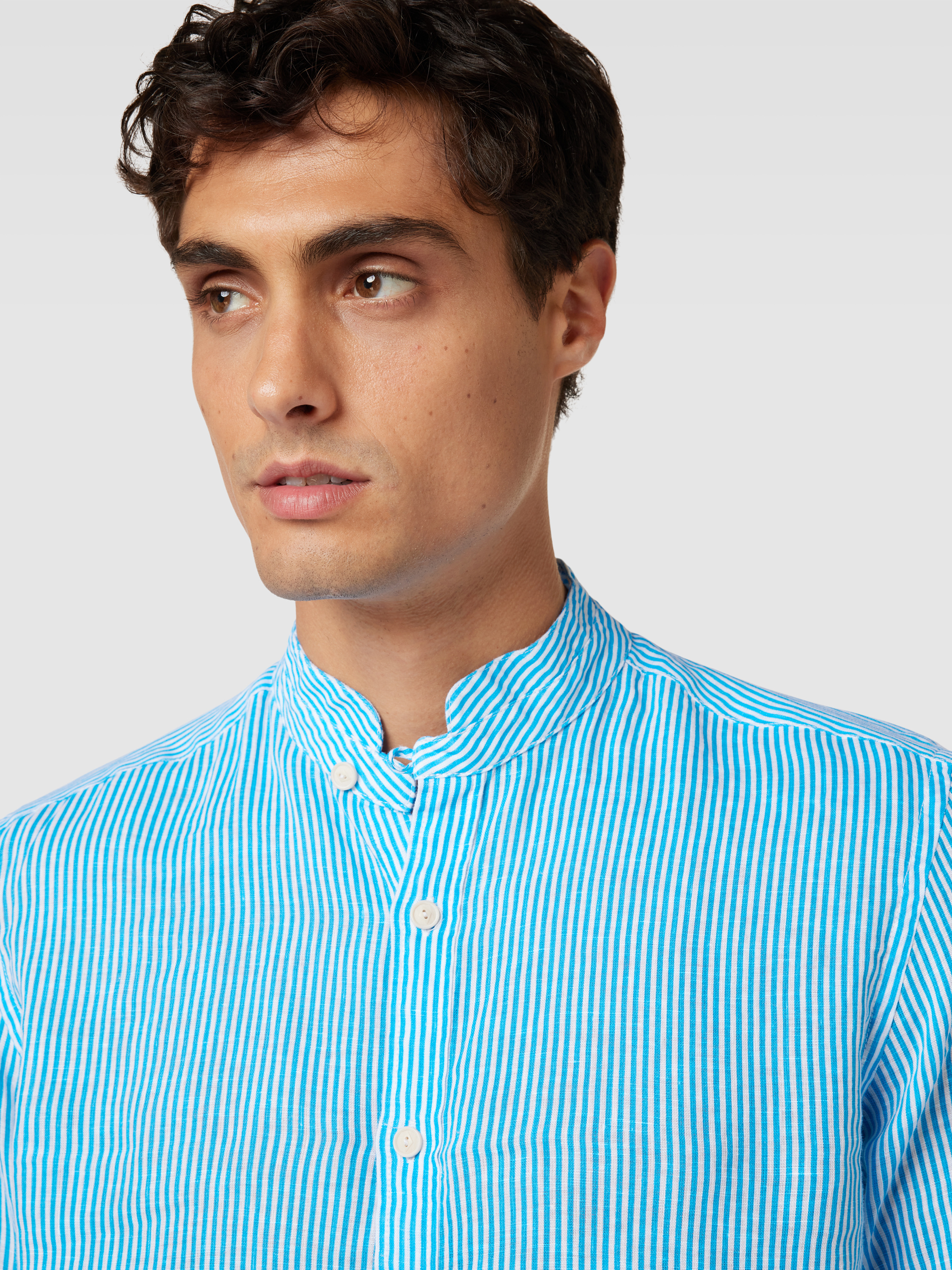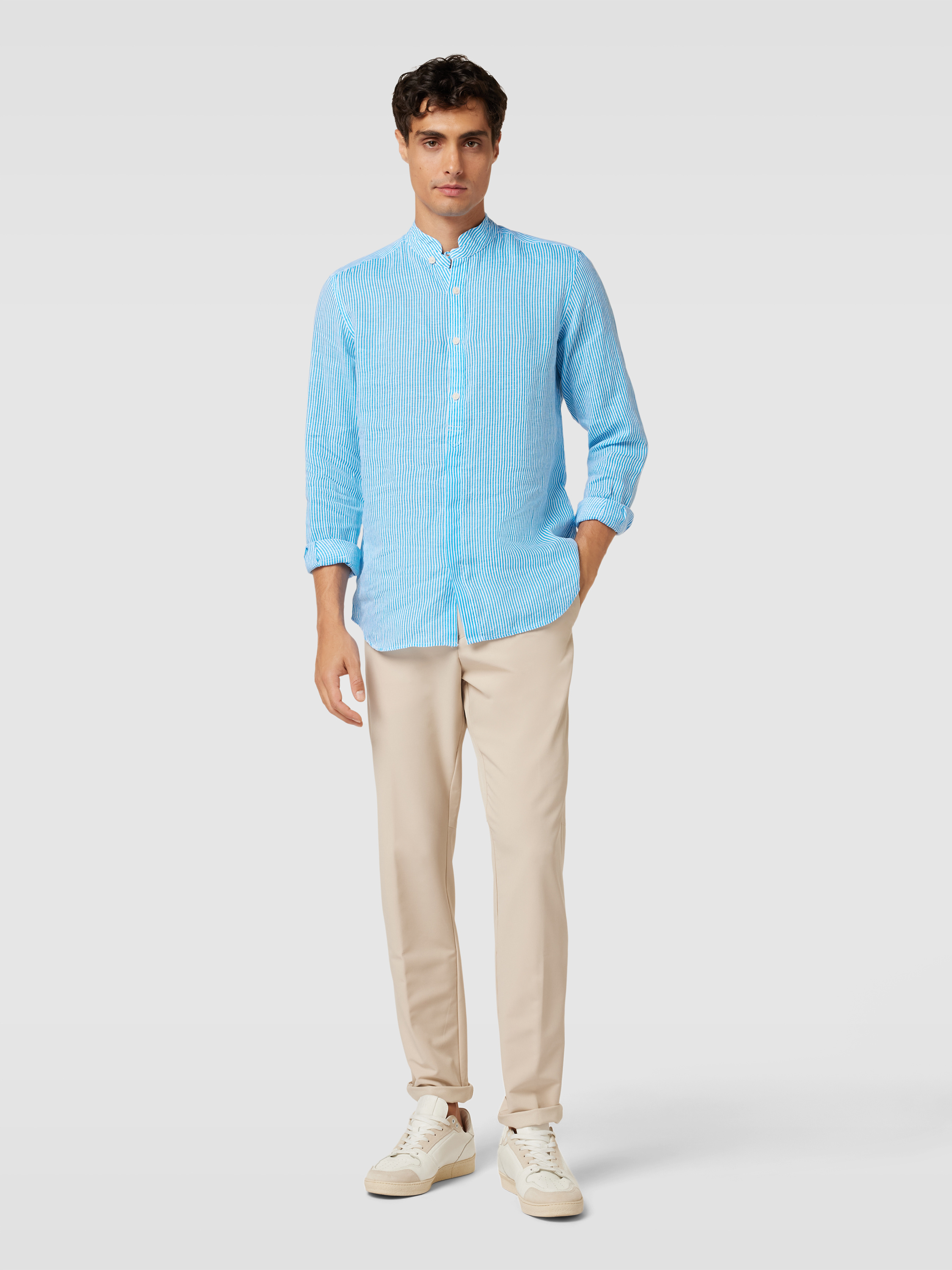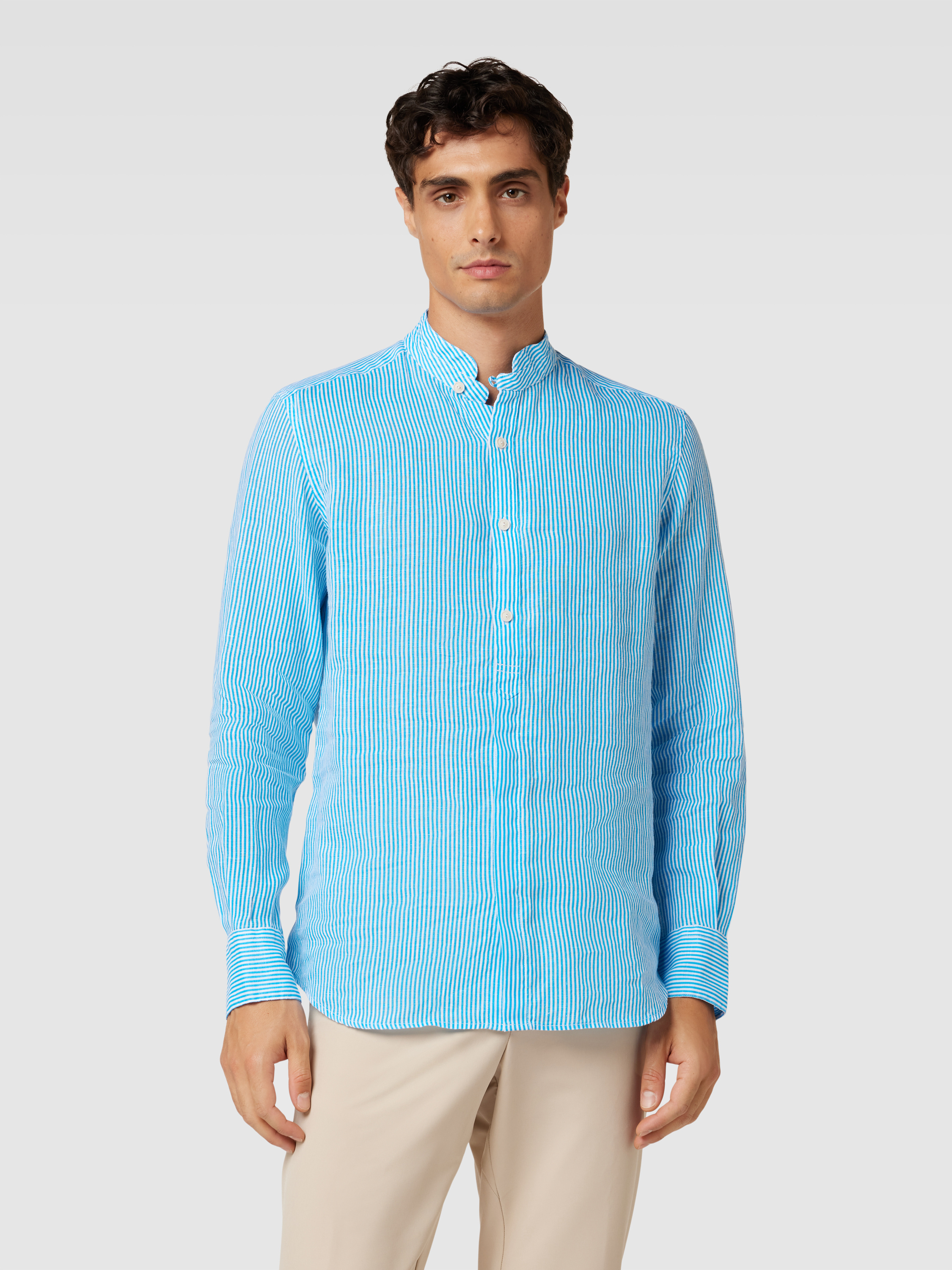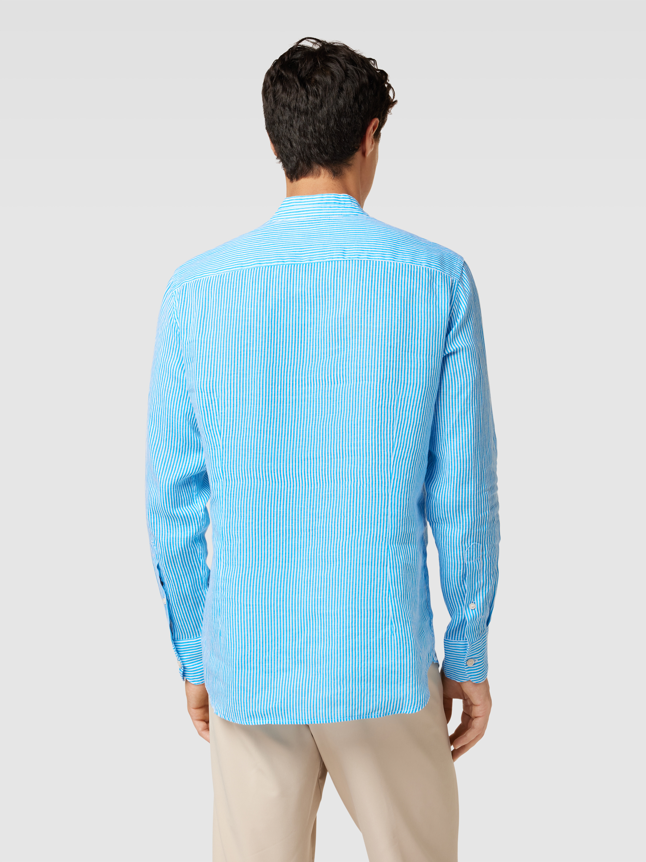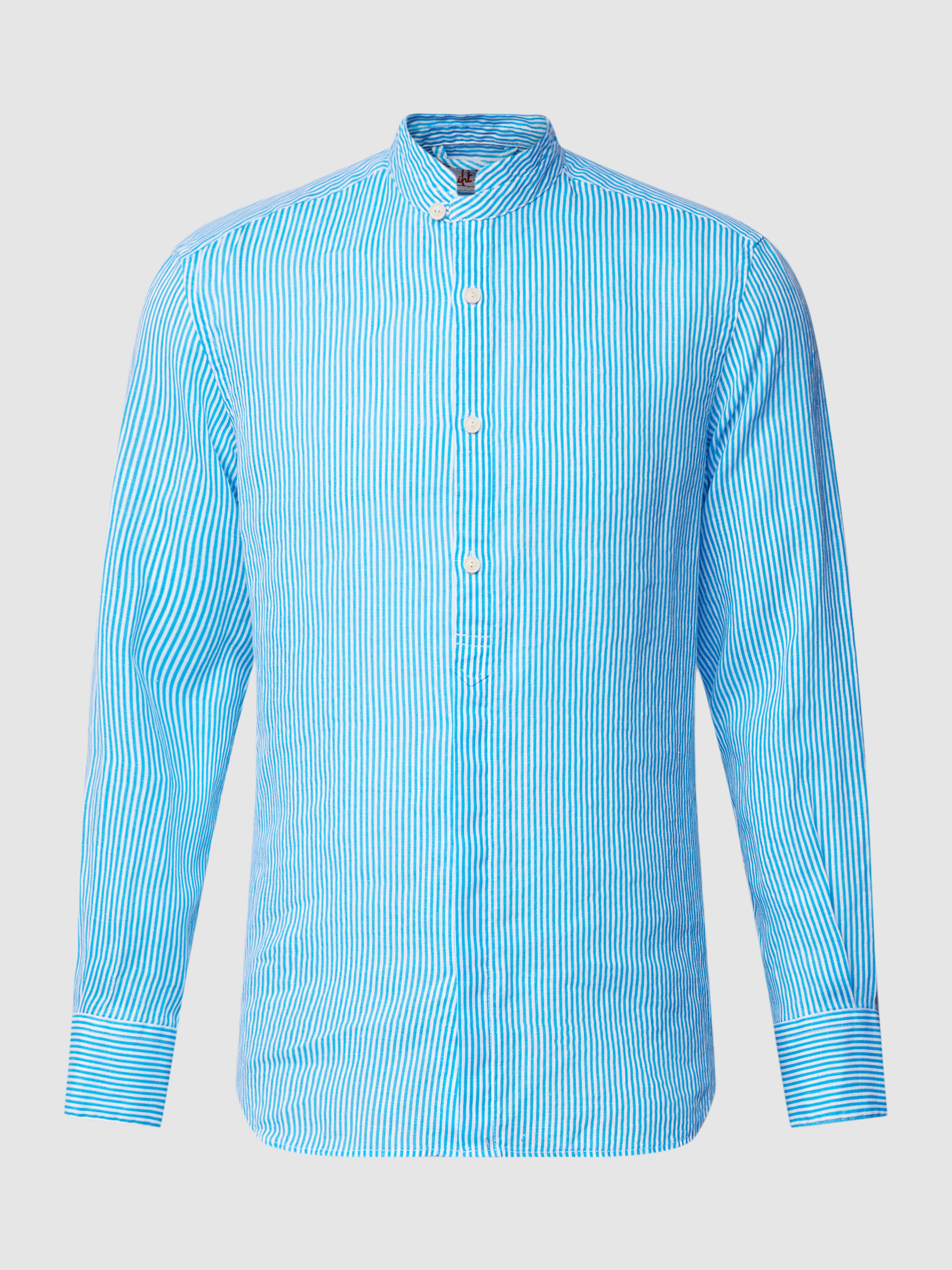 Linnen overhemd met streepmotief, model 'KLARKE' in lichtblauw