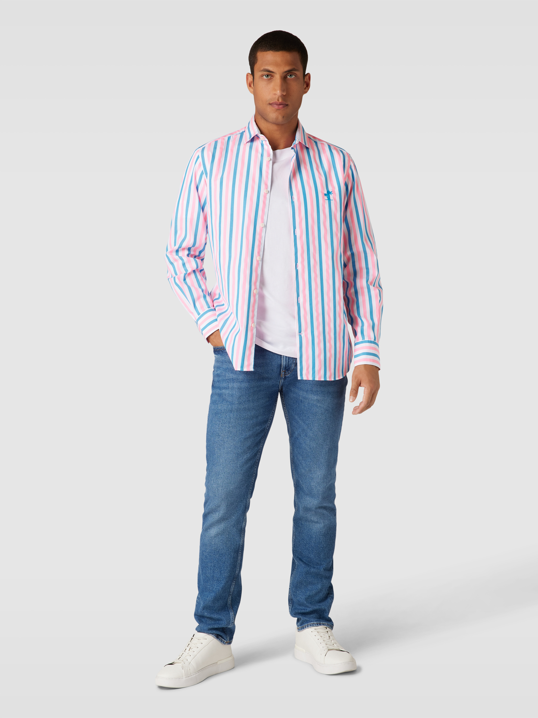 Regular fit vrijetijdsoverhemd met streepmotief, model 'PAMPLONA' in blauw