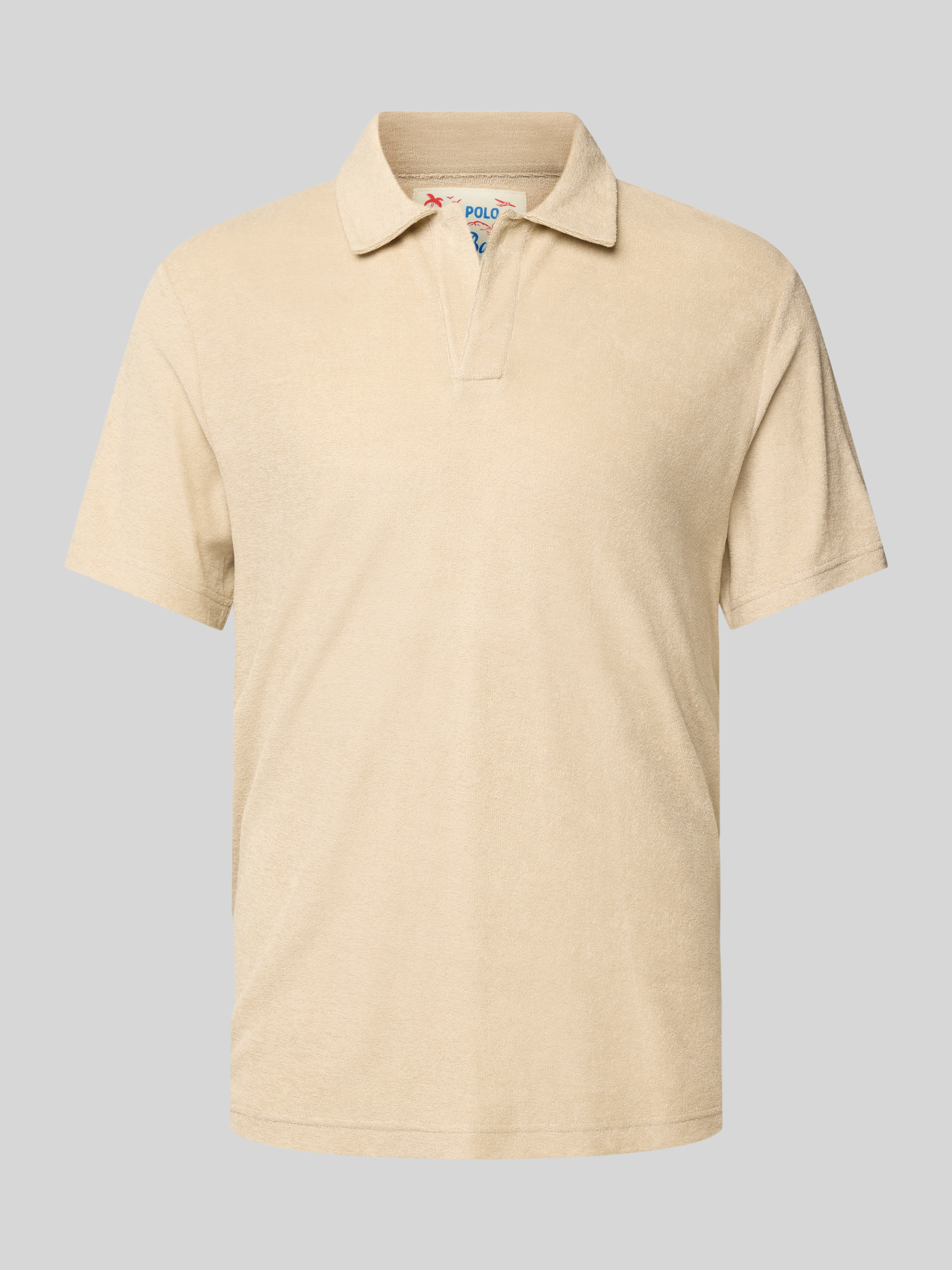 Slim fit poloshirt met V-hals, model 'JEREMY - TERRY' in beige