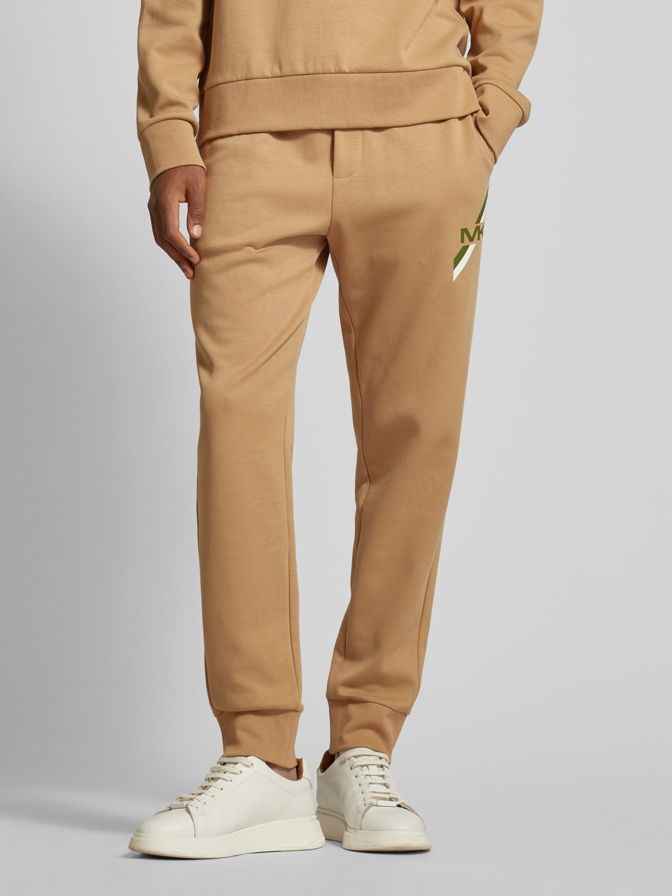 Sweatpants met labeldetail, model 'STRIPE' in camel