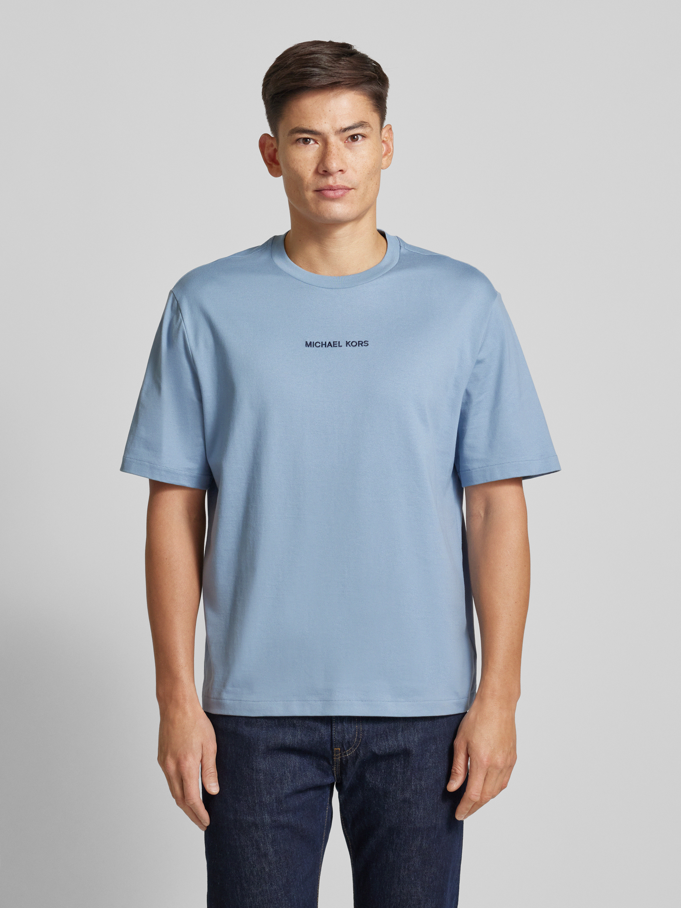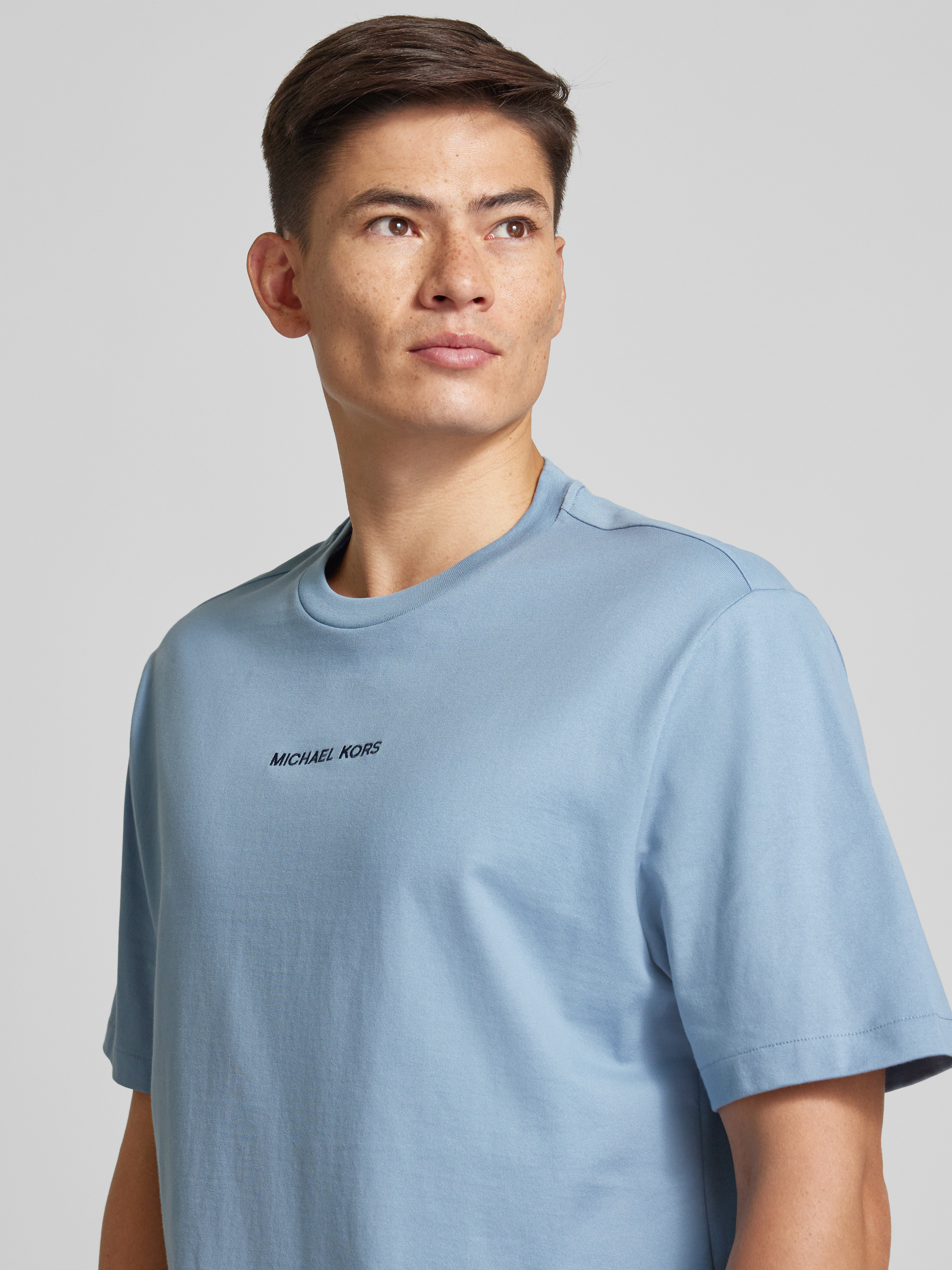 T-shirt met labelstitching, model 'VICTORY' in lichtblauw
