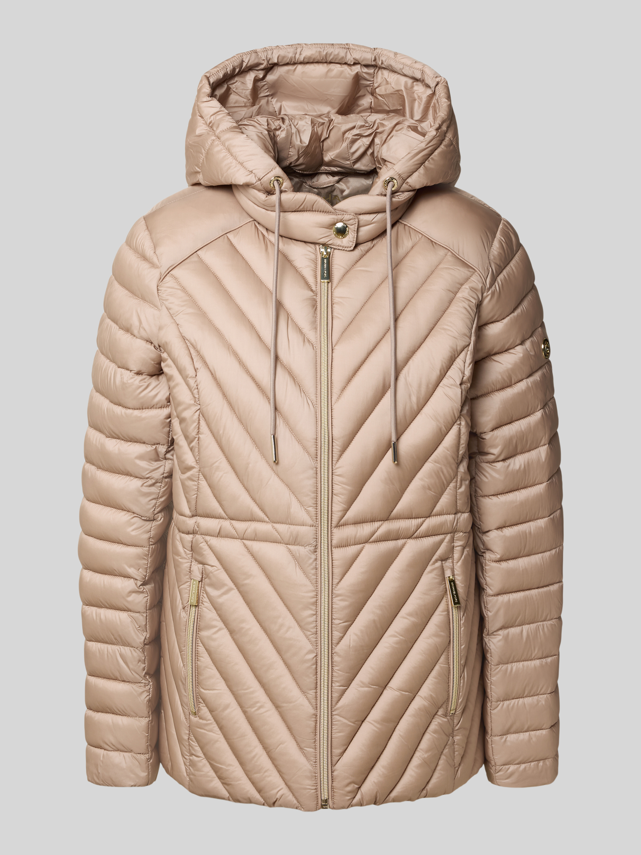 Regular fit gewatteerd jack met capuchon, model 'Chevron' in beige