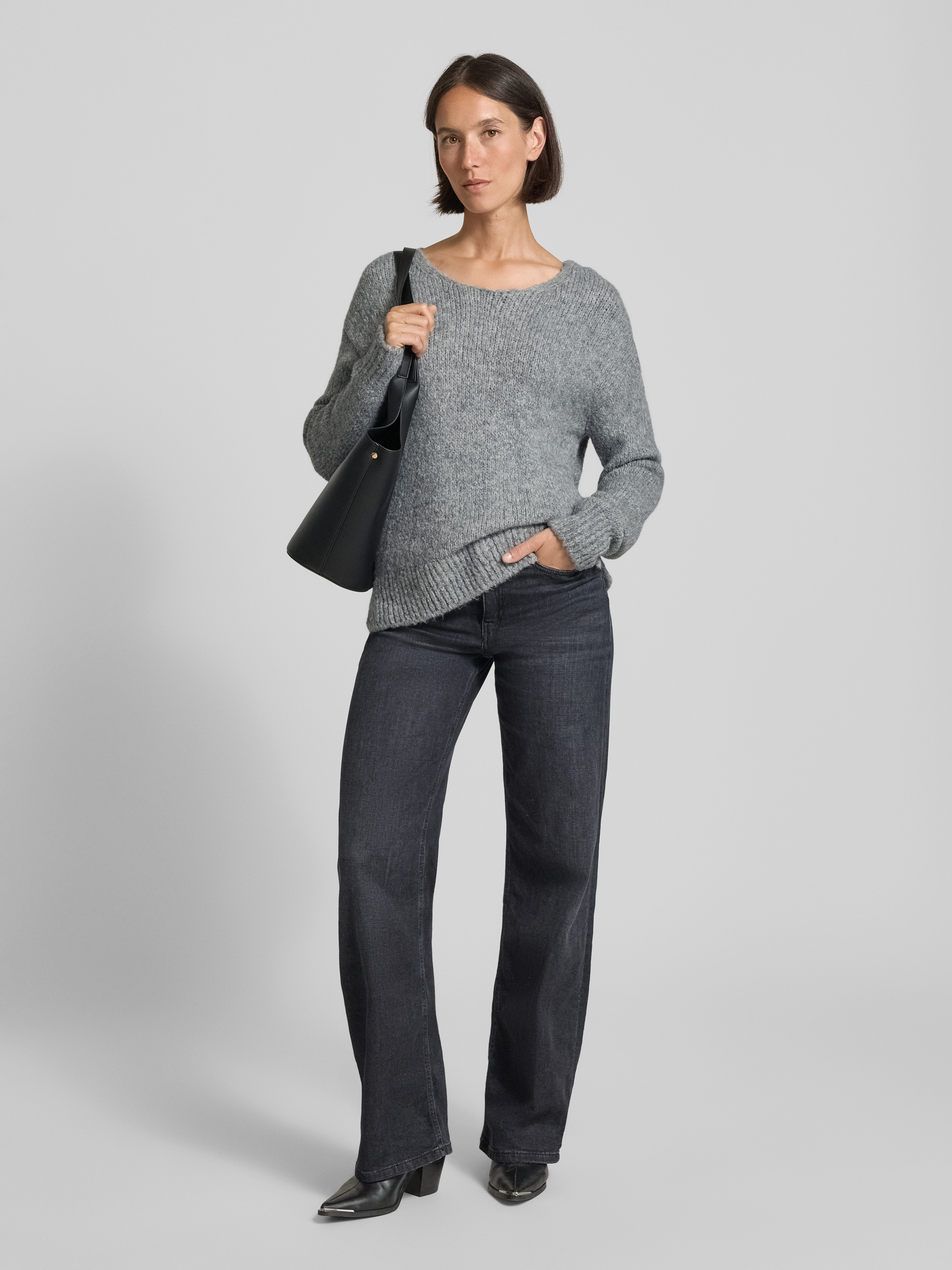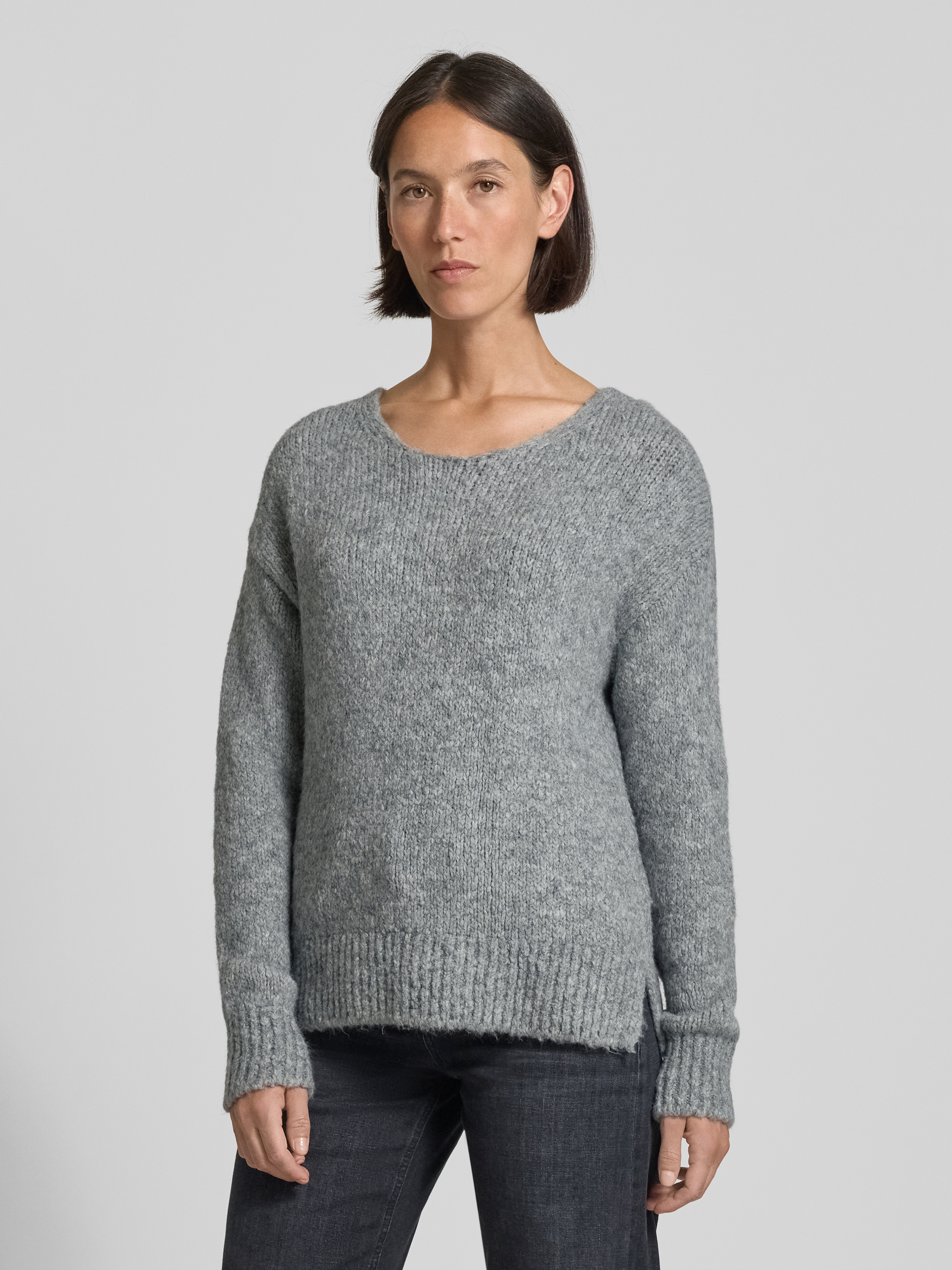 Milano ItalyGebreide pullover met ronde hals in lichtgrijs