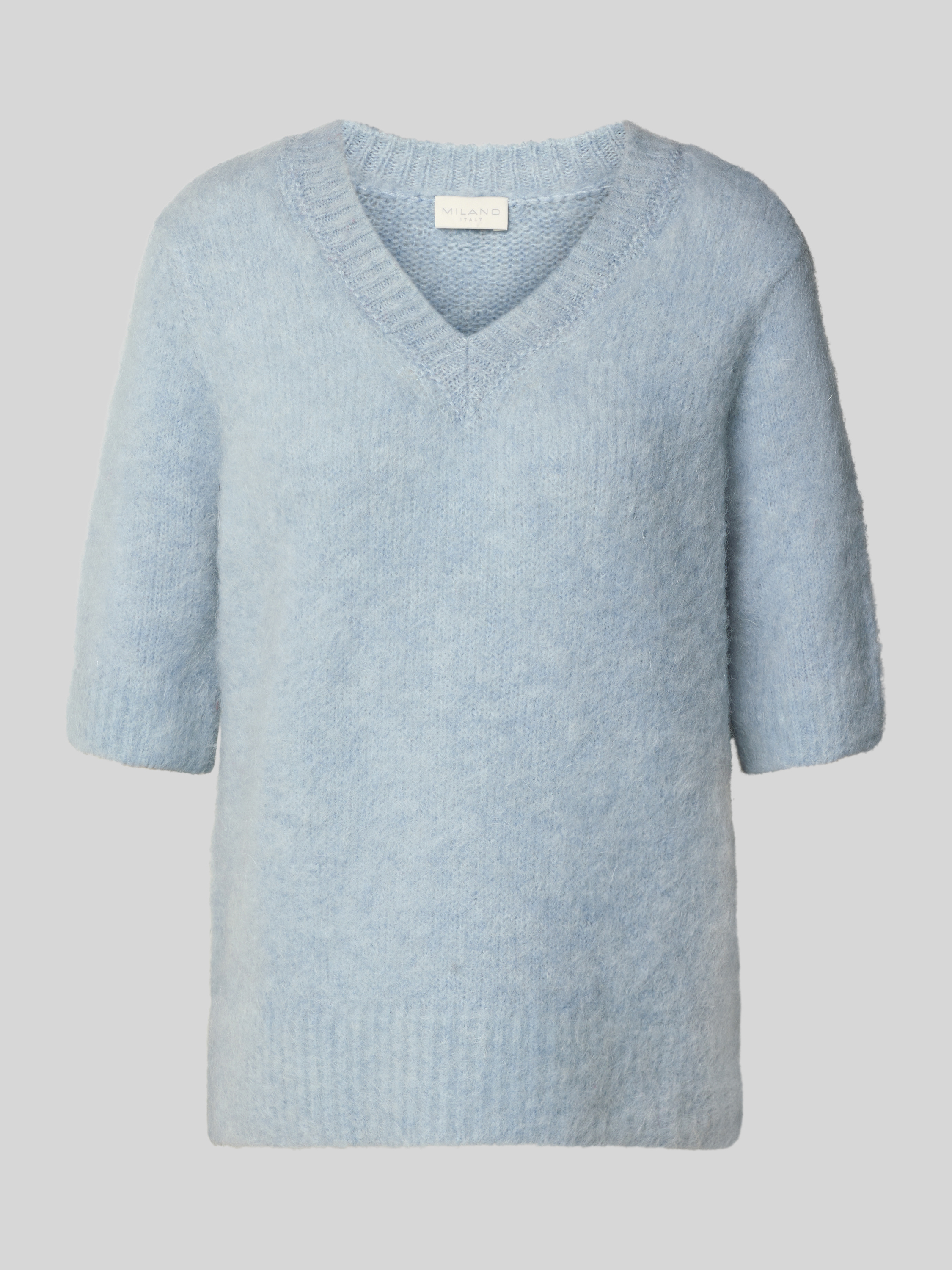 Gebreide pullover met V-hals en 1/2-mouwen in bleu