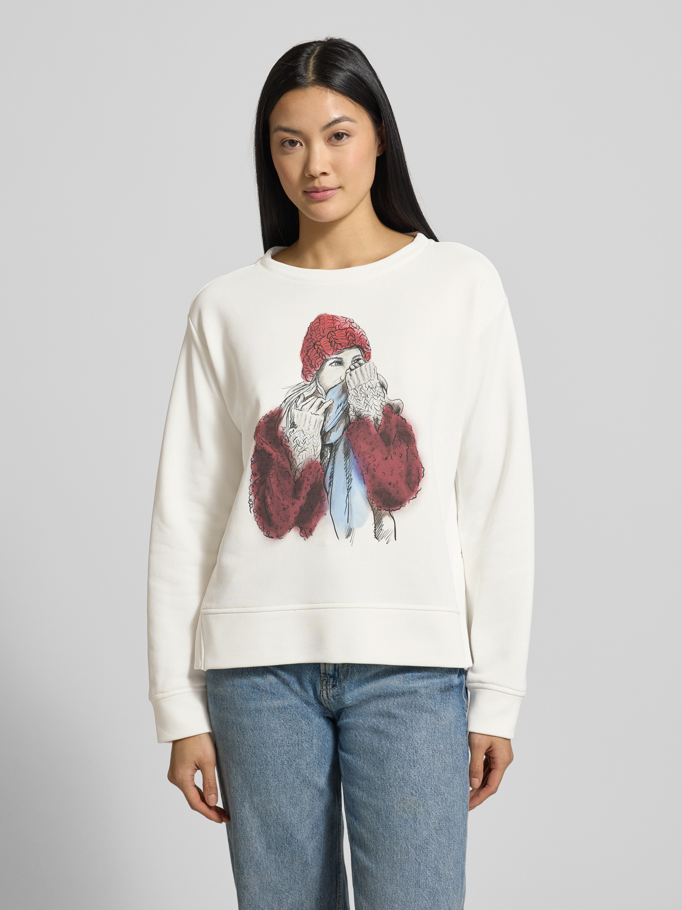 Sweatshirt met motiefprint en ronde hals in offwhite