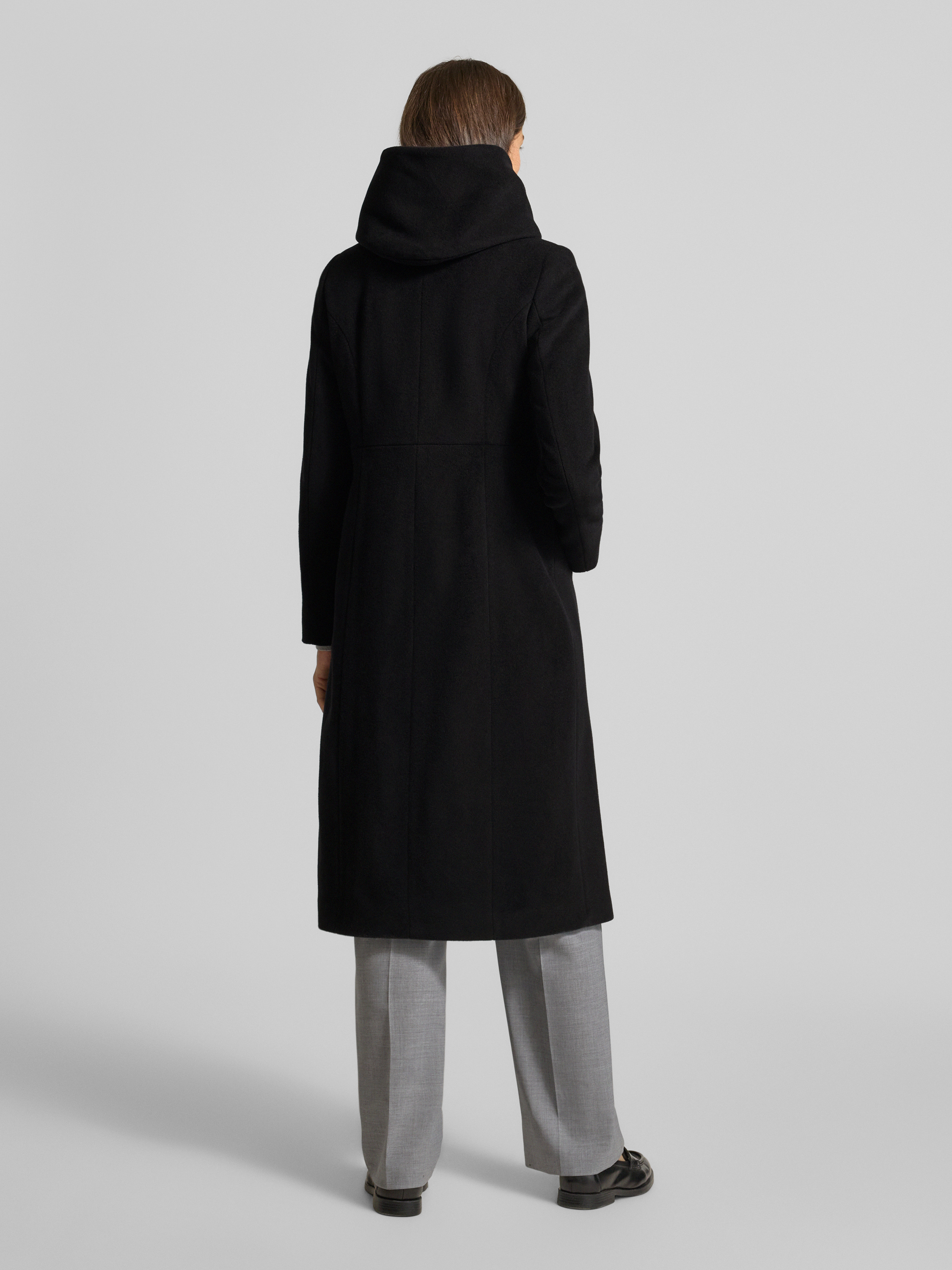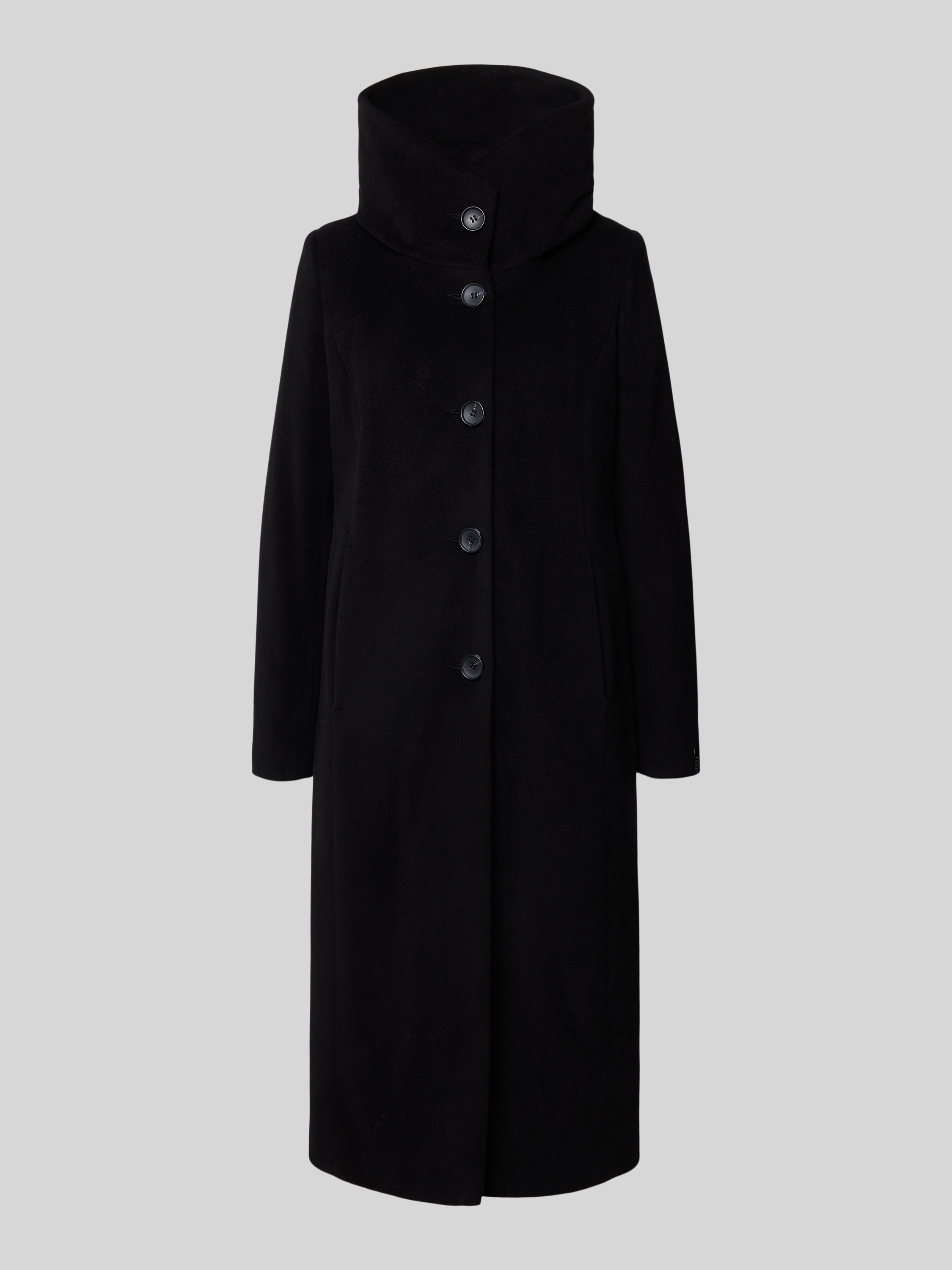 Lange jas met opstaande kraag, model 'STACY' in zwart