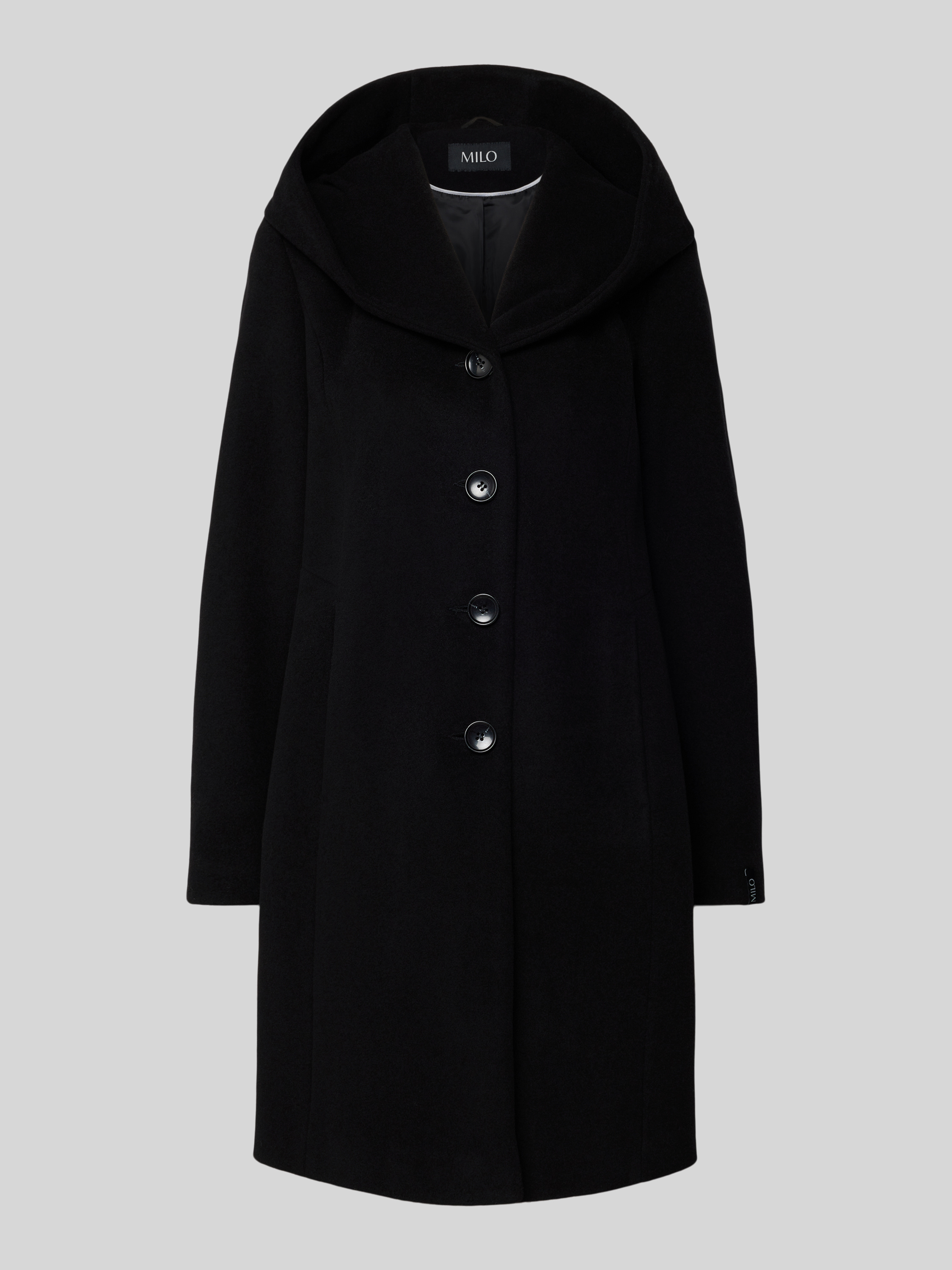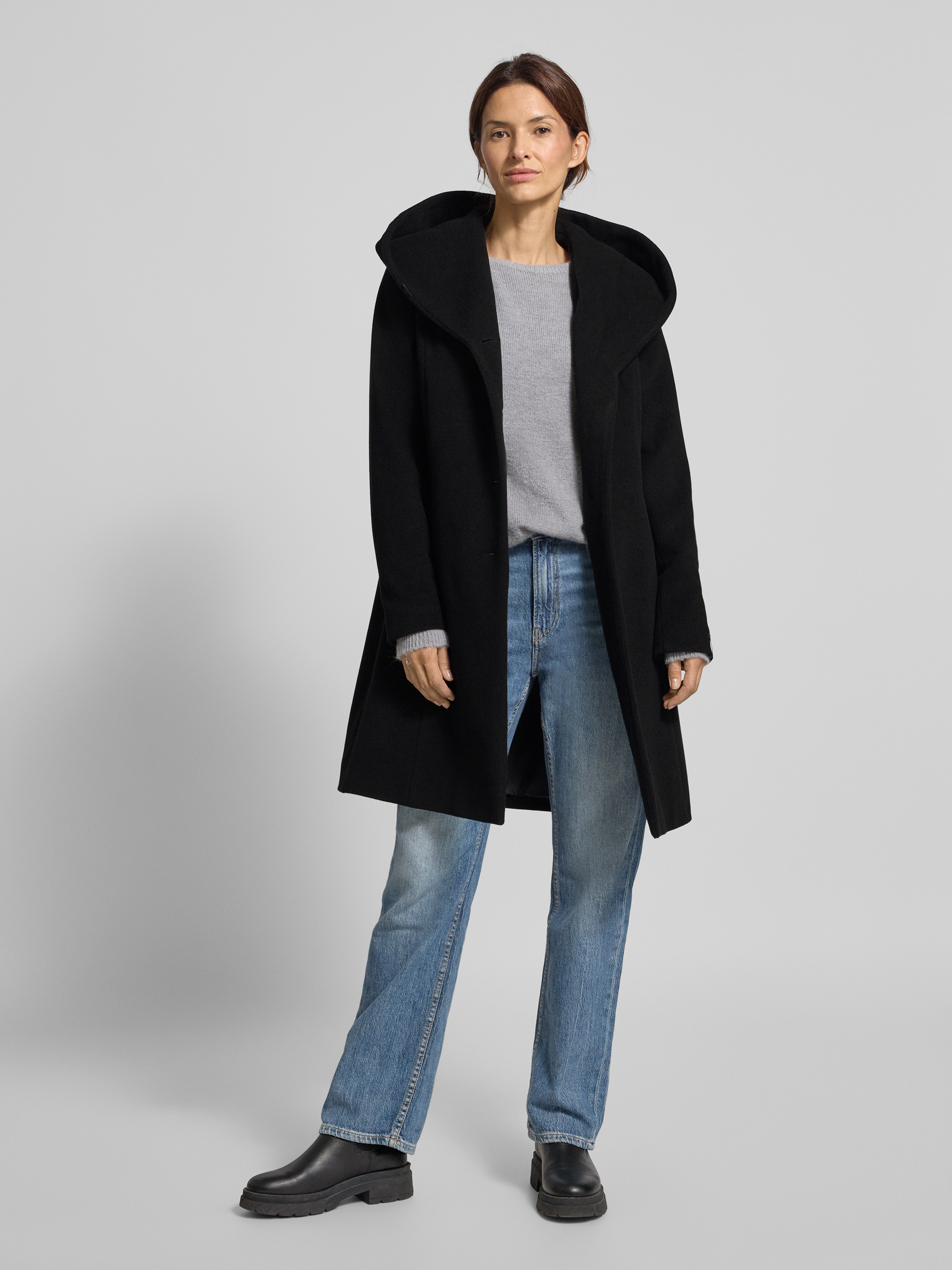 Lange wollen jas met kasjmier, model 'BELLA' in zwart