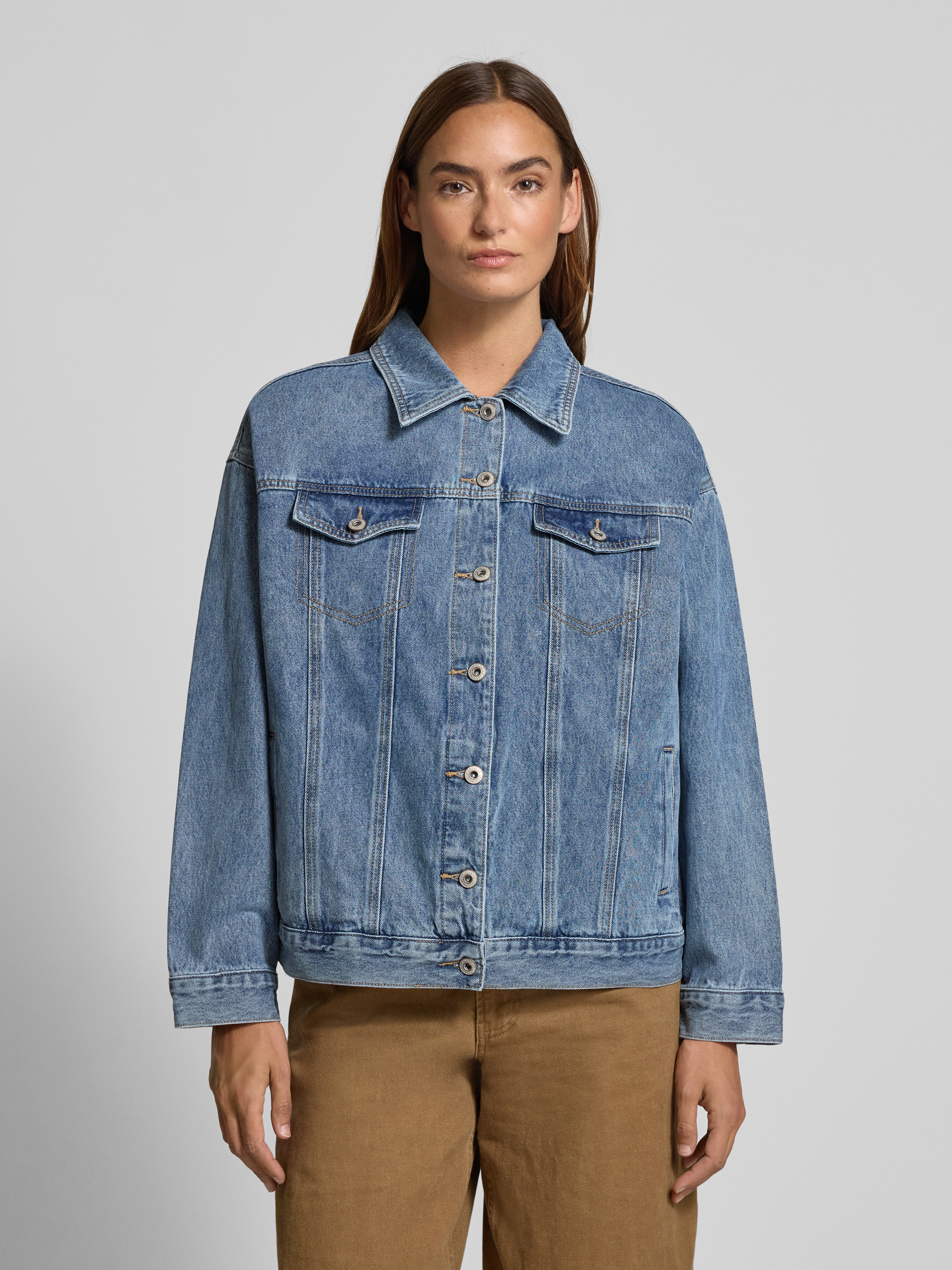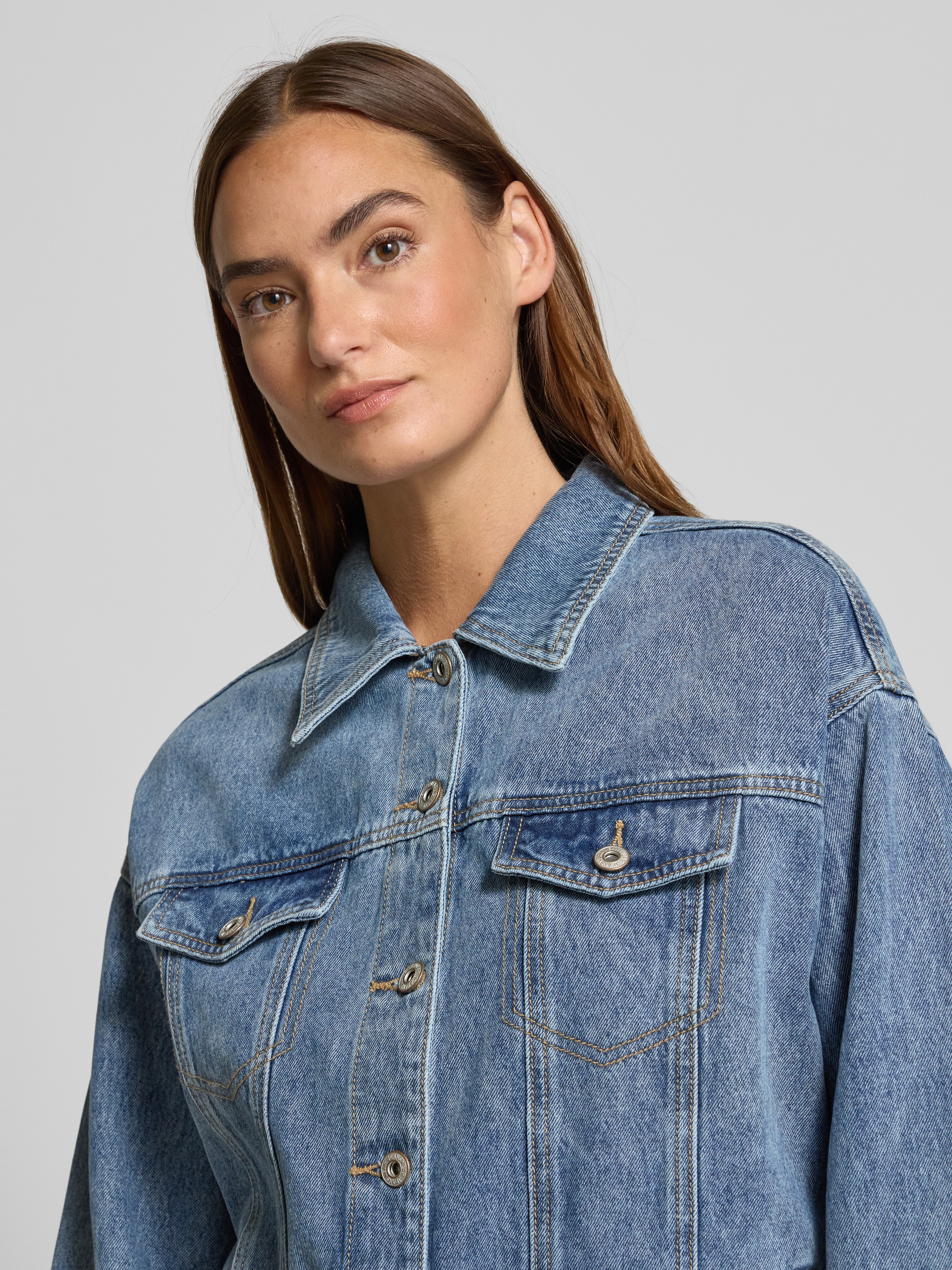 Jeansjack met borstzakken, model 'Loveheart' in jeansblauw