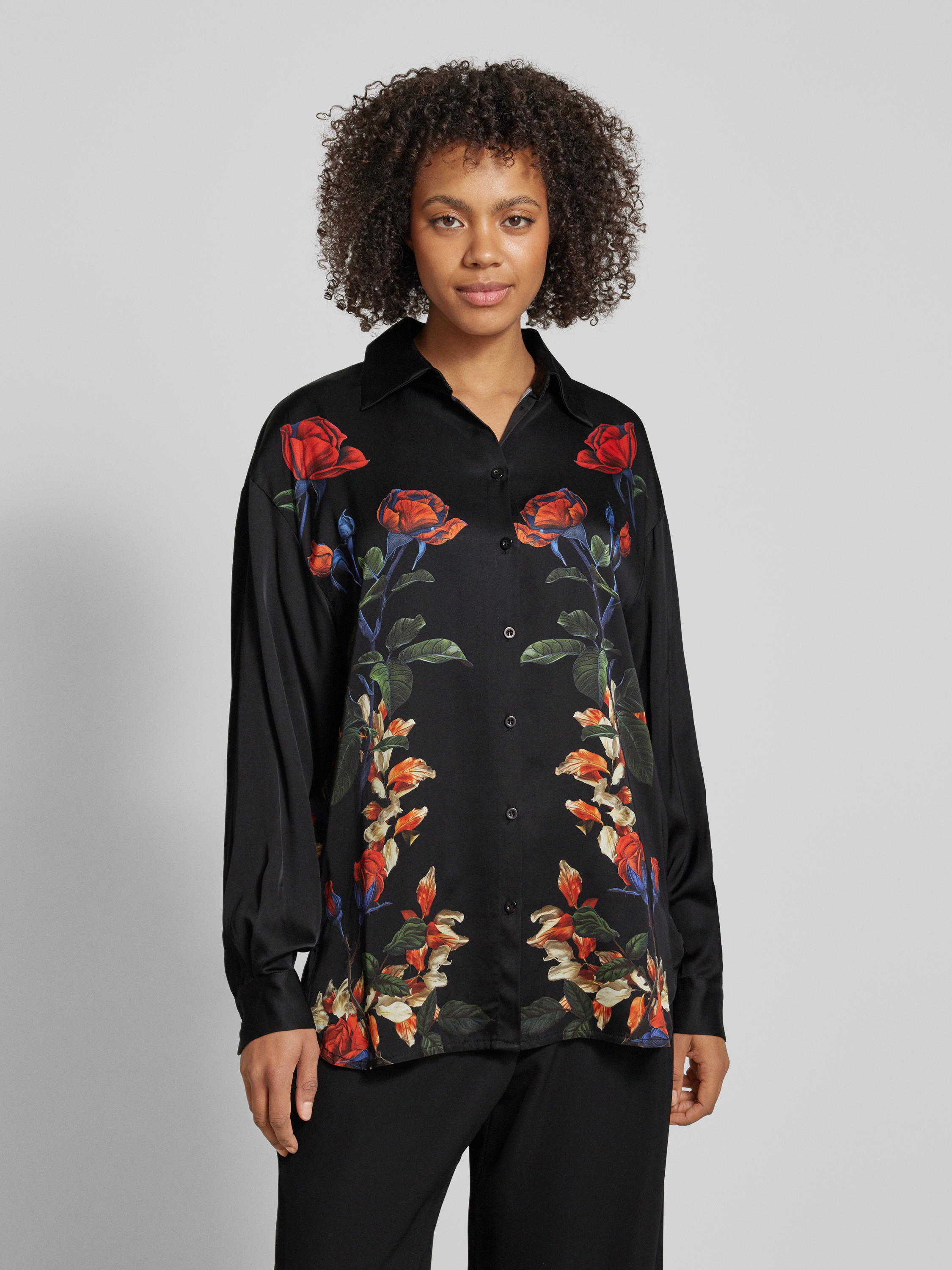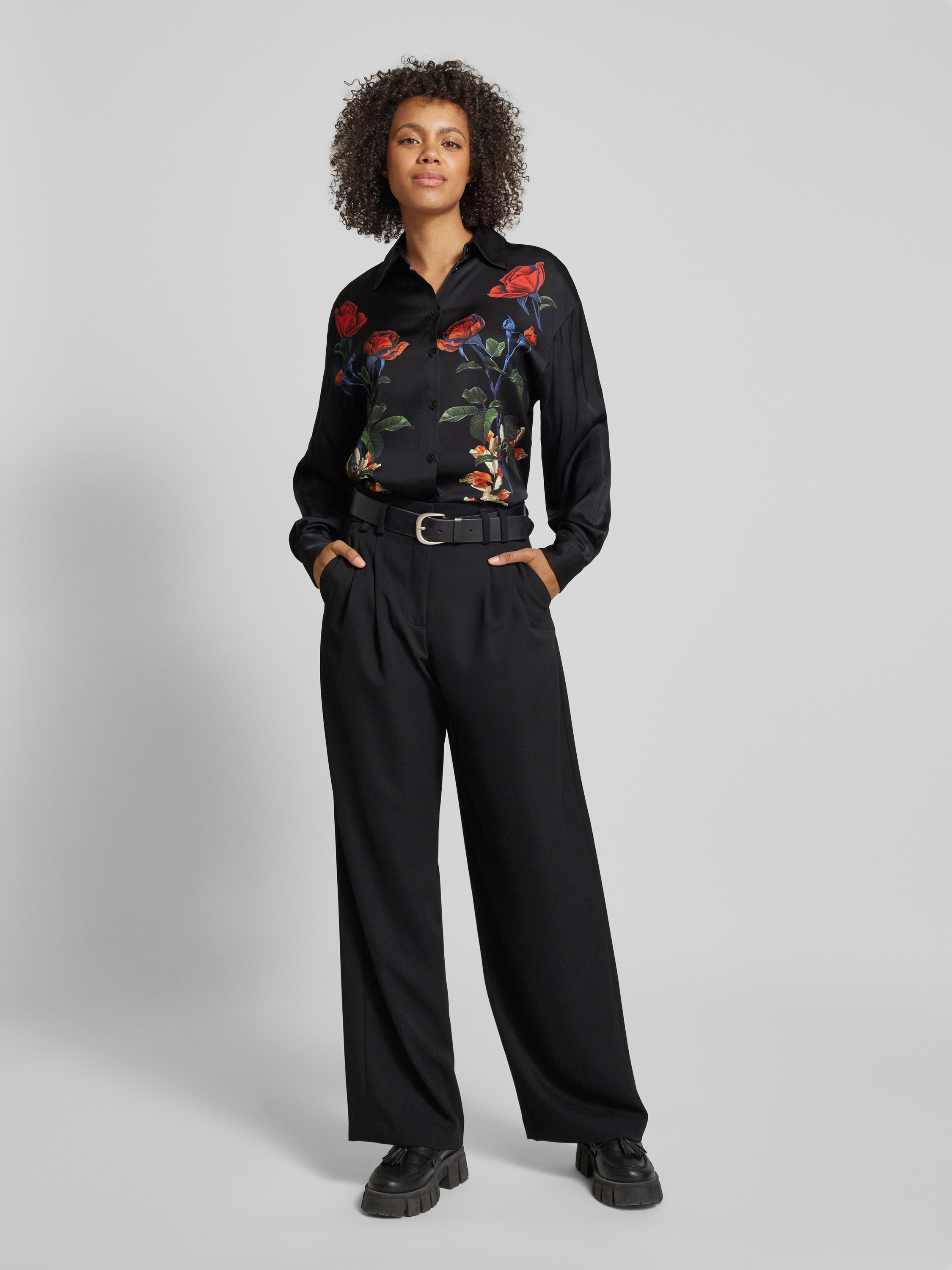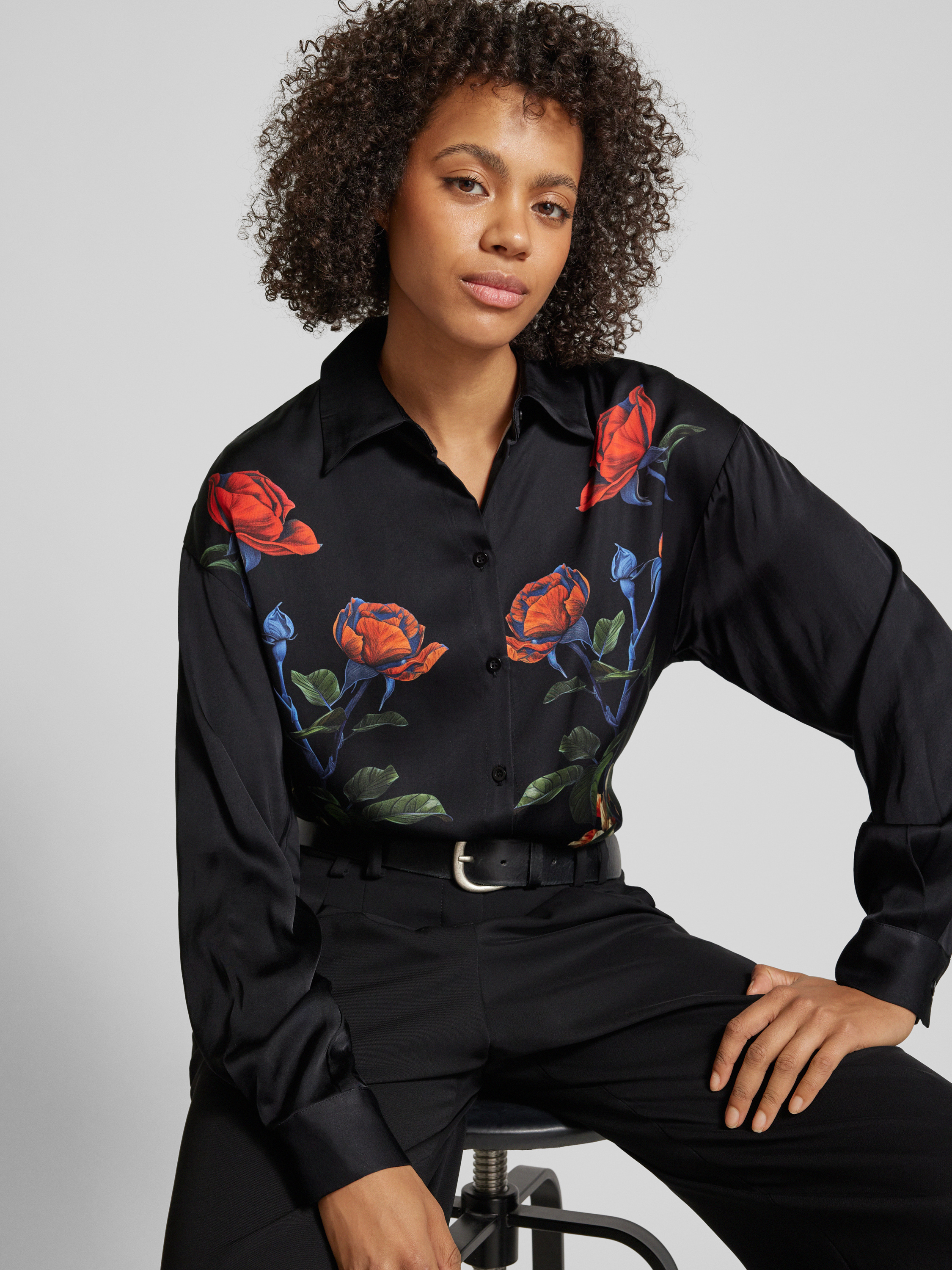Regular fit overhemdblouse met doorknoopsluiting in zwart