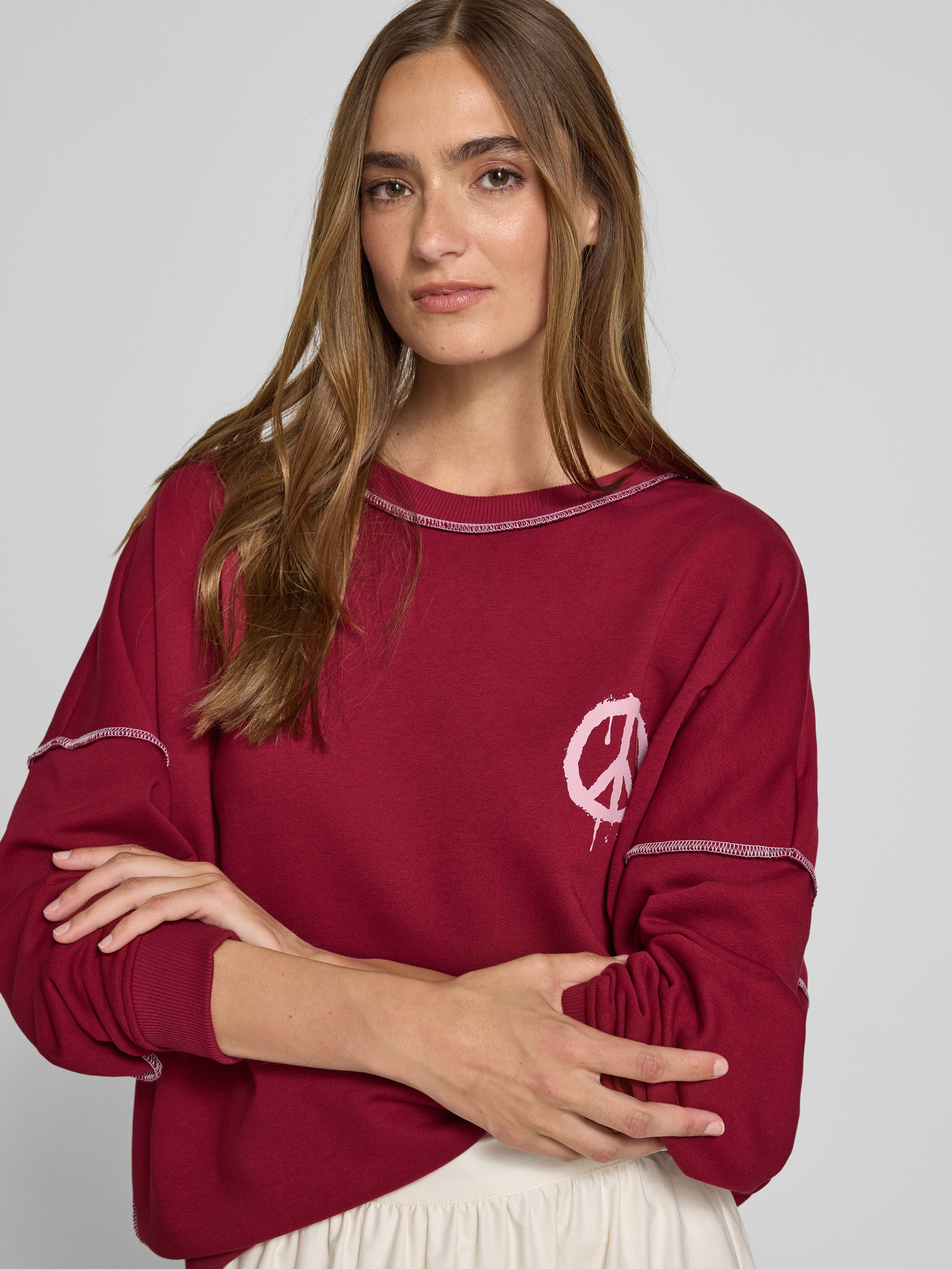 Sweatshirt met motiefprint en ronde hals in bordeaux