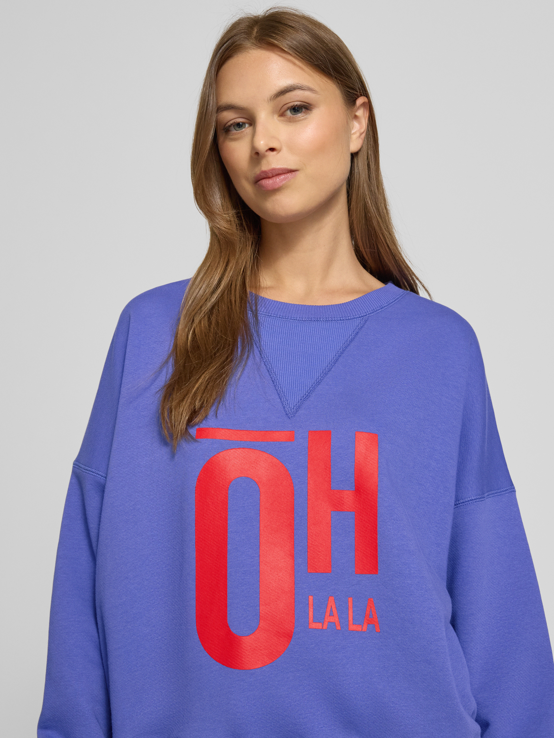 Sweatshirt met statementprint en ronde hals in violet