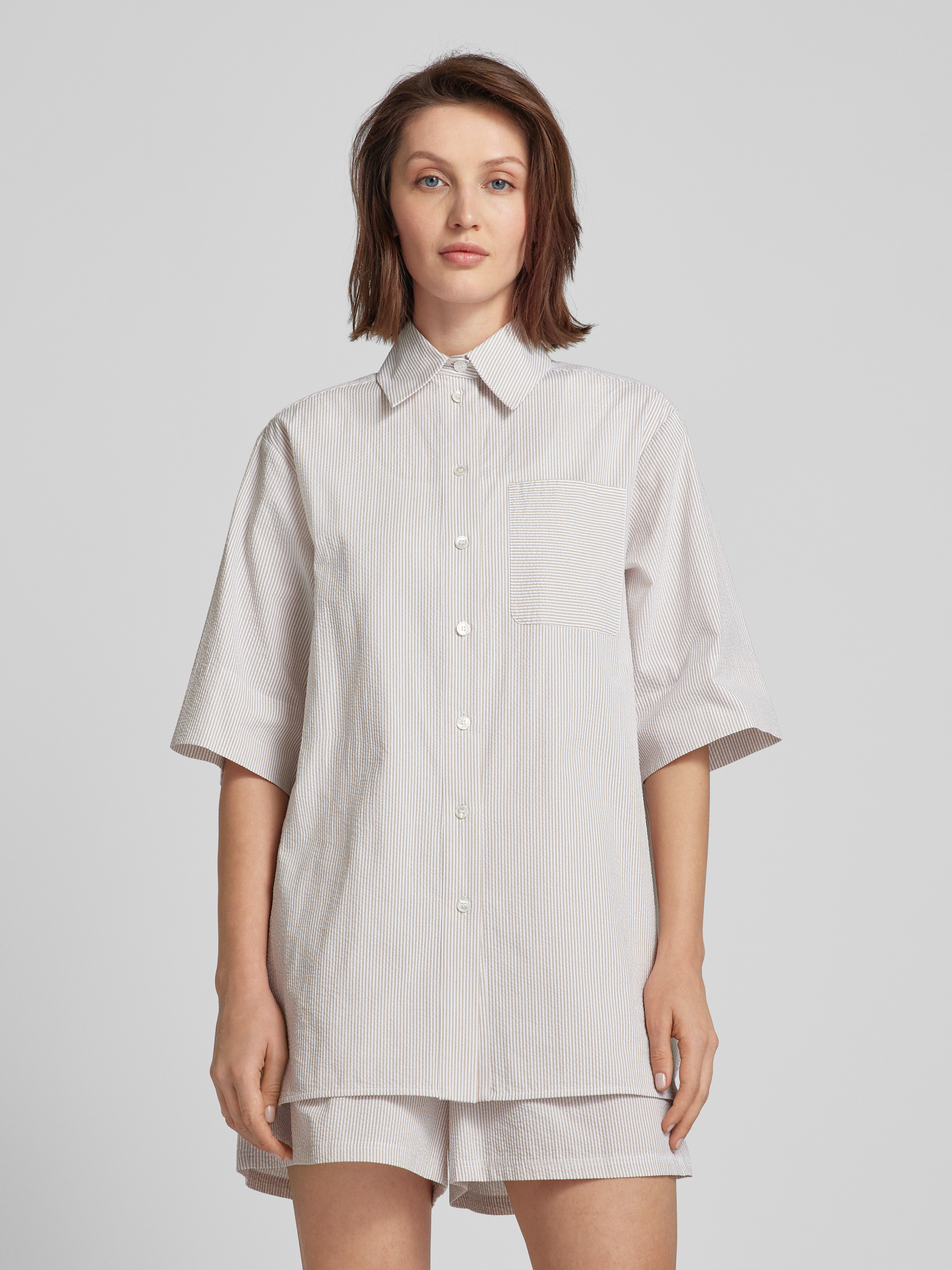 Blouse met korte mouwen en strikceintuur, model 'TEXAS' in ecru