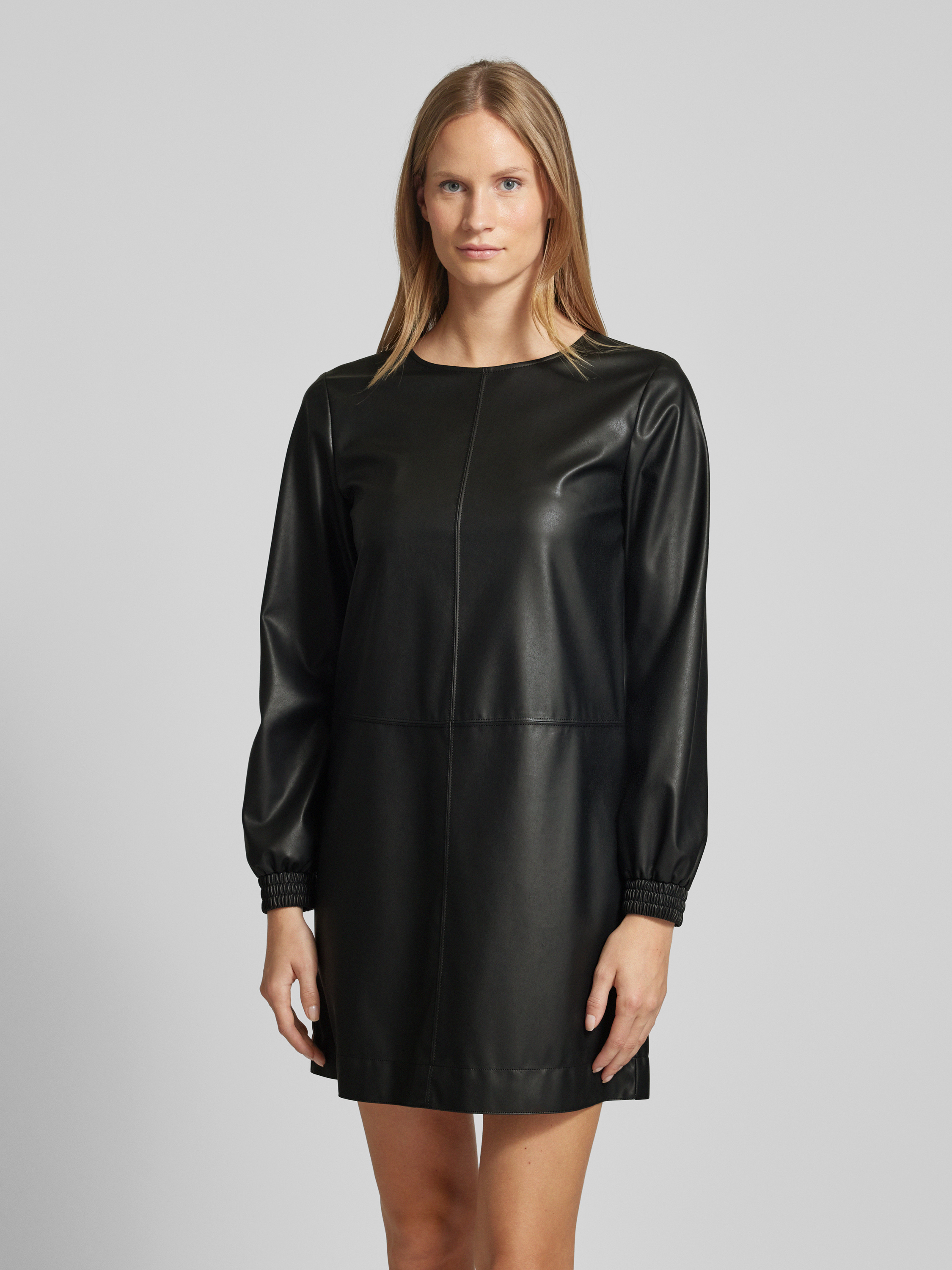 Mini-jurk in leerlook, model 'PEPE' in zwart
