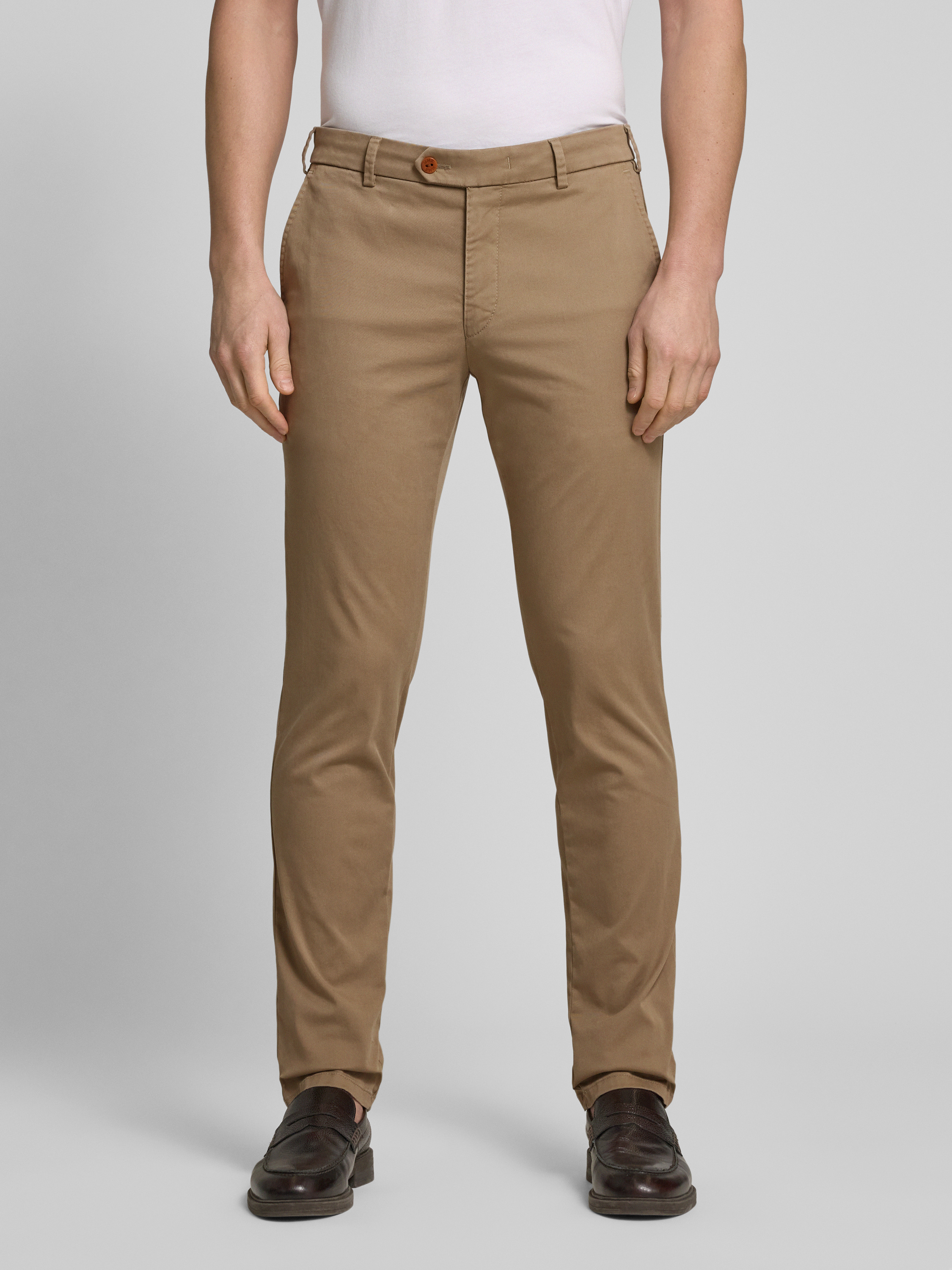 Regular fit chino met steekzakken, model 'LUPUS' in middenbruin